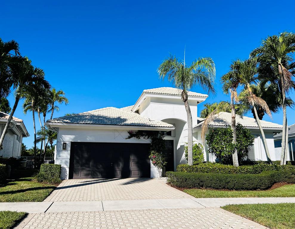 Reduced to SELL! Imagine beautiful view & sunsets on the lake & golf course! This tastefully renovated one-story home of 3 bedrooms plus an office and 2 1/2 baths is light & bright featuring volume ceilings; gray-tone wood grain porcelain tile floors throughout; an open kitchen with white & gray 42'' cabinetry, quartz and marble counters & waterfall, decorative tile backsplash, stainless steel appliances; French doors into a private office; remodeled secondary bathrooms of contemporary design; walk-in closets in the Primary suite; garage storage cabinetry; A/C 2021, water heater 2017, accordion hurricane shutters.