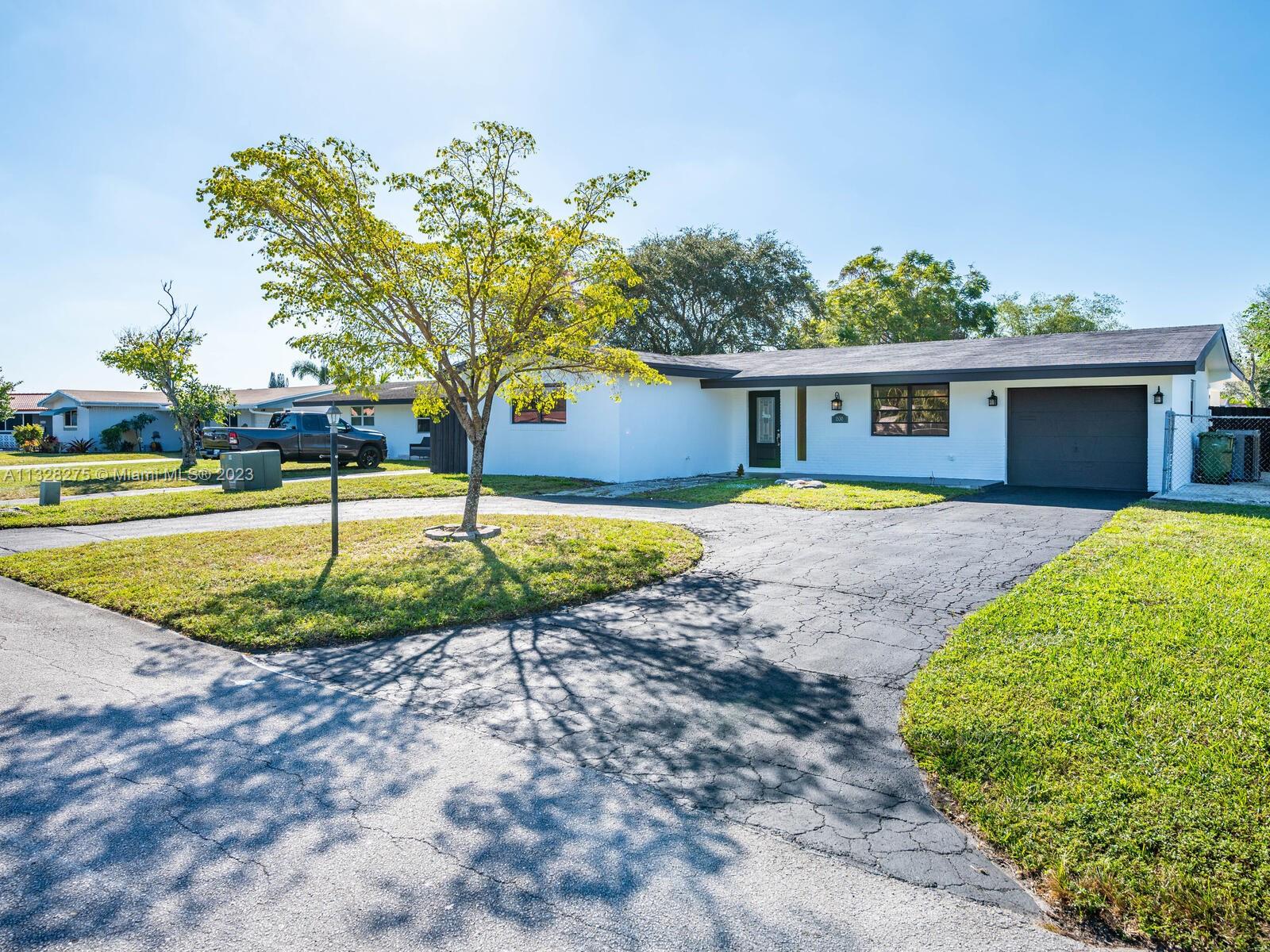 Stunning 3 Bedroom 2 bathroom Corner Lot property. One car garage with circular driveway in the heart of Pembroke Pines. Very desirable floor plan with an open kitchen design in addition it offers plenty of closet space. Laundry room is located in the Garage along with water Heater. ---Turnkey property freshly renovated--- See Brokers remarks for Cbs Code for supra access.