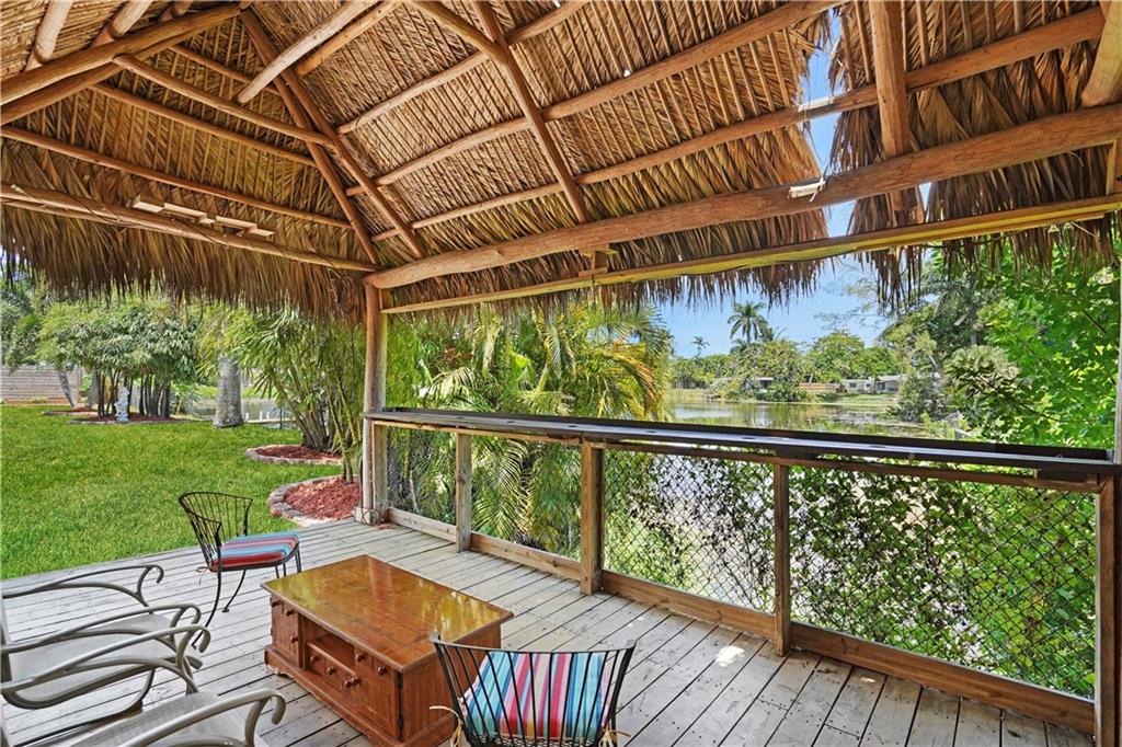 Hidden Sanctuary where peace & Tranquility abounds. Gorgeous 4/3 home on a beautiful lake with a private dock situated on 38,128 Sq Ft Lot. House was completely gutted 4 years ago. Seller rebuilt the house from the ground up including NEW AC unit in main house & inlaw quarter, Plumbing, Electrical, Bathrooms, Kitchen, Flooring & ceiling. In 2022 installed Roof and Hurricane Windows Throughout. Everything is NEW, all permitted! Main house is 3/2 with a 1B/1B inlaw quarters with direct access from the interior of the house plus separate entrances. Large screened in patio & Tiki Hut overlooking the lake. Additional building which has an A/C workshop and Comm Kitchen with a Gas Stove, Fridge, Sink and large Walk In Cooler! Ideal for AIR&B