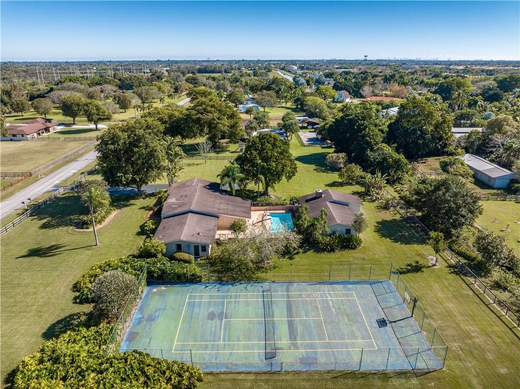 First time on market in Rolling Oaks! 4BR/3.5BA home (incl. guest house) spans 2.33 acres and is an absolute gem. True Southwest Ranches splendor with inviting long drive, fruit trees (avocado, banana, fig, macadamia, seedless mulberry, mango). Interior is traditional ranch-style home featuring wood-beam ceilings, vinyl and tile flooring, wet bar, open kitchen with Thermador appliances, in-wall central vac. Fully gated and fenced, the home is meant for entertaining family and friends and boasts pool, tennis, basketball, and a 1BR/1BA guest house. It fully embraces the outdoor lifestyle with built-in brick grill kitchen, perfect for all celebrations. 2-car garage with Tesla charging station complete the offering. A wonderful family home. Easy to show. Show and sell!