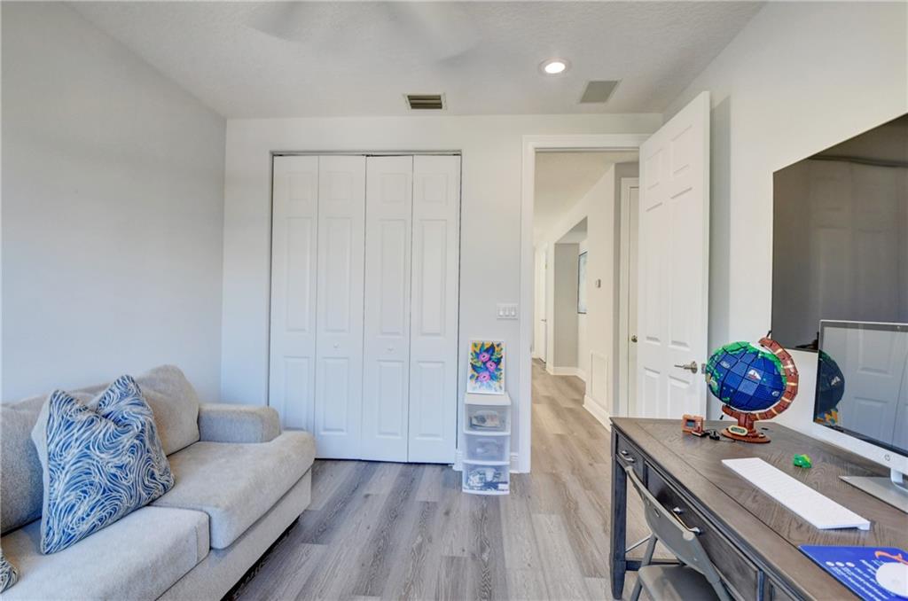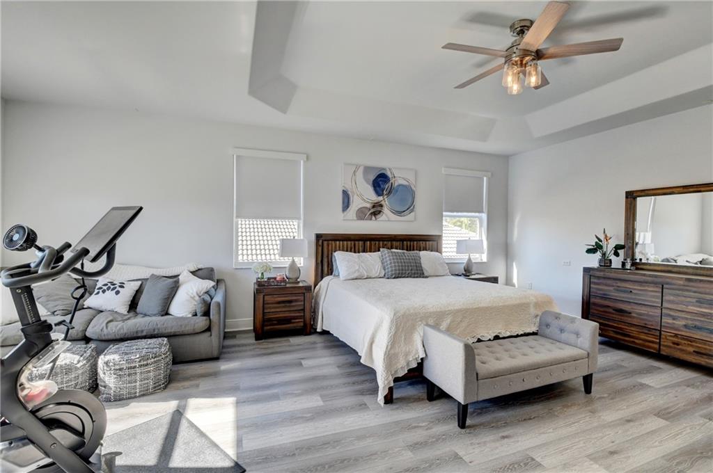 Fully renovated. New Roof-6/21, New PGT impact windows and doors 2021. New impact garage doors/front door 2021. LVP flooring, 24x24 porcelain tile-no carpet. 3 new bathrooms with Quartz. 28 LED high hats. Epoxy garage, new interior and exterior paint. a/c #1-2019 a/c #2-2022 New 80-gallon water heater 2022 Quartz kitchen countertops with marble backsplash. See addendum for full upgrade list. Fantastic lake lot. Built- in Bbq Community is manned gated with clubhouse, gym, pool, tennis, and tot lot. 5th bedroom used as an office. All furniture negotiable
