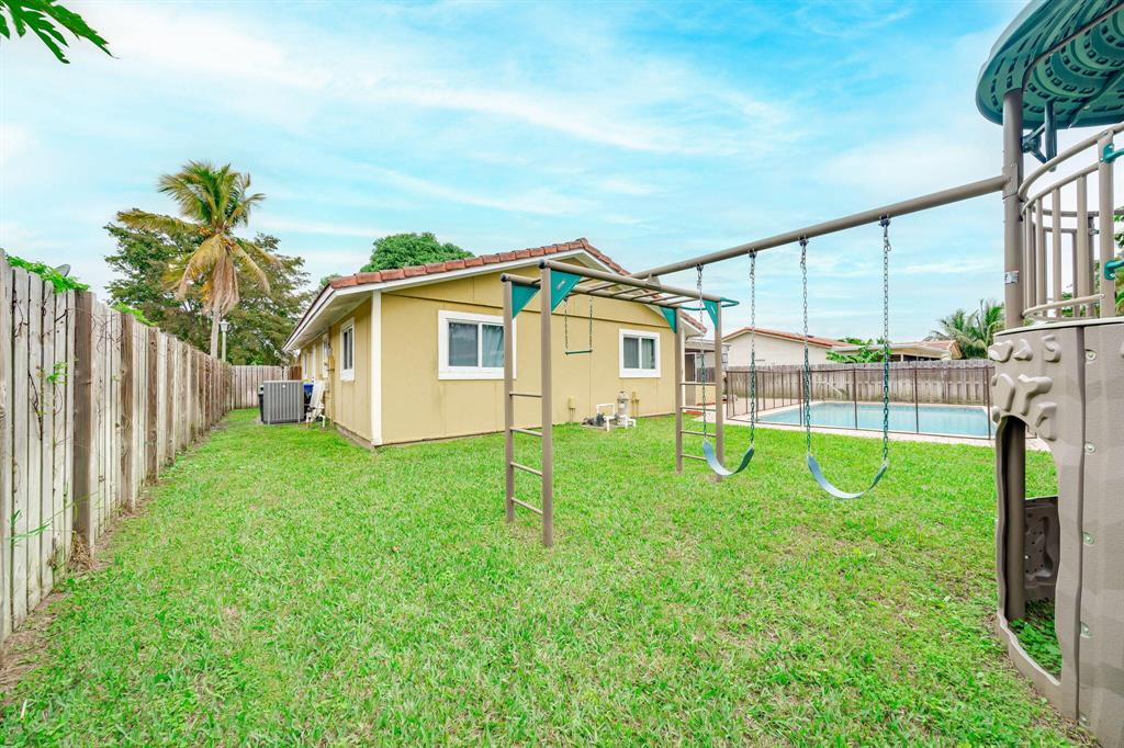 Great Opportunity to own this fantastic well maintained 3 bdrm / 2 bth PRIVATE HOME w/POOL in the highly desirable community of Westchester! NO HOA! Spacious SPLIT-FLOOR-PLAN, custom built in storage wall and closets! Solid Wood Doors & Impact Windows. Dual Entry IMPACT Sliders gives way to an Enclosed SCREENED PATIO where you can enjoy the winter sunset and leads the way to the generous fully fenced in yard w/15x30 pool w/poolgate plus a YARD PLAYSET! This house offers a freshly sealed driveway and 2+GARAGE nestled in a CUL_DE_SAC with a mature Mango Tree adorning the front lawn! Quick access to Sawgrass Expwy and close proximity to ALL. Shopping, SportPlex, Seminole Casino, Butterfly world, Florida's renowned Beaches & more! This is a must see!