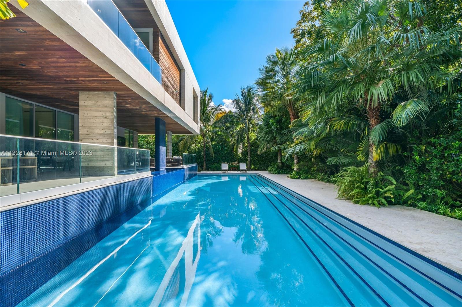 Masterful design and luxury are showcased in this immaculate 7,178 SF custom-built residence located in highly sought-after Key Biscayne. The 5-BD, 6.5-BA home offers an expansive layout with voluminous ceilings and sophisticated contemporary design. A gourmet Italian kitchen by Binova Cucine features all Miele appliances and a gas cooktop. Italian Quarella interior floors exemplify the no-expense-spared designer finishes throughout, graced by unexpected luxuries such as a whole house water purifying/filtration system, Crestron Smart Home system, Lutron power window treatments and EV charging port. The interior flows into private outdoor spaces with a 60 ft. lap pool, infinity hot tub, Roman travertine and Timura wood. Every detail of this home was carefully selected and quality crafted.