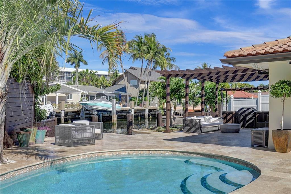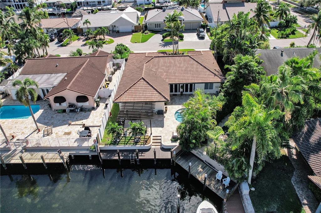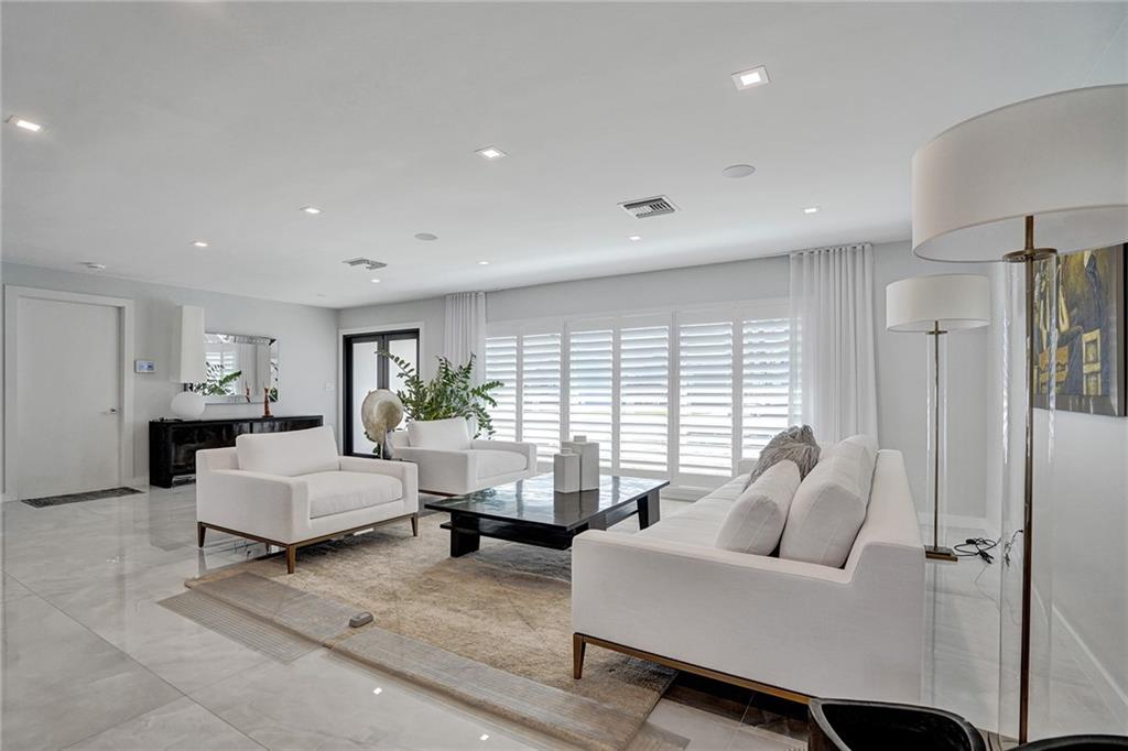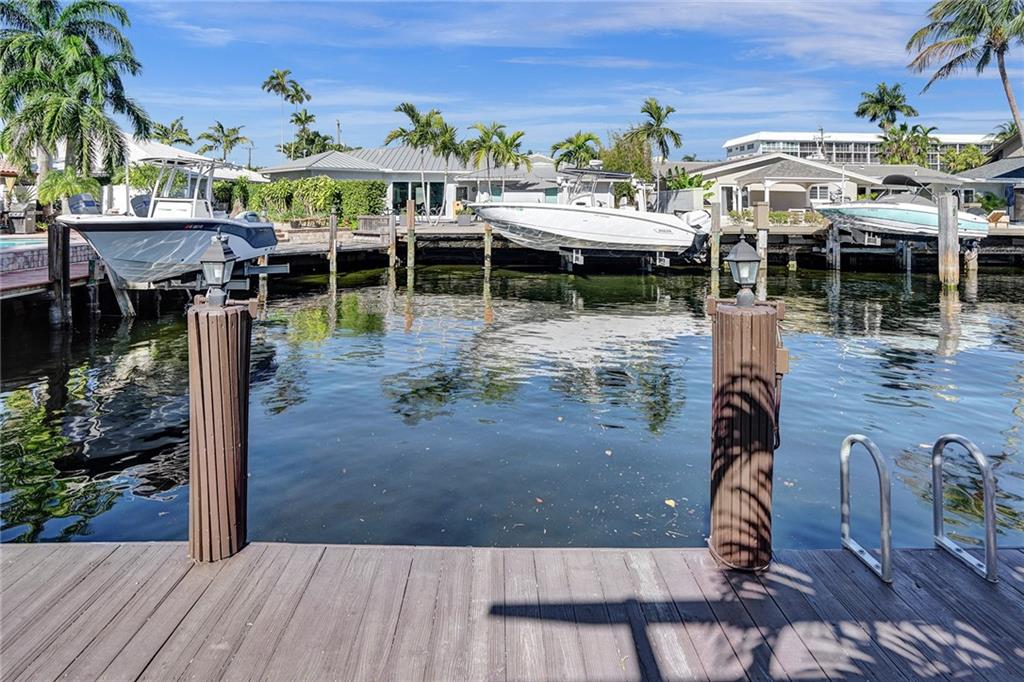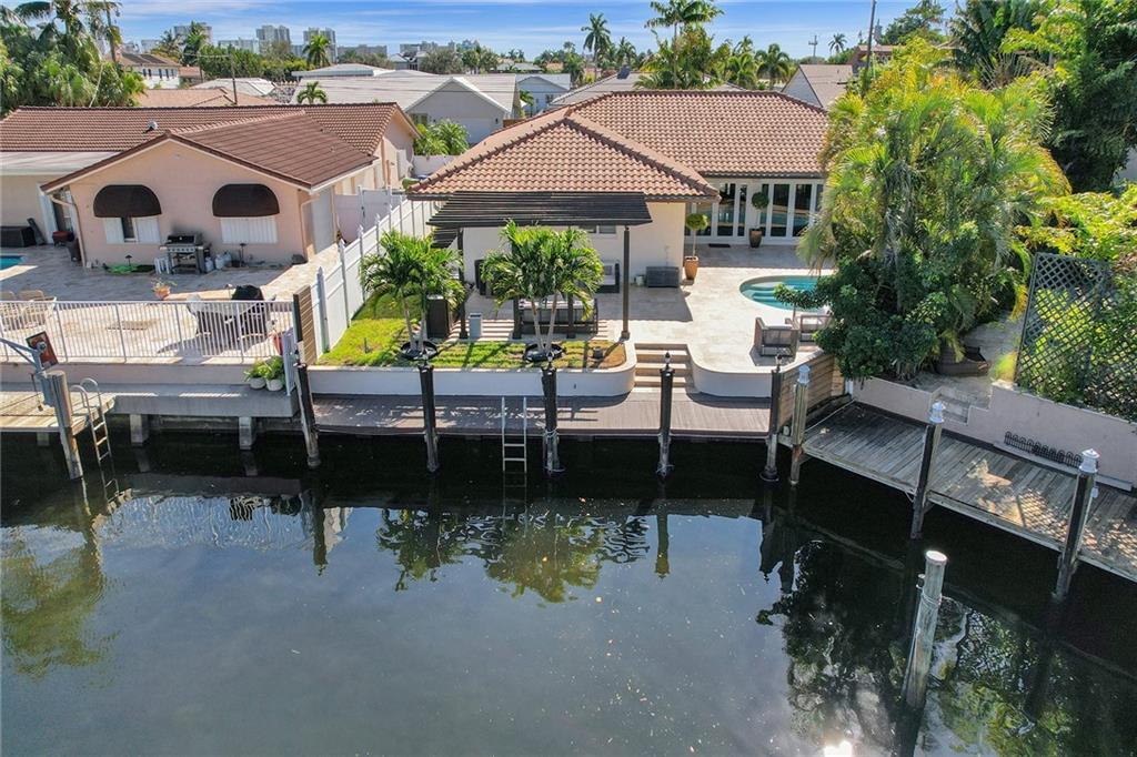 Coral Ridge Country Club is a boater's paradise due to its unobstructed access to the intracoastal. Homeowners can enjoy the luxurious lifestyle in this stunning, open floor plan, split 3 bedrooms 3 bath Waterfront home, plus Pool. Private 40ft dock with shore power electric connector. Modern kitchen is fully equipped with high end Thermidor appliances including a gas range and oversized island provides extra space for dining. Extended Master Suite has a walk-in custom closet and a luxurious bath. Completely reconstructed in 2021, with updated plumbing and electric. Updated features include: Generac generator, impact windows and doors, porcelain floors, built in surround sound speakers, custom security system with cameras. WON'T LAST! MUST SEE TO APPRECIATE!