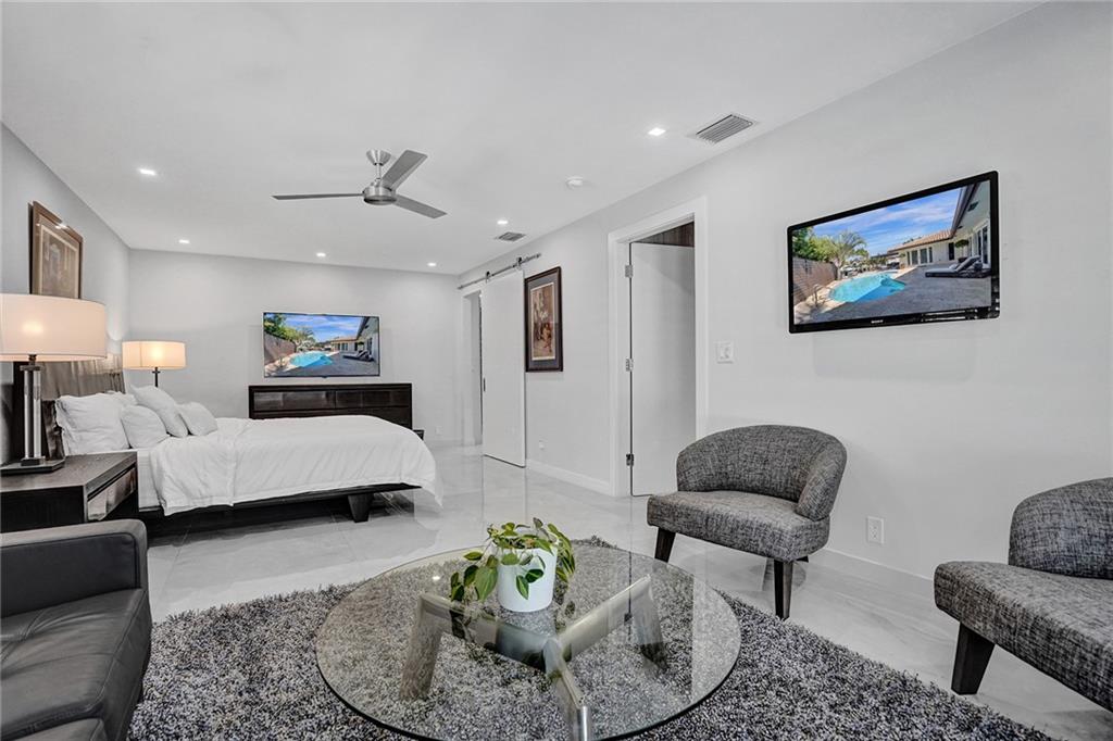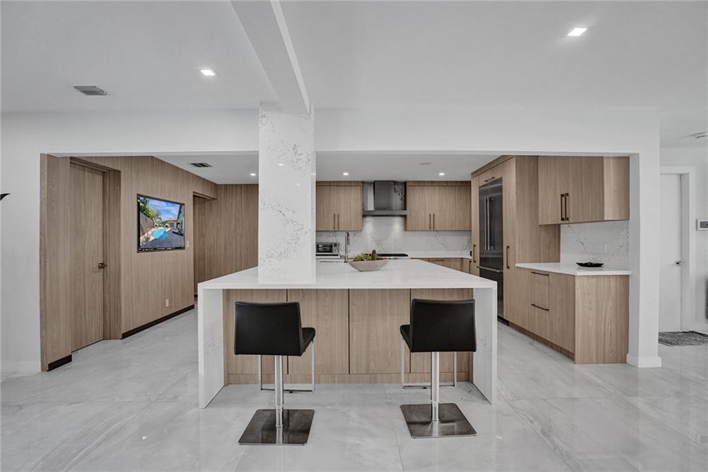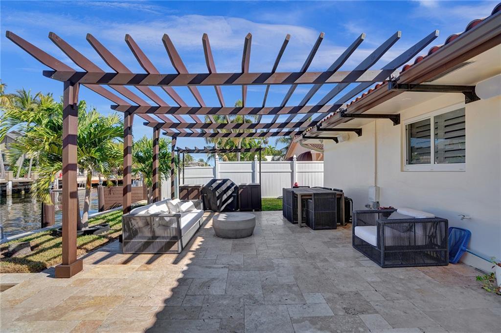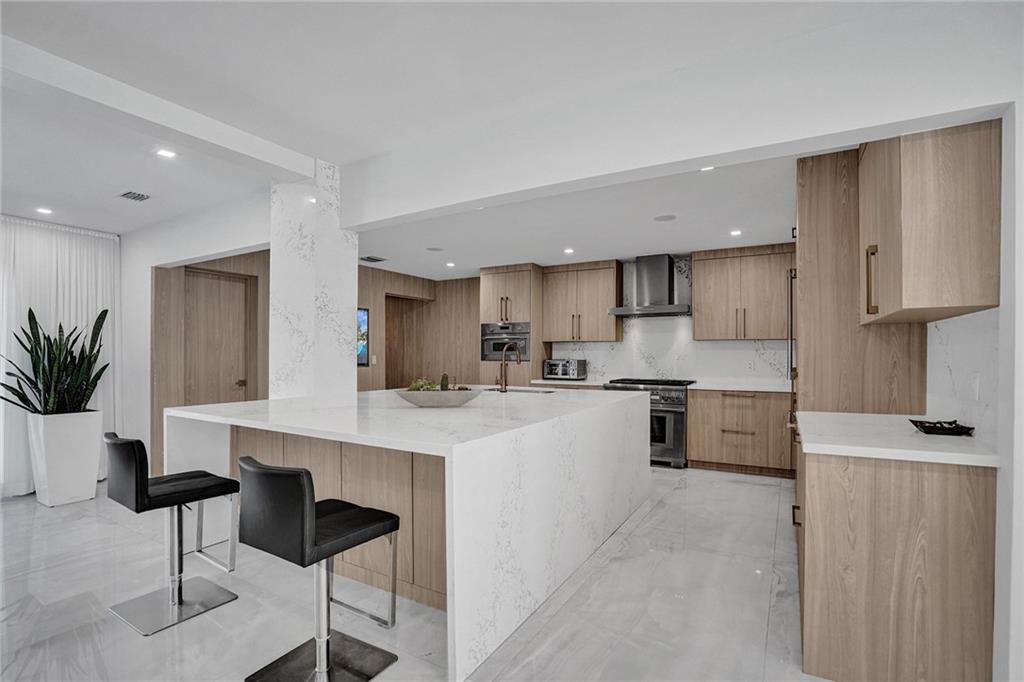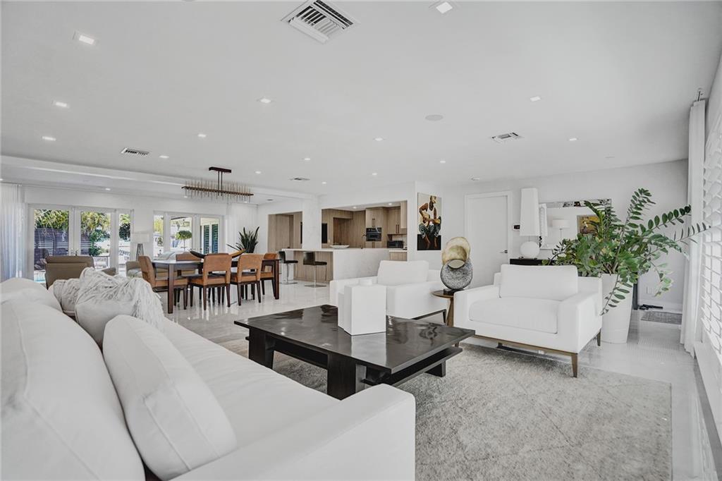 Coral Ridge Country Club is a boater's paradise due to its unobstructed access to the intracoastal. Homeowners can enjoy the luxurious lifestyle in this stunning, open floor plan, split 3 bedrooms 3 bath Waterfront home, plus Pool. Private 40ft dock with shore power electric connector. Modern kitchen is fully equipped with high end Thermidor appliances including a gas range and oversized island provides extra space for dining. Extended Master Suite has a walk-in custom closet and a luxurious bath. Completely reconstructed in 2021, with updated plumbing and electric. Updated features include: Generac generator, impact windows and doors, porcelain floors, built in surround sound speakers, custom security system with cameras. WON'T LAST! MUST SEE TO APPRECIATE!