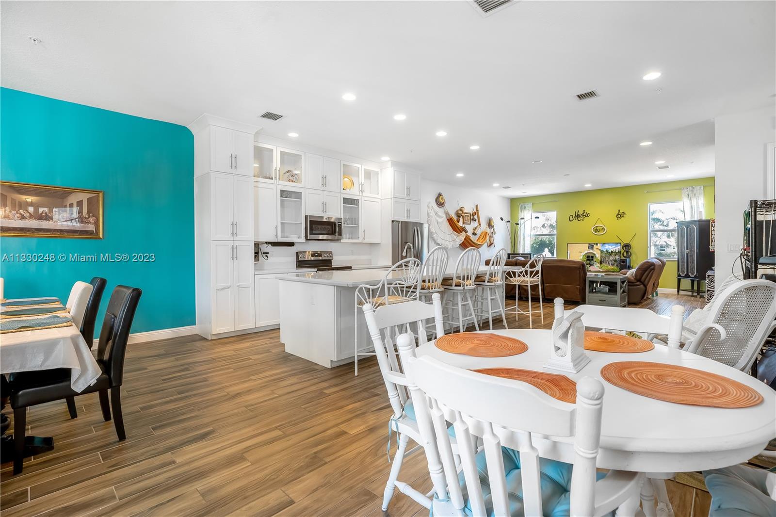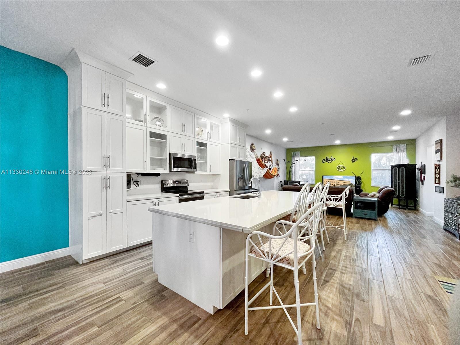 This stunning corner-unit townhome is sure to impress! Boasting over 3,000 square feet of living space & 10 ft ceilings on every level. From impact windows & doors, fire sprinkler system, security system, tons of closet space, and a 2-car garage. A flexible 1st-floor layout offers multiple possibilities with a living room complete with a kitchenette plus a bedroom and full bathroom ideal for multigenerational living or even an office with its own a/c unit. The open concept 2nd floor will be your favorite place to entertain friends as you prepare meals in the upgraded kitchen with a half bath. On the 3rd floor, you'll find 3 bedrooms plus 2 bathrooms & full-size laundry room. Enjoy all that this upscale gated community has to offer including a fitness center, heated pool & jacuzzi