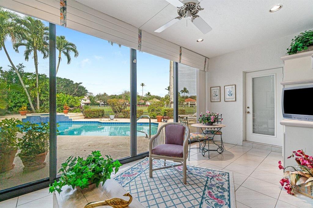 This perfect size house sits on an oversized lot with a panoramic lake and golf course view. The home can be configured as a 3 bedroom or 2 bedroom plus den. The open floor plan is perfect for entertaining family and friends. The covered patio has been glass enclosed for additional living space and offers a great view of the pool area and beyond. Bring your decorator and make it your own. Broken Sound club is finishing it 30 million dollar renovation that will keep it the premier private club community in the area. Come live the lifestyle you deserve at Broken Sound. ''Membership required''