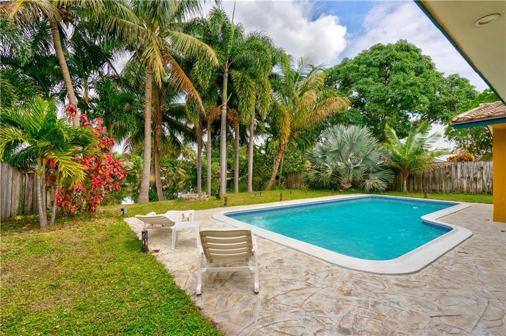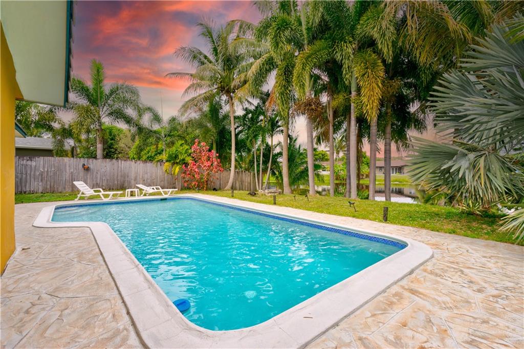 Drastic Price Reduction - Don't miss out on this beautiful home with tropical backyard in Palm Aire Village West with NO HOA! Impact Glass windows and Hurricane garage door, barrel tile roof, newer LVT flooring in all the bedrooms. This home has been meticulously maintained with three bedrooms 2 bathrooms, large kitchen with granite countertops and Florida room opening to pool and views of the water. Pool has been redone with new surfacing and tile with extra decking added around pool. Feel like you live in paradise year round or great Airbnb potential. Close to airports, restaurants, schools and a short drive to Florida's beautiful beaches. Don't miss out from this home and the gorgeous view from this backyard!