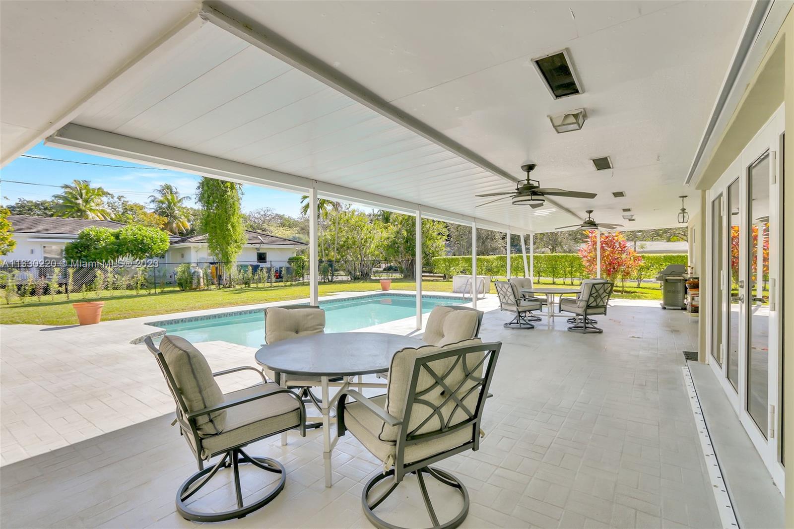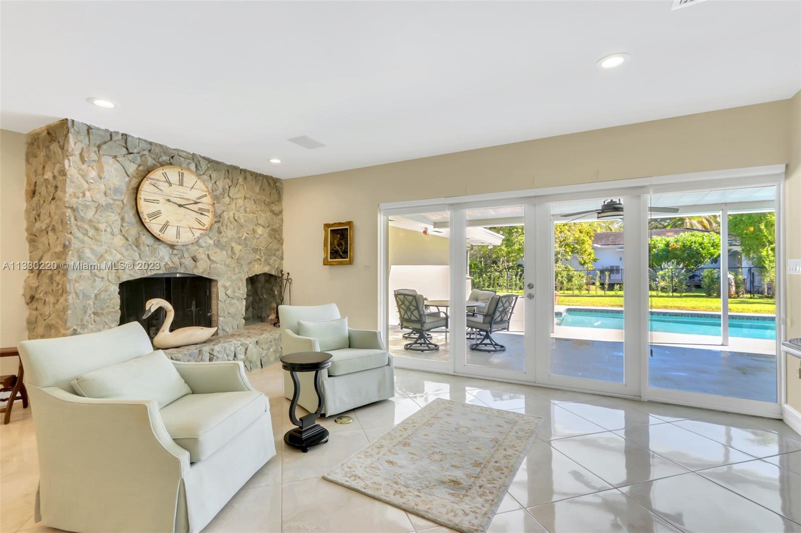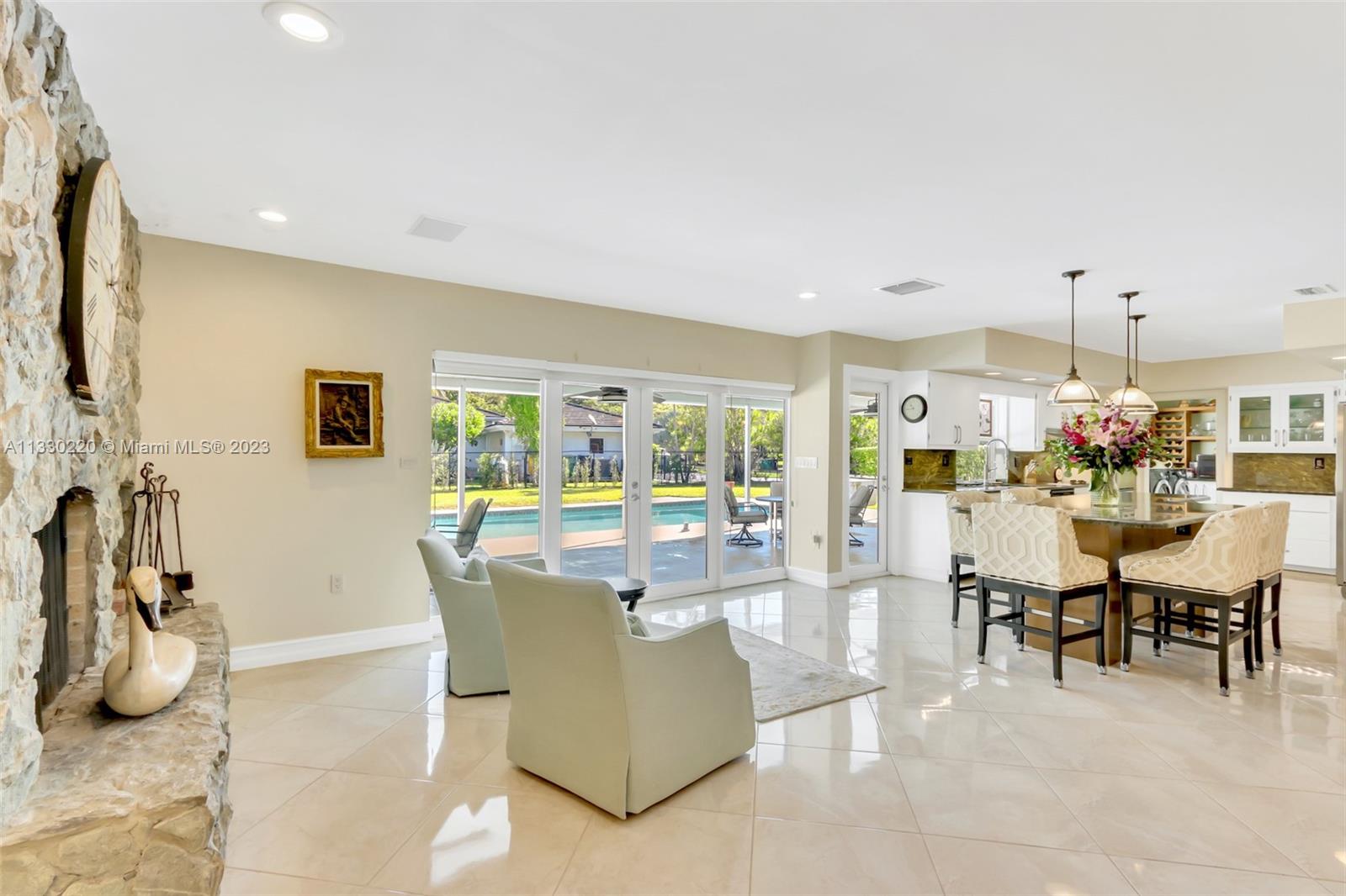 A great opportunity to live in Pinecrest! Nestled in a quiet corner lot with mature trees, families will love this 3 bedroom home. A modern, open floor plan flows seamlessly one room to the other. Loads of natural light and large spaces, this immaculate home offers plenty of space for gatherings and entertainment. A spacious kitchen with granite countertops and island overlooking the pool and patio. An incredibly spacious suite which includes your own fireplace, and plenty of built-in closets, joining an enormous bath with vanity mirror and make up area with view of the garden. Impact windows doors, newer AC 2021. Great Schools. Simply the very essence of entertaining & great family living!