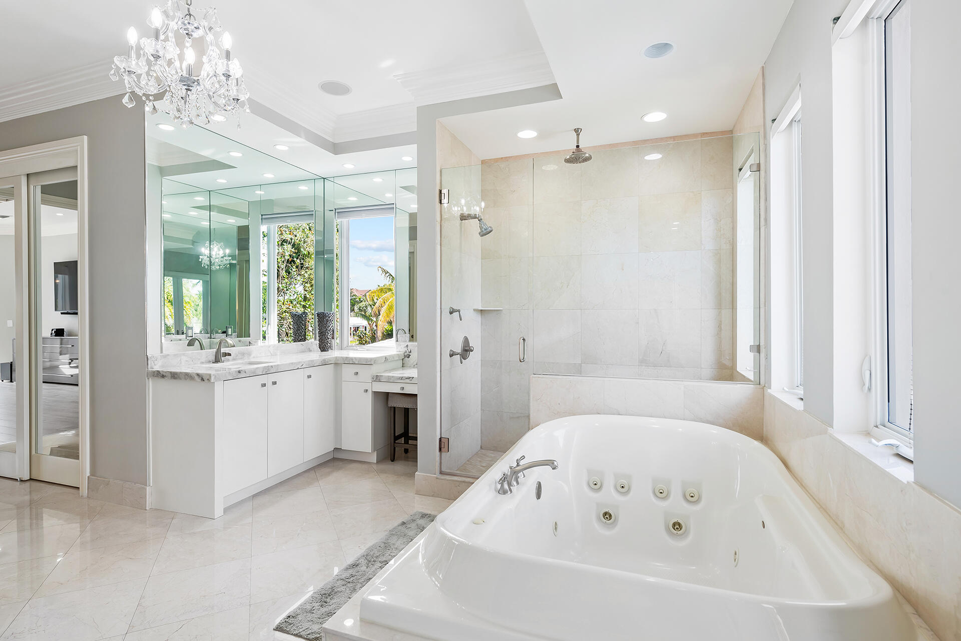 Contemporary tropical oasis situated majestically on deep water in East Boca Raton. This coastal estate features remarkable craftsmanship with sophisticated interior design. Sprawling 20 foot plus ceilings greet you as you enter this fairytale home. The elegant open concept boasts an updated lavish kitchen. A newly installed and expanded pool deck, freshly renovated and redesigned pool, newly installed batter piling on Seawall, and a newly installed 20,000 lb boat lift, complete the waterfront experience. A marble staircase and elevator lead you to the second floor with never ending water views. The thoughtfully planned master bedroom includes a sitting area for a morning sunrise relaxation, a resort like spa bath, and expansive balcony views. Impact glass,