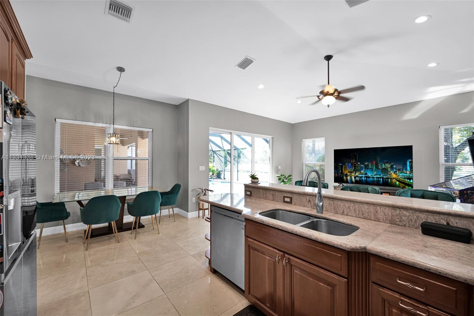 GORGEOUS TURNKEY 4 BED 3 BATH POOL HOME OFFERS BREATHTAKING WATER AND GOLF COURSE VIEWS IN EXCEPTIONAL MANNED GATED COMMUNITY OF GRAND PALMS. ELEGANT DOUBLE DOOR ENTRY WELCOMES INTO AN IMPRESSIVE FOYER W STUNNING TILE MOSAIC. OPEN FLOOR PLAN BOASTS 2,538 SQ FT OF LIVING AREA & SOARING CEILINGS. ENJOY SPACIOUS SOCIAL AREAS EACH WITH ACCESS TO THE POOL & PATIO. KITCHEN OFFERS WOOD CABINETS, GRANITE COUNTERS & BRAND NEW SS APPLIANCES. SPACIOUS PRIMARY SUITE HAS DIRECT ACCESS TO PATIO & POOL & LOTS OF CLOSET SPACE. ENSUITE CABANA BATH W GARDEN TUB & SEPARATE SHOWER. CONVENIENT JACK & JILL BATH. IMPACT WINDOWS. INDULGE IN SUNSET VIEWS WHILE DINING POOLSIDE ON THE LANAI. DEDICATED LAUNDRY ROOM W STORAGE & LAUNDRY SINK. ENJOY PROXIMITY TO SHOPS, GOLF, RESTAURANTS & CONVENIENT ACCESS TO I-75.