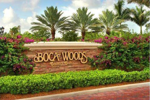 Located in highly desirable Boca Woods Country Club. Beautiful move in ready two bedroom, plus office/den, two bath, two car garage with an oversized patio overlooking a tranquil water view. This exceptional home features impact windows, an open and bright living area, dinning room and eat in kitchen. Resort style living with two 18 hole golf courses, tennis facility, pickelball, new state of the art fitness center, spa, game room, fine/casual dining & more! Mandatory membership $95,000 ($20,000 equity refundable when you sell home) paid to BWCC 10 days prior to closing.
