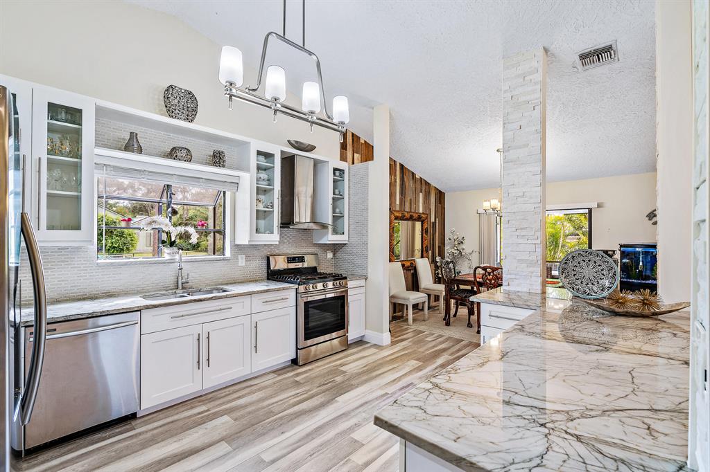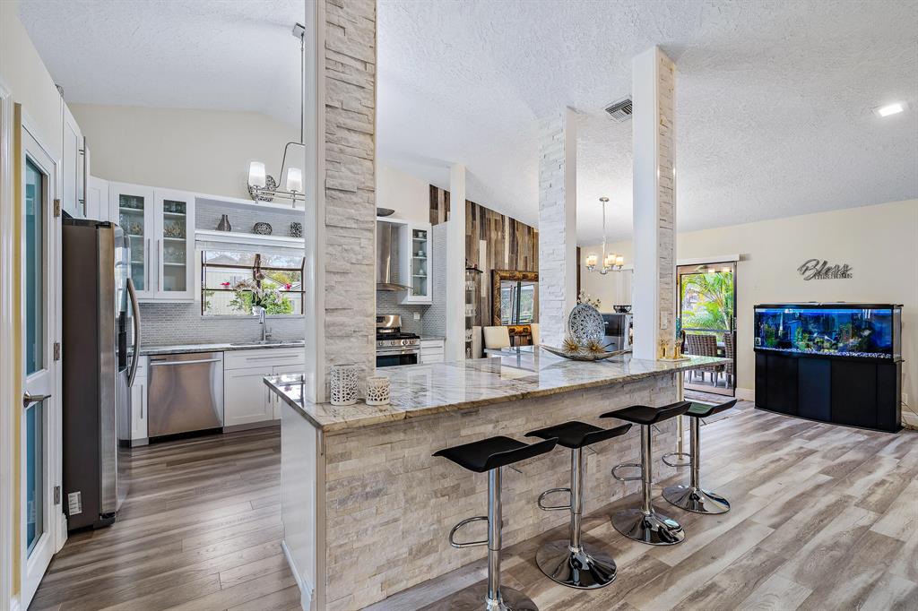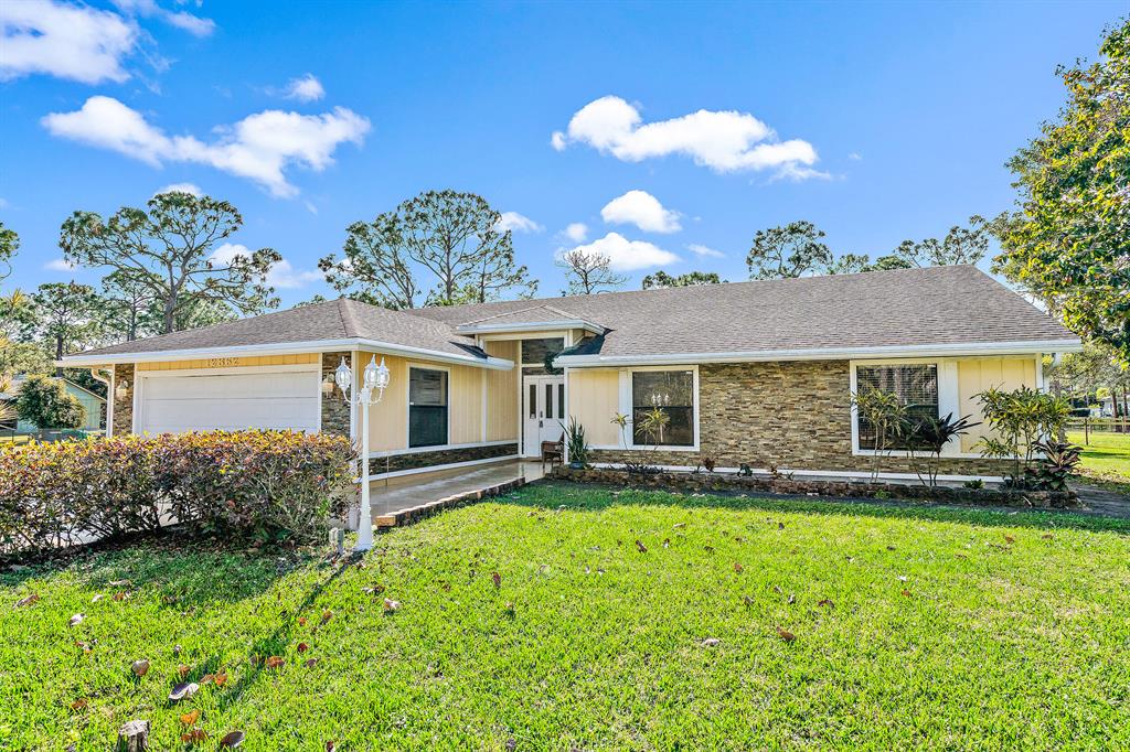 Absolutely lovely acreage pool home. Sit out at night and watch the stars from this updated 3 bedroom, 2 bathroom home with an office space that had been totally remodeled in 2018. High vaulted ceiling when entry the home and main living area. Kitchen has quartz counters with Breakfast bar, wood laminate thru out, Laundry room with built in cabinets, large bedrooms with crowd molding. Plenty of pool deck space plus all screen enclosed to inground pool, fully fenced backyard. *2018 new roof, A/C, pool resurfacing. 2022 new RO water filtration system providing cristal clear water for drinking, interior painted, crowd molding. 2023 new water pump.