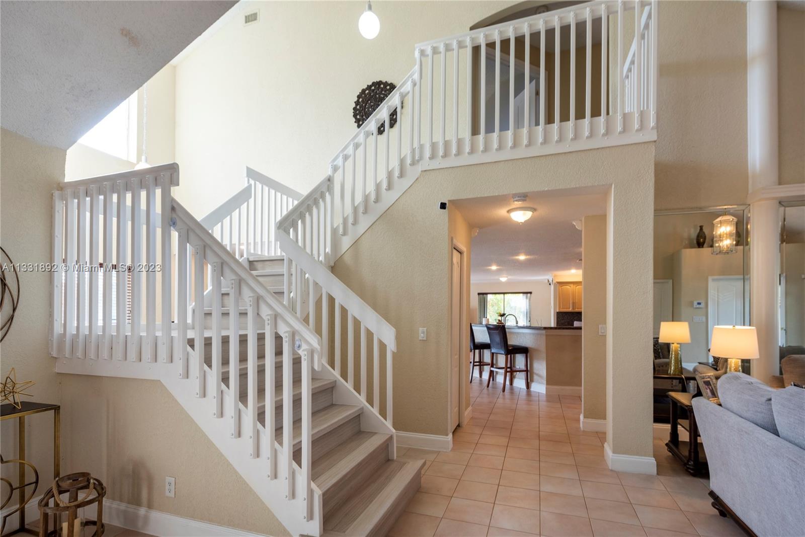 Breathtaking lake views from the second you walk in the gorgeous custom entry doors of this spectacular estate! As one of the most in demand floor plans, this home has it all! Huge updated kitchen w/ granite counters, stainless steel appliances, walk-in pantry, & a large island opens into the expansive family room *Wet bar w/ wine fridge off the family room is perfect for entertaining *Oversized pool overlooking peaceful lakeview *Spacious rooms *Luxurious remodeled master bath w/ jetted tub & custom glass door *1 bedroom/full bathroom downstairs *Tile/vinyl floors throughout *Accordian shutters & upgraded garage doors *Dual zone AC's both replaced 2019 & 2021 *3 car garage w/ storage built-ins *Gated community *Association fees include cable & internet Master: $450/Q Sub: $120/Q