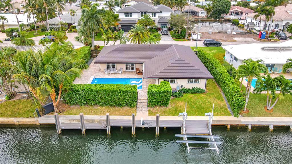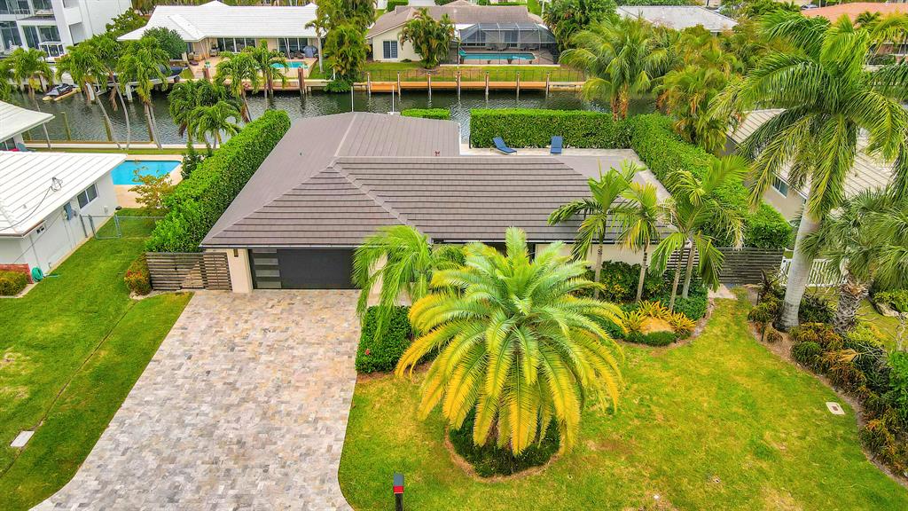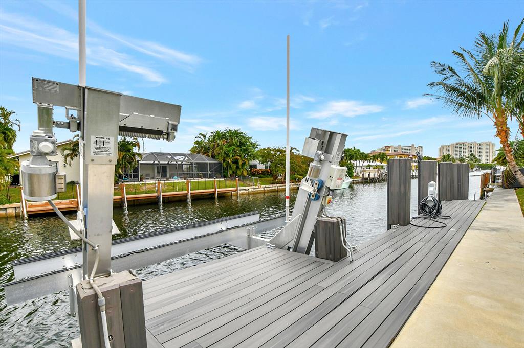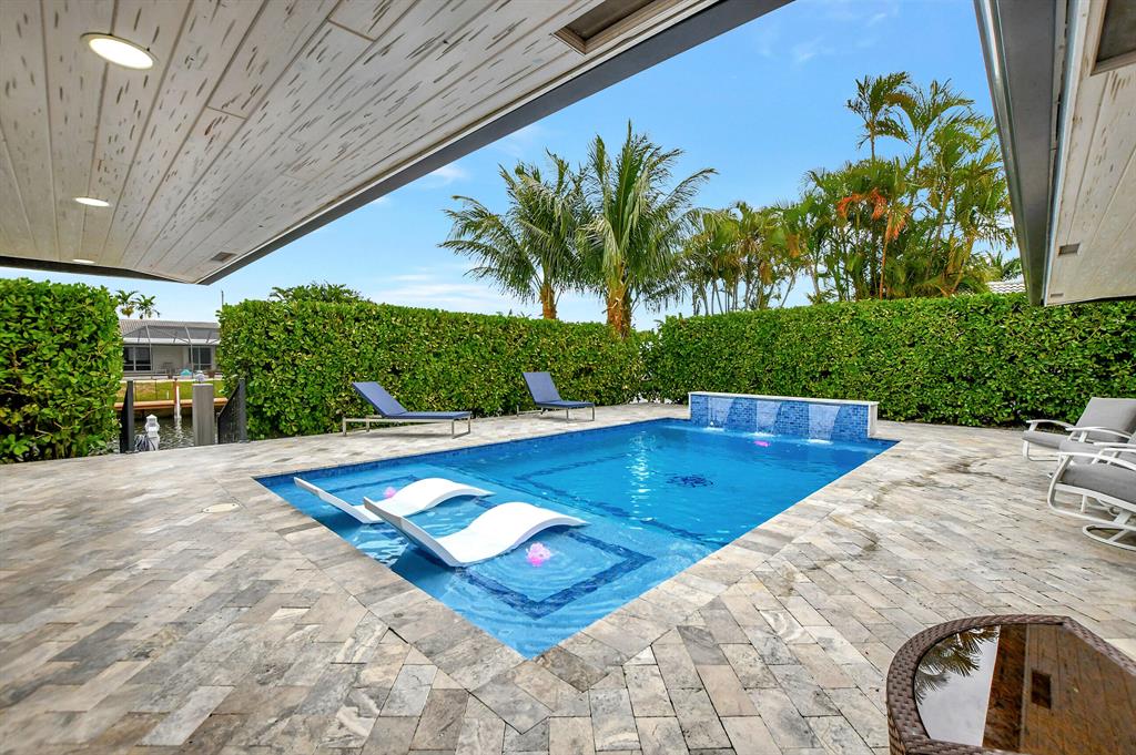Welcome home! Gorgeously updated, impeccably maintained contemporary 3 BR, 2 BA waterfront turnkey smart home in Bel Marra of East Boca. Private dock sits on 85' of water frontage on a wide canal, with no fixed bridges, and direct intracoastal and ocean access, and includes a 16K lb elevator boat lift. Split floor plan with plenty of space inside and out for entertaining. Private backyard oasis with stunning saltwater pool and sun shelf, & covered patio area. Featuring: impact glass windows & French doors, whole house standby generator, natural gas, high end Wolf and LG appliances, luxury light fixtures, and lushly landscaped front and back yards. Oversized 2 car garage with epoxy floors and storage cabinets. Furniture and decor are negotiable. Minutes to the beach, Mizner, & Atlantic Ave