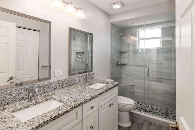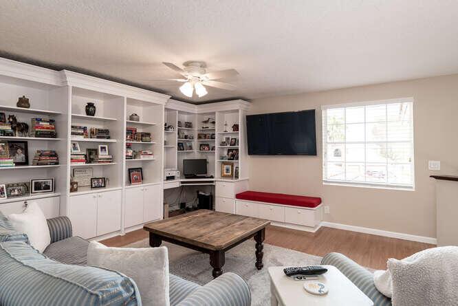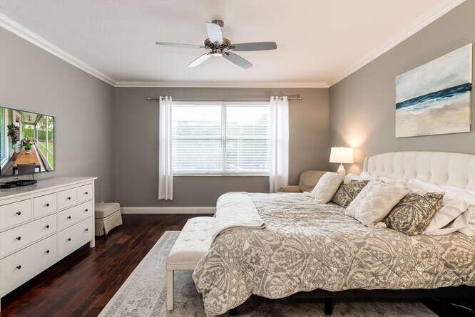 Stunning TURN-KEY home with 5 bedrooms, loft, 3 full bathrooms plus half bath, and 3 car garage on a quiet cul-de-sac. Fully fenced, very private spacious backyard. Enjoy the tranquil swimming pool and screened lanai with friends and family all year round with the new wirelessly controlled heater/chiller. NEW ROOF just replaced in 2021. Storm protection throughout, and new 2022 high end ACs on upper and lower levels! Newly renovated kitchen with custom kitchen cabinetry and stainless steel appliances. All bathrooms are beautifully renovated! Outstanding layout with the master suite downstairs and all other bedrooms upstairs. A perfect guest room with its own en suite bathroom! This home also features custom built-ins in the living room and the spacious loft.