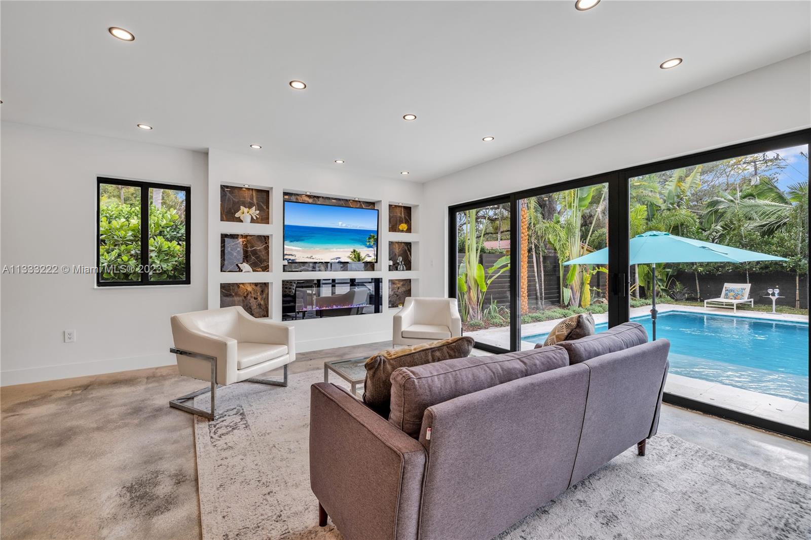 Welcome to Villa Paradise! With its relaxing “beach house” vibe, you’ll feel like you’re at Club Med in this just-updated 4-bedroom 3-bath Miami Shores dream home plus full Pool Cabana Guest House! Spectacular interiors: open-flow living, designer fireplace, formal dining, sun-media room, and incredible gourmet eat-in island kitchen with storage galore. Unwind in 4 spacious bedrooms, including the sumptuous main suite retreat! Totally turn-key with new roof, modern baths, impact windows-doors, AC, plumbing, electric, hardwood floors, plus a huge 621 SF detached pool house with wet bar, full bath, media wall, and cool polished concrete floors. Located a non-flood zone in “Shores’ End,” Miami Shores’ only walled cul-de-sac community with only one access point in and out. Welcome to Paradise!
