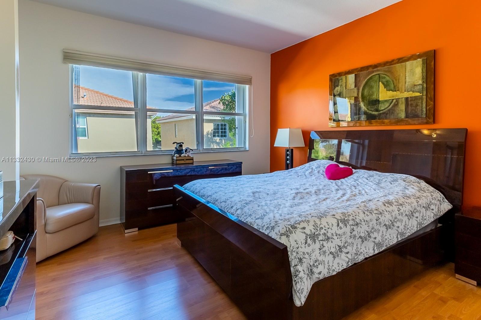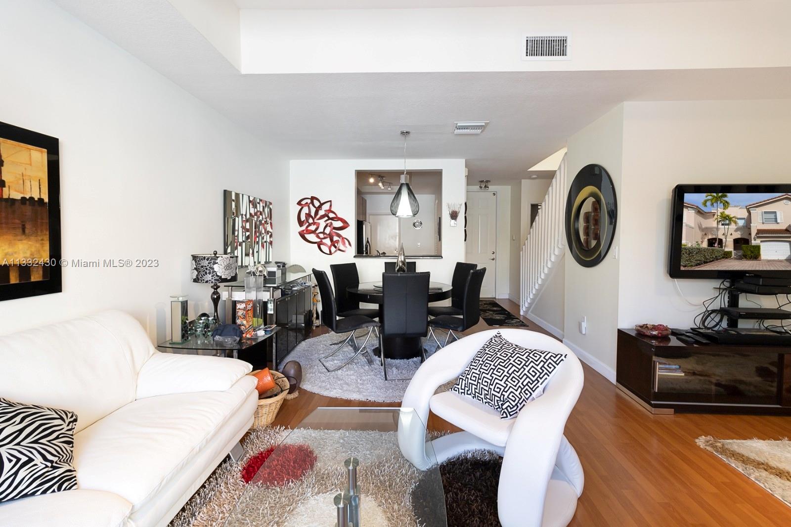Beautiful 2 bedrooms, 2.5 baths townhome with garage in the extremely desirable gated community of Hawksnest in the heart of Doral. This fabulous townhome offers laminate floors throughout the living spaces and ample of storages. Spacious and function layout, kitchen includes stainless steel appliances, granite countertops, lots of natural light, full size washer and dryer, and well maintained. Two master bedroom suites with walk in closet on both. Centrally located near great schools, supermarkets, restaurants, easy access to highways and so much more. Small cozy community with only 72 homes, LOW HOA fee.