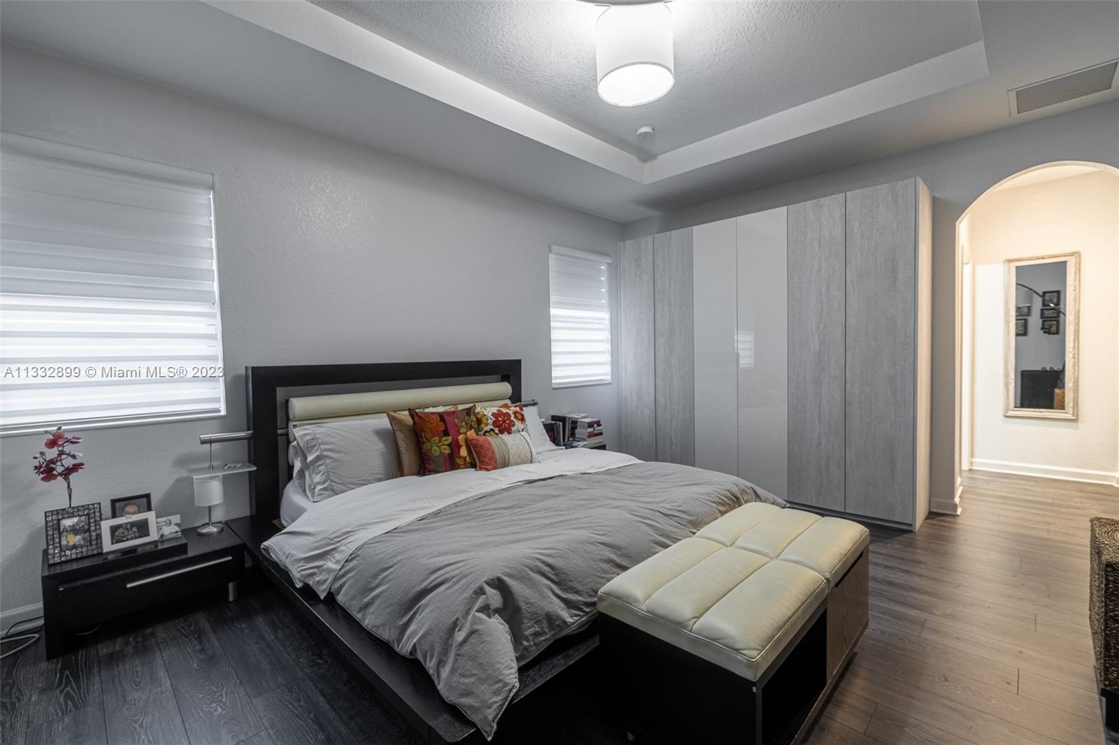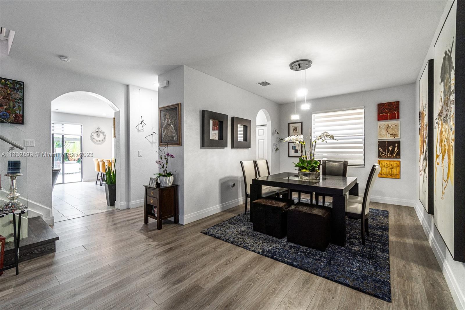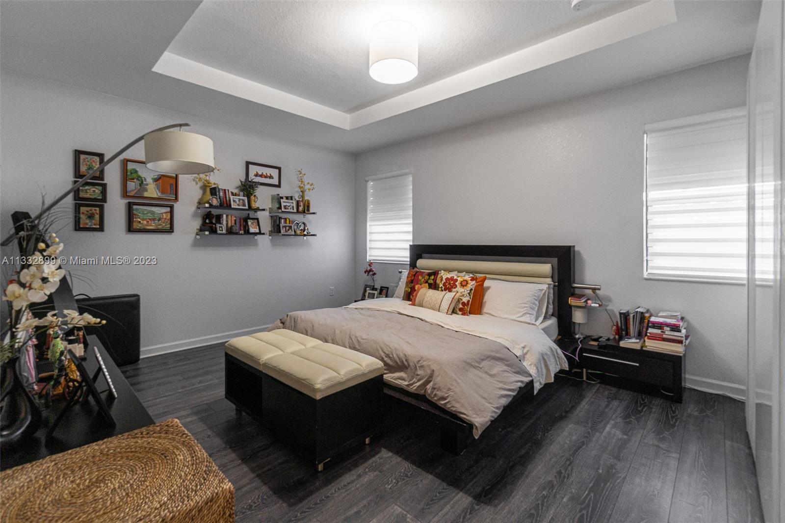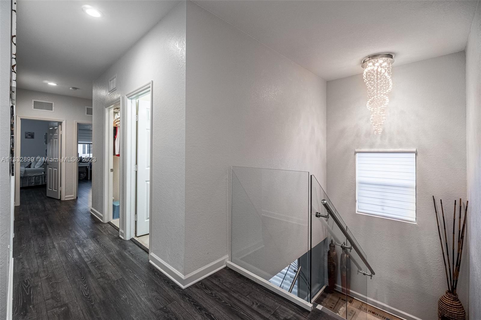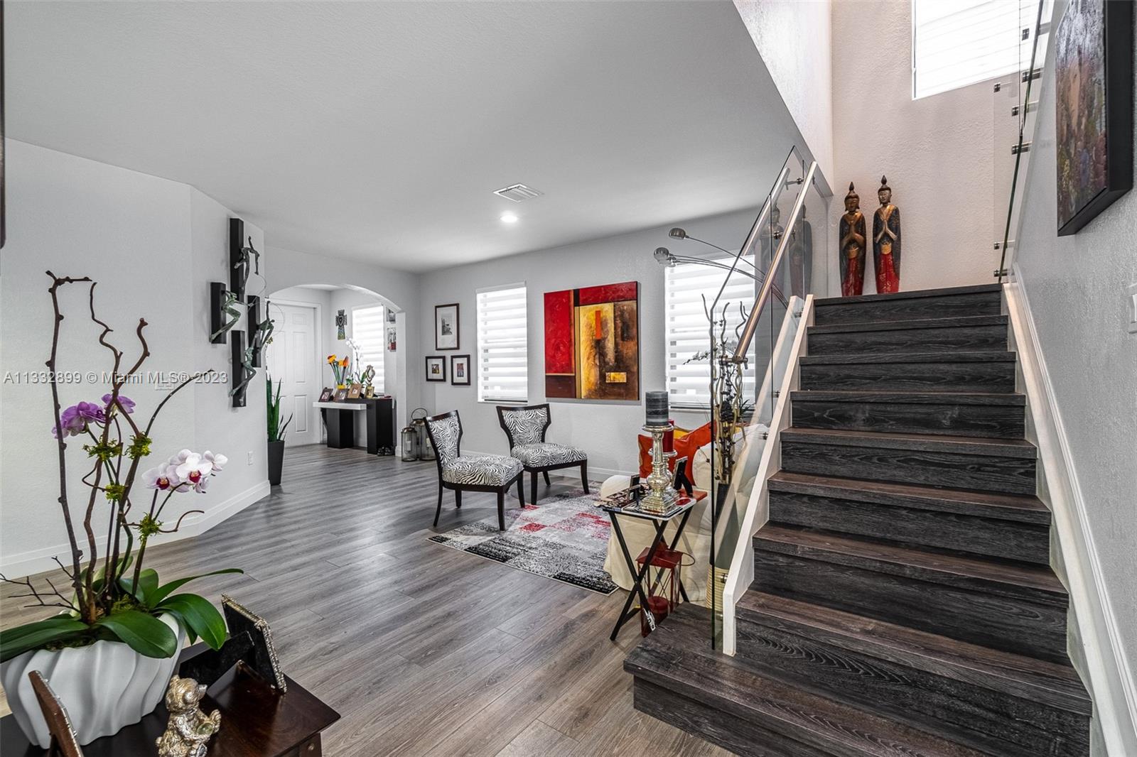 Spectacular home at Aragon. Property features 5 Beds and 4.5 baths and 2 car garage. Very spacious on the first floor. Modern remodeled kitchen with S/S appliances. 2 master bedrooms upstairs. Zebra blinds. Glass staircase. Entertain your family and friends in the fenced tile backyard with a gazebo. Space up to 4 car parking spots in front of the unit.