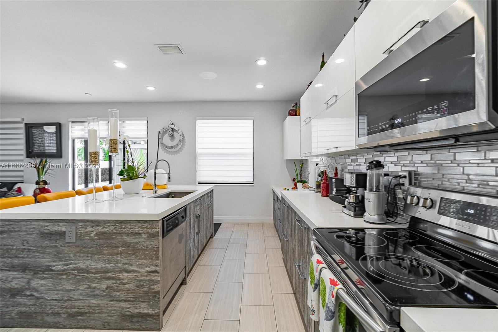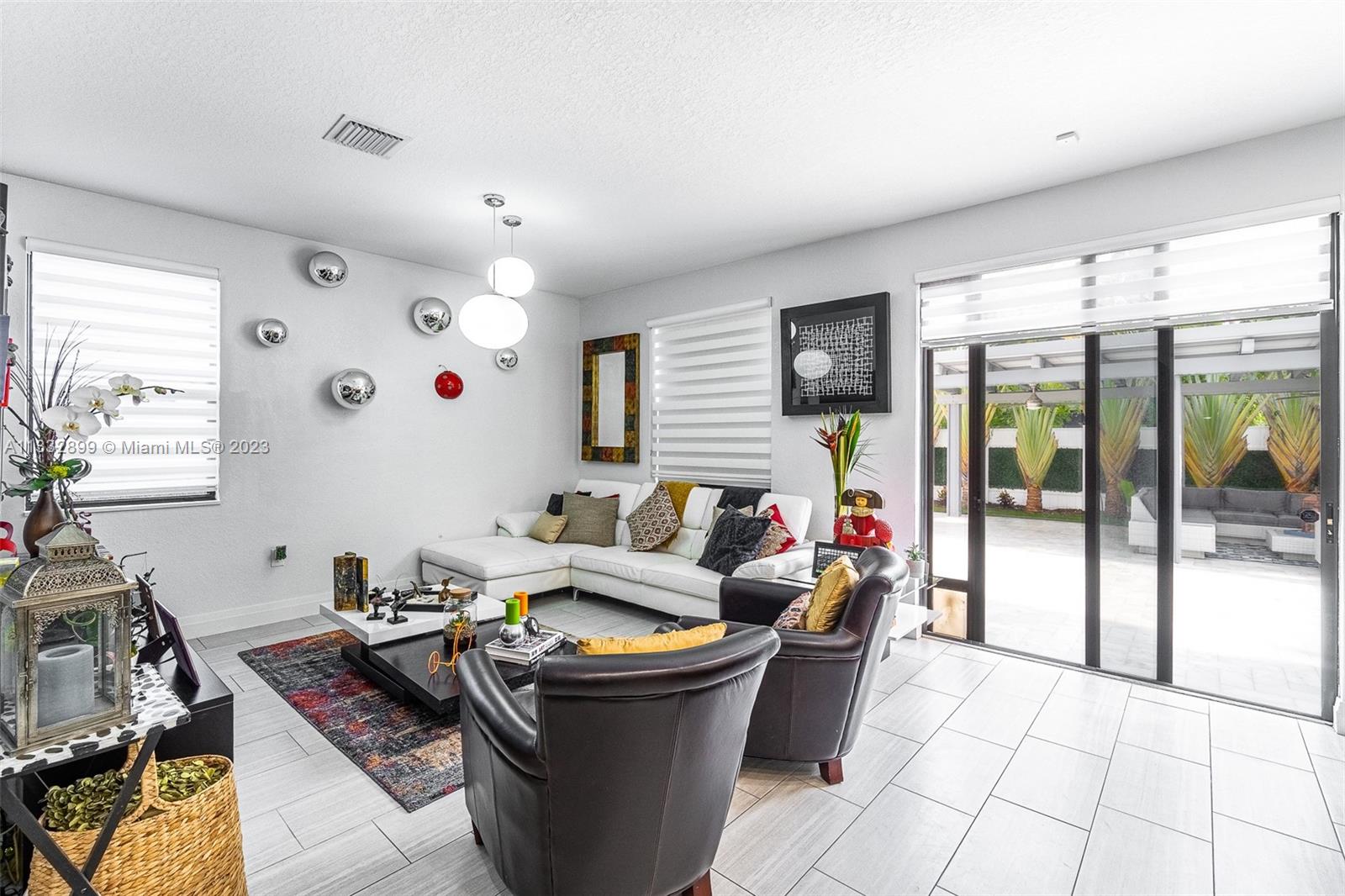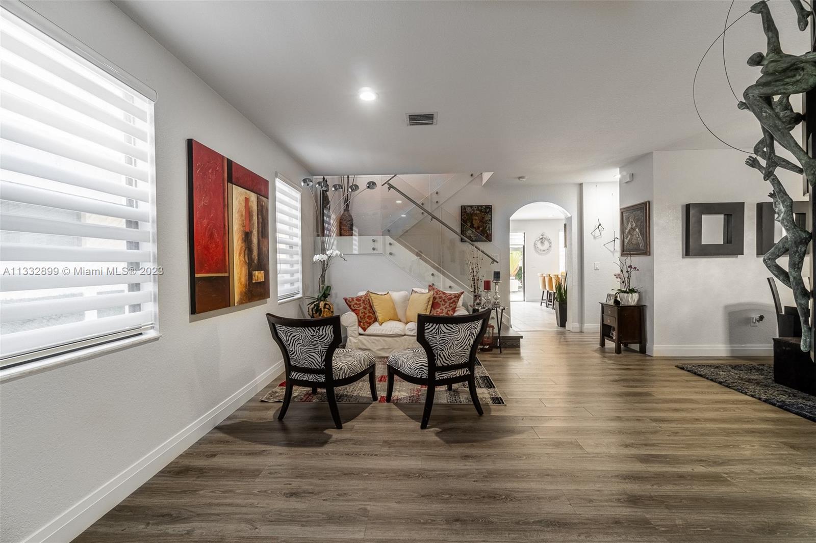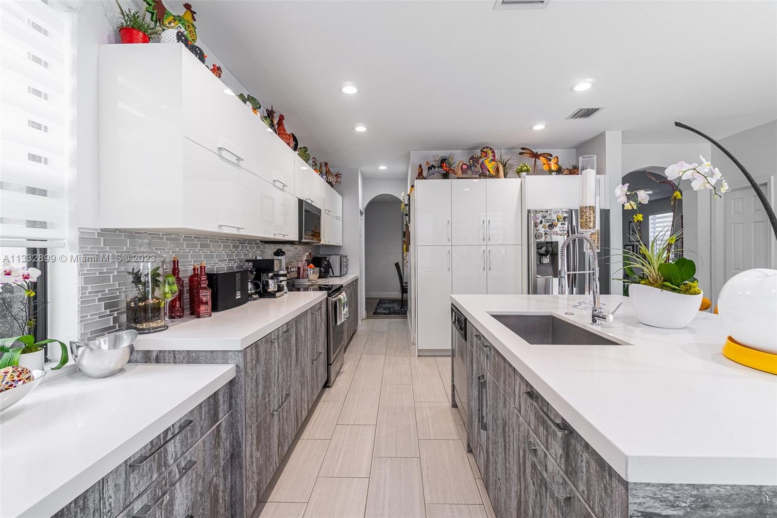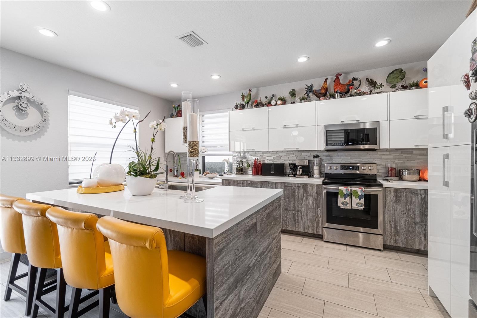 Spectacular home at Aragon. Property features 5 Beds and 4.5 baths and 2 car garage. Very spacious on the first floor. Modern remodeled kitchen with S/S appliances. 2 master bedrooms upstairs. Zebra blinds. Glass staircase. Entertain your family and friends in the fenced tile backyard with a gazebo. Space up to 4 car parking spots in front of the unit.