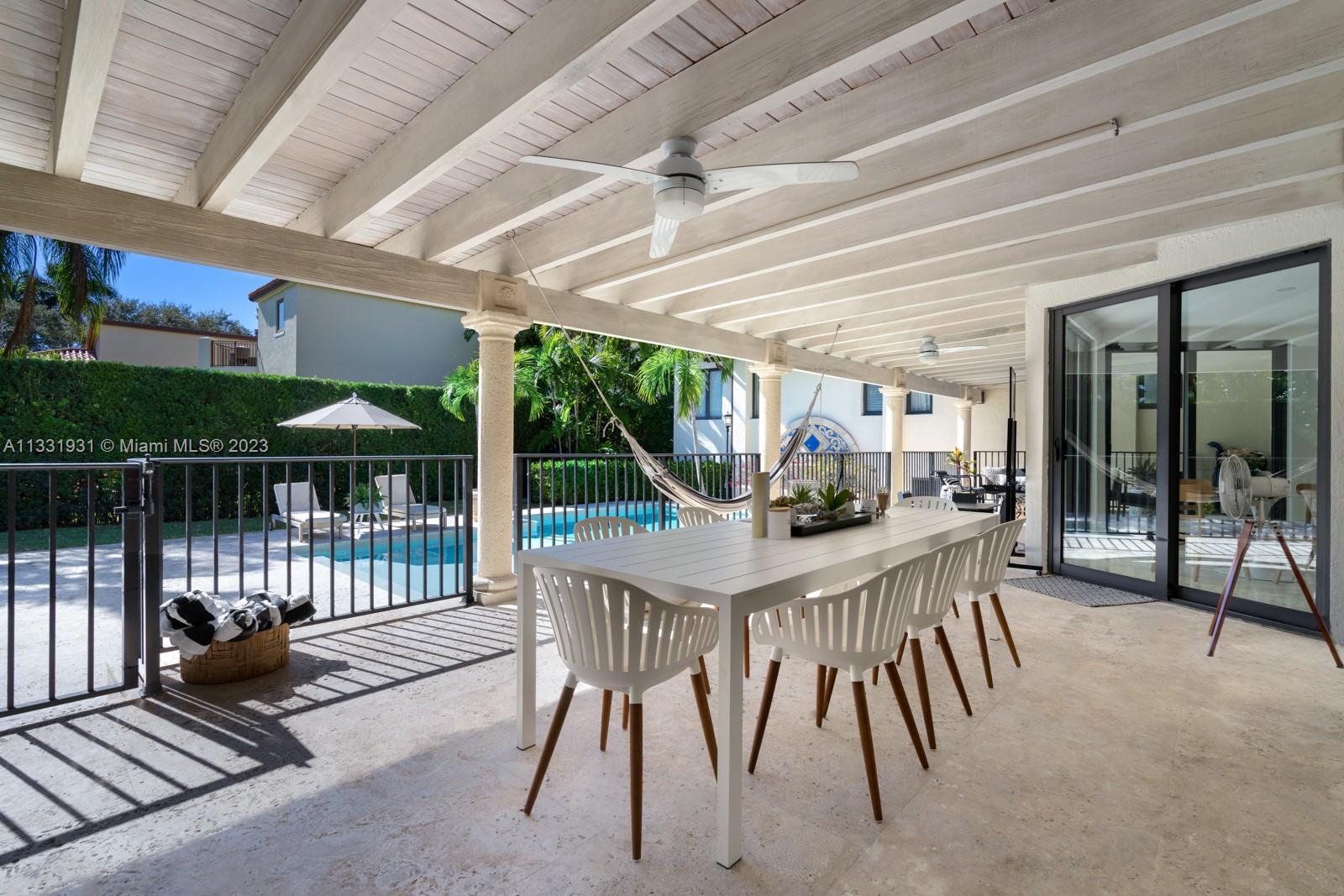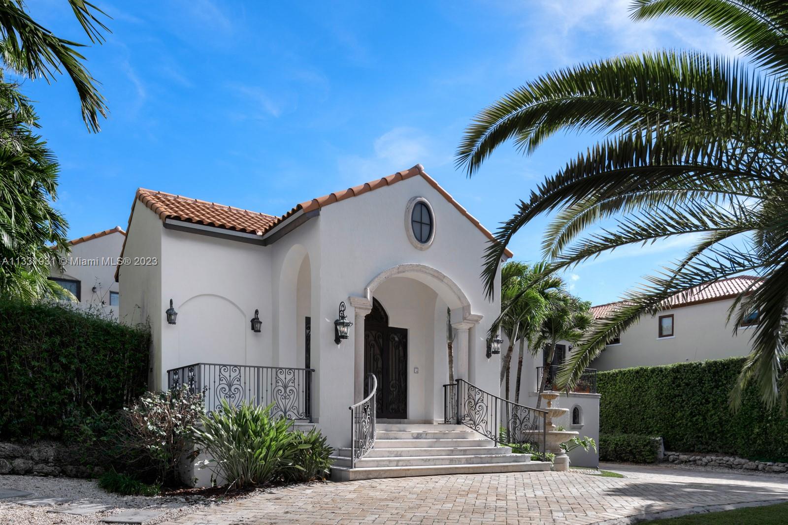 A Mediterranean Revival set within the coveted Islands of Cocoplum. Stunning curb appeal and an exquisite entry hint at a luxurious, elevated interior. Tray ceilings, glass walls framing tropical flora and light marble flooring do not disappoint. Built for entertaining, the bright, airy living spaces and state-of-the-art kitchen with Miele appliances and cooking island open up to a resplendent outdoors. Relax and unwind on the covered terrace with a well-equipped summer kitchen, large pool and Cabana bathroom. A sense of privacy is experienced in the third level master suite, with the four additional bedrooms, and ensuite baths located on the 2nd level. Privacy and security, resort-style amenities, and Miami landmarks within a short driving distance make this the perfect setting.