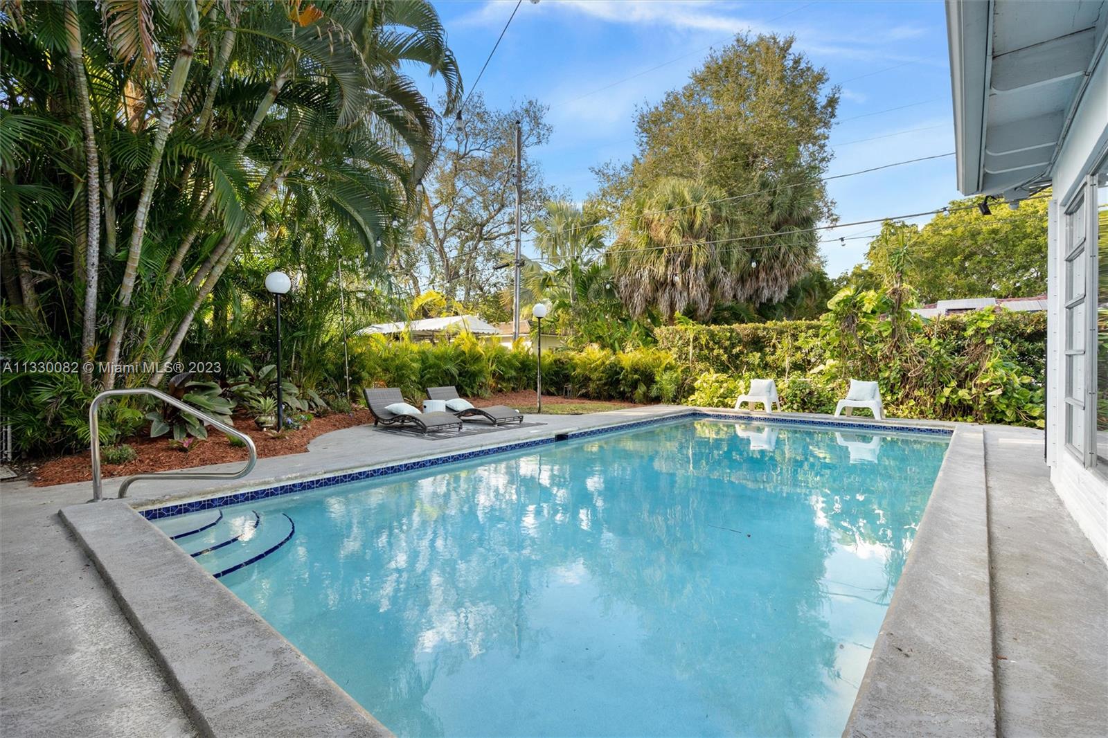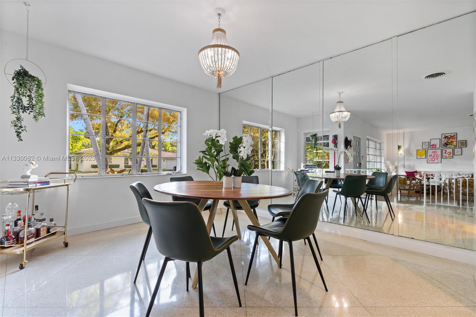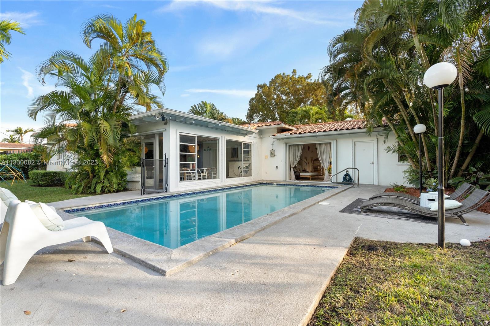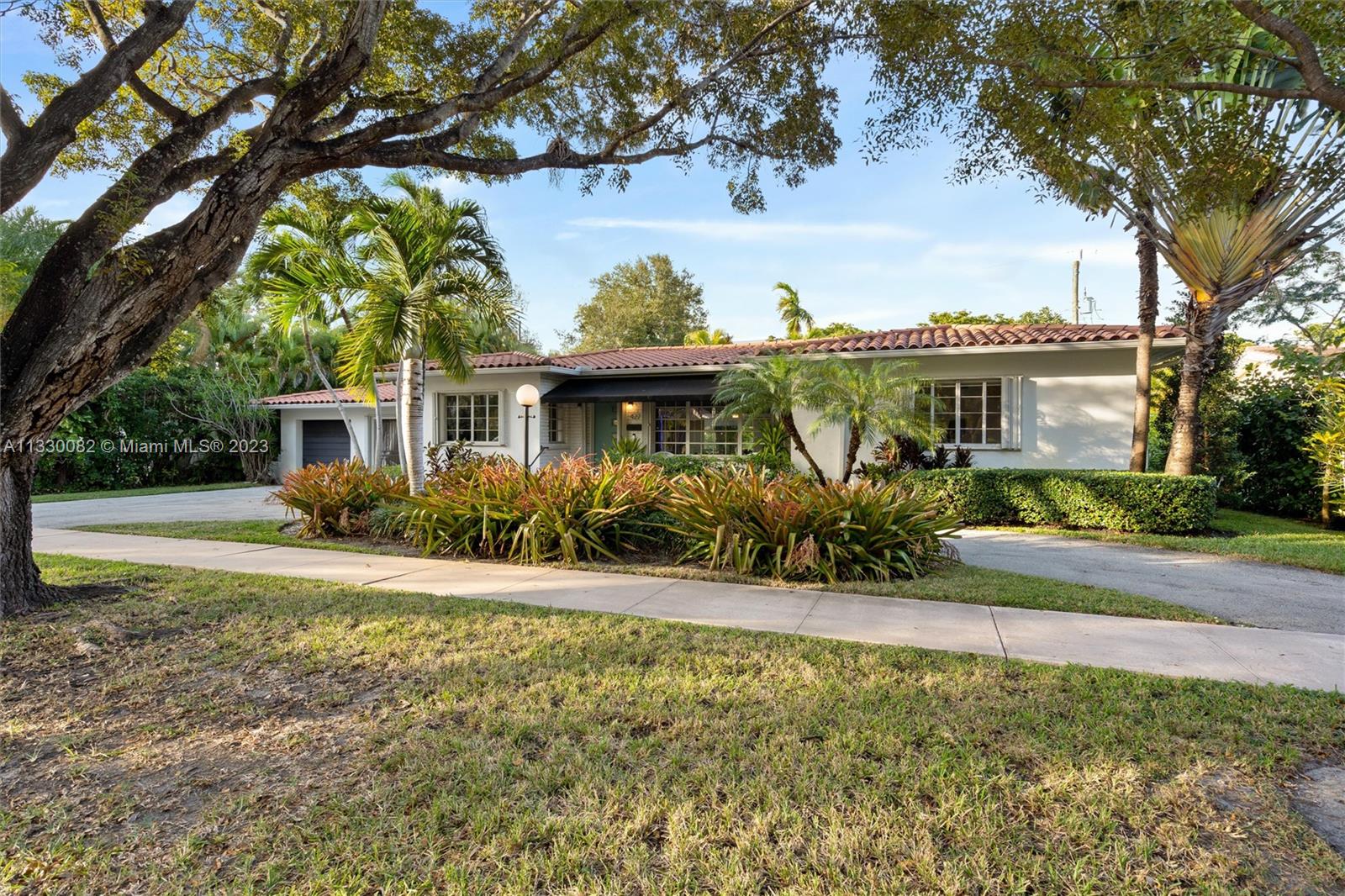 Resting on a 10,000 SQ FT double lot in a quiet area in Coral Gables, this 3-bed, 3.5-bath home is a recently-renovated expression of art deco chic. The open-format living, dining, and family room flow as one united space with terrazzo and wood floors, lined at the rear with geometric windows boasting views of the exquisitely-landscaped back yard and saltwater pool. Many features are brand new, including the roof, plumbing, HVAC system, washer/dryer, dishwasher, guest and master bathrooms, electrical (including SONOS), and landscaping. The breezeway was recently converted into an outdoor lounge, and the garage space can be converted into a guest suite, playroom, home office or gym. This one-of-a-kind property is conveniently located close to Miracle Mile, Youth Center, and Venetian Pool.