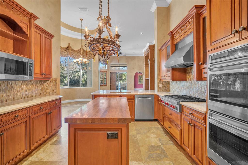 ABSOLUTELY gorgeous Waterfront Estate home set on almost 1/2 acre lot fully fenced within the desired gated community of Grand Cypress Estates. From the entrance of the property is a stunning travertine circular driveway with tons of space for parking and a grand doorway with large ironclad high impact doors! Grand foyer with 22 ft coffered ceilings, recessed lighting and a split floor plan with travertine marble floors throughout. Gourmet kitchen with Wolf & Sub-Zero appliances and a wet bar. Stunning master suite, step in showers and a freestanding tub with walk-in closets and built-in shelving. Oversized travertine patio deck with private fenced in pool PERFECT FOR ENTERTAINING. Enjoy the heated inground Infinity-Illusion pool with jacuzzi overlooking the serene Lakeview's
