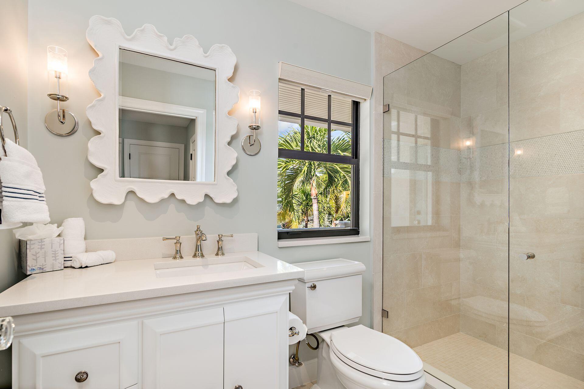Enjoy breathtaking unobstructed Intracoastal views from this coveted Prospect Park residence. This gated estate has been fully and thoughtfully renovated and expanded. Situated on an +\- 11,326 sqft lot, this home offers 3bdrm and 3.5bths in the main house in addition to a separate Guest apartment. The kitchen is a Chefs dream, appointed with Wolf range and Subzero refrigerator, custom cabinetry and an oversized quartz island. The primary suite is a sanctuary, including beamed ceilings, private east facing balcony and a luxurious master bath. Enjoy Florida living at its finest with a resort style heated pool and built-in grill. Additional features include air conditioned 2car garage, fully automated Lutron system, full house Generac generator and custom security system.