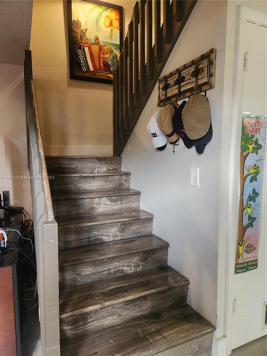 Beautiful Cozy Townhouse for sale, 3/2.5 2 assigned parking spaces, and many guest parking throughout the community. Updated Kitchen quartz countertop, upgraded bathrooms, freshly painted, with vinyl flooring all downstairs and laminated upstairs. It comes with new Washer and Dryer 2022, Hurricane Shutters installed 2021, Water Heater replaced 2018, AC unit 2016 and Roof replacement 2014. Amenities include a barbecue pavilion by the pool area, playground, basketball, and tennis court. The HOA maintenance fee includes exterior painting, roof replacement, lawn care, and much more. "A" rated schools, shopping centers, and major expressways close bye. Don’t miss the opportunity to make this your home, you will fall in love with the property as well as with the friendly neighbors.