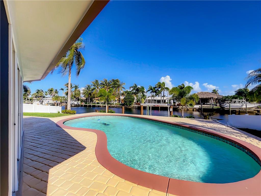 Beautiful spacious waterfront home with ocean access and 10,000 LBS. boat lift in the desirable Garden Isles section of Pompano beach. Located in a quiet area on a dead end street. Brand New Roof 2022, Impact windows with aluminum frame installed in 2022, Gas stove in new kitchen. This turnkey home is over 2,100sq feet under AC with a spacious living room and family room. Master bedroom with double door entry, the 2nd and 3rd bedrooms have enough space for king size beds. AC is new, Washer/Dryer are new. Nice clean back yard with a beautiful pool gets lots of sun all year round. private boat dock, 2 car garage with horseshoe driveway. The fixed bridge will be raised to accommodate larger boats.