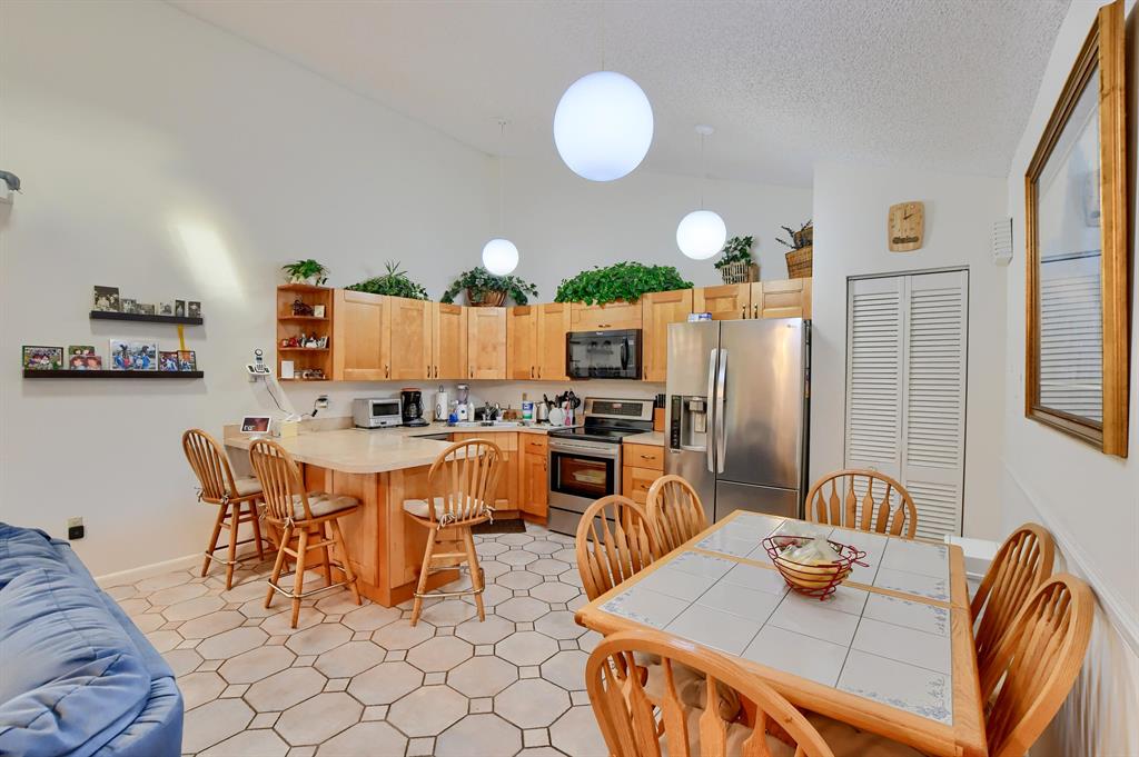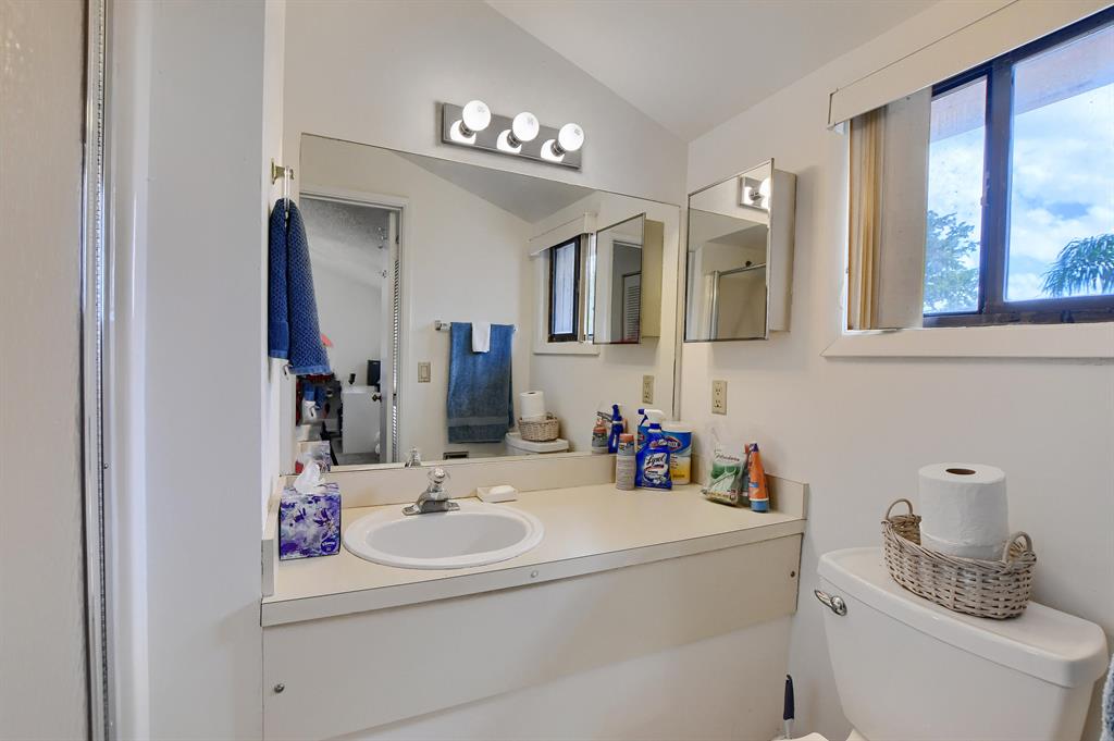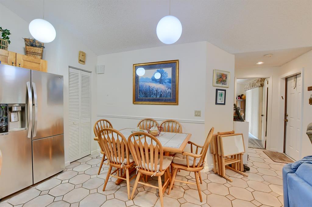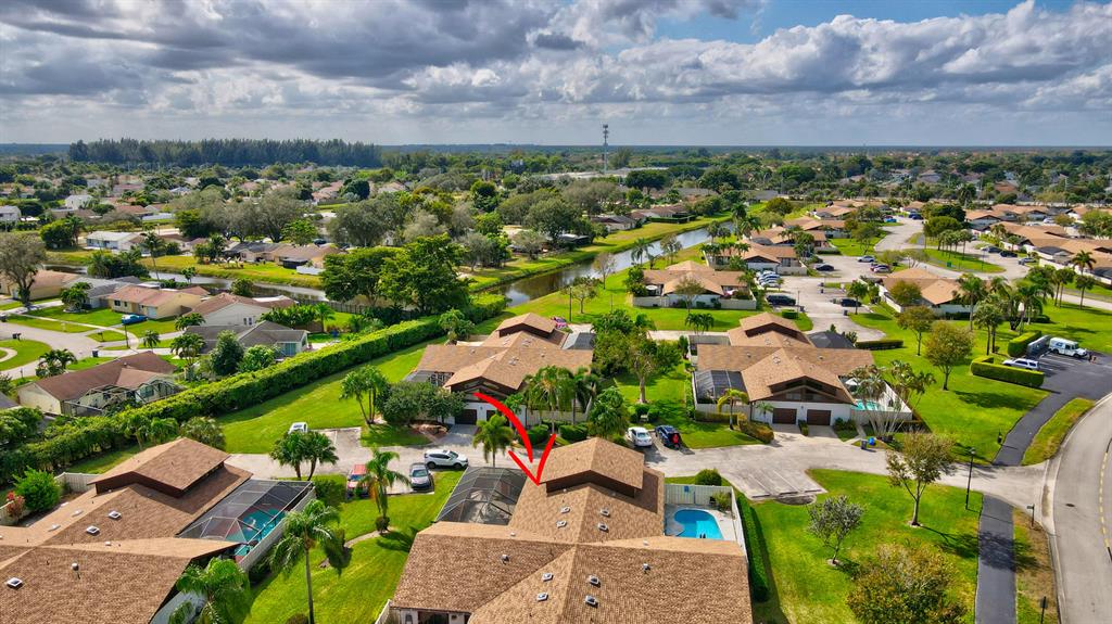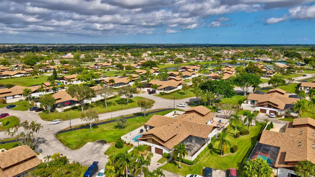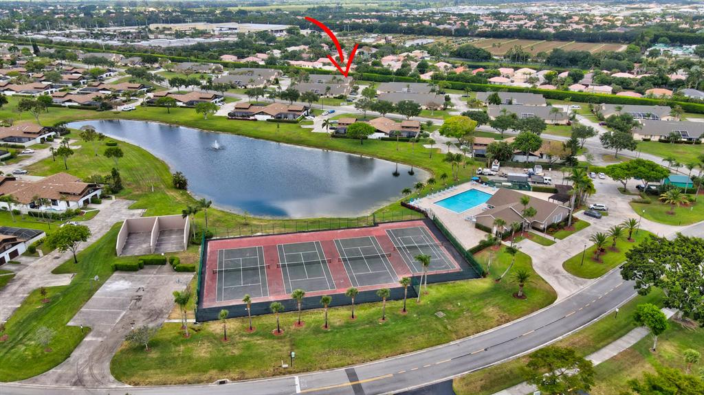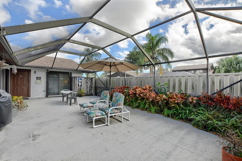 Boca Gardens Azalea model with updated kitchen cabinets, large fenced, screened patio, accordion-style storm shutters, new roof in 2022, exterior painted 2022, replaced entry doors, 2 bedrooms, 2 and 1/2 baths on main floor and 3rd bedroom and 3rd bath upstairs. Boca Gardens maintenance includes insurance on building, painting exterior, roof, lawn cutting & trimming exterior plantings, community clubhouse with fitness center and party room, 3 swimming pools, tennis and handball courts and playground (right across the street).