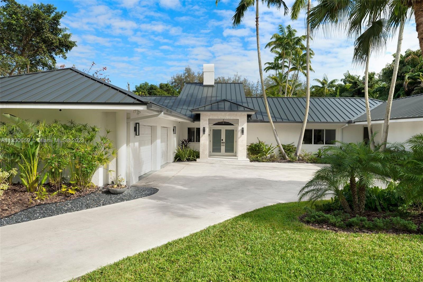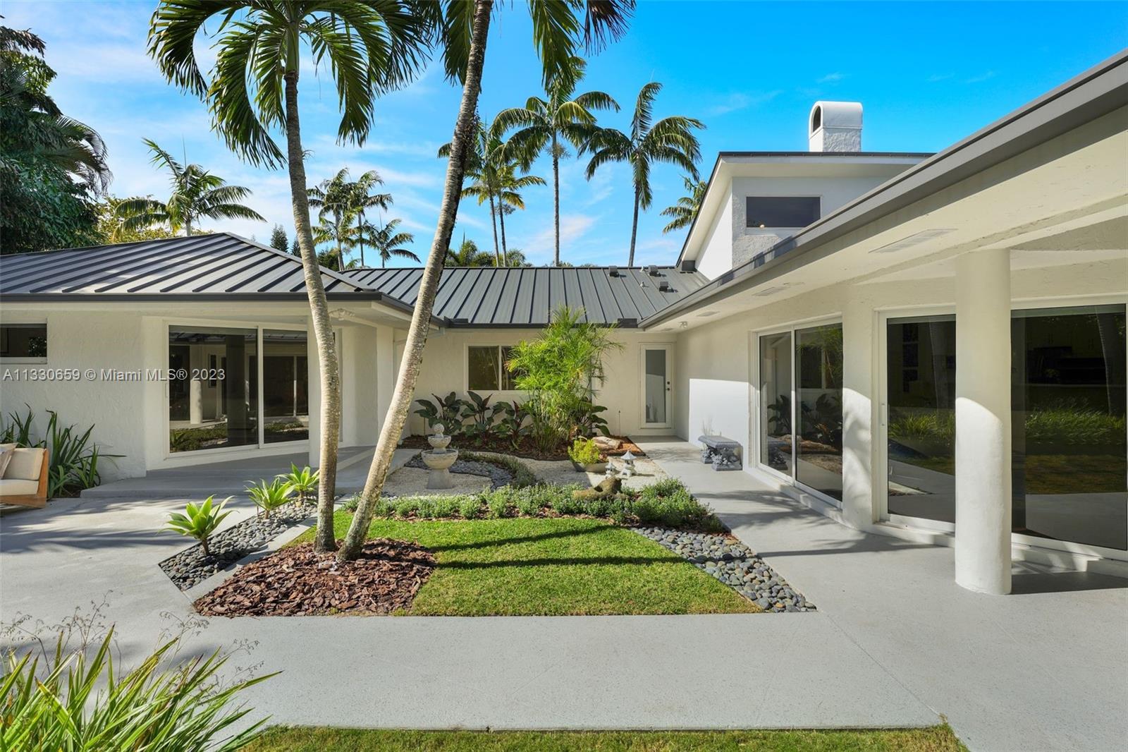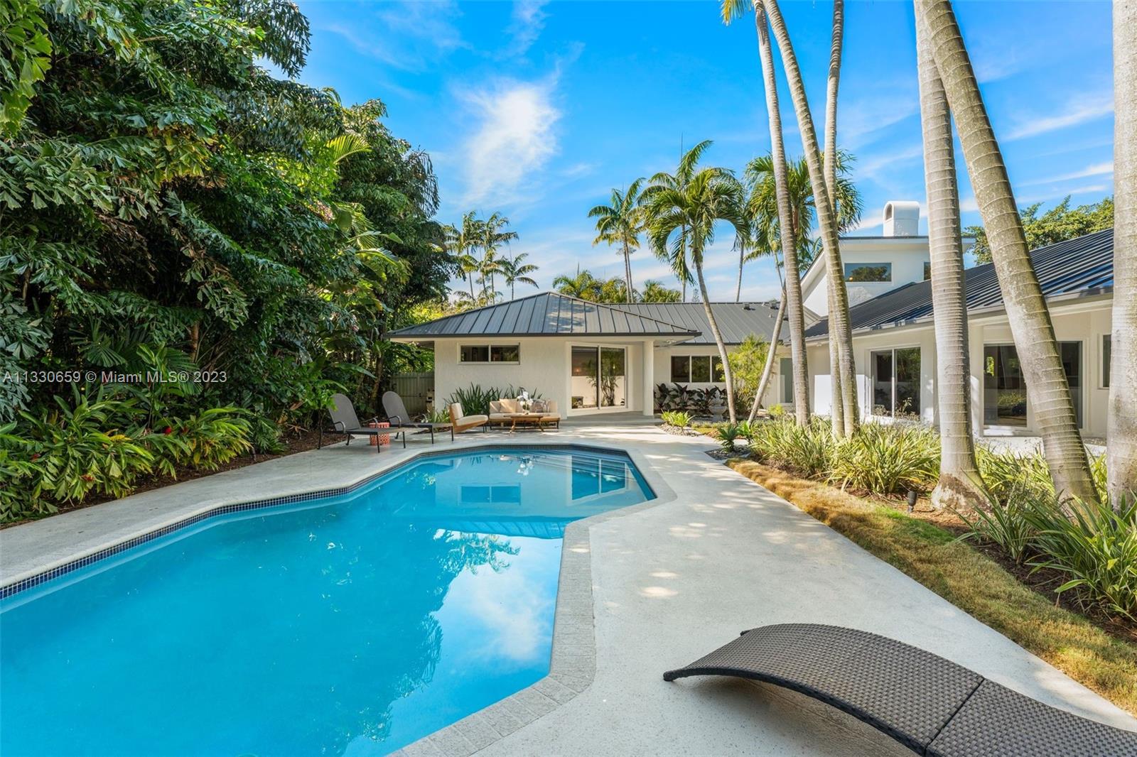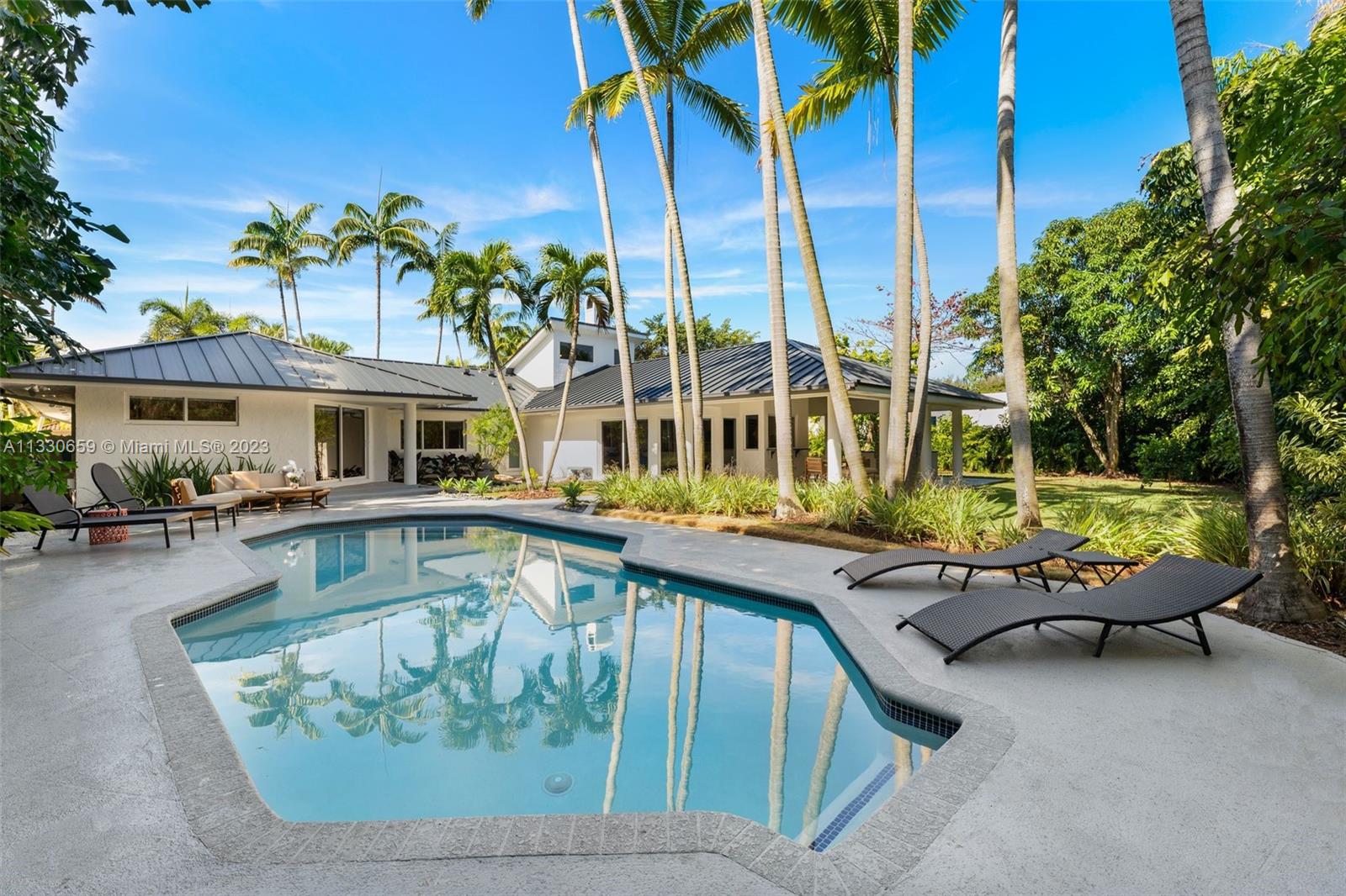 Stunning and sophisticated home located on a quiet street of Pinecrest. Extensive 2021 renovations, this home sits on a 20,000 SF lot offering privacy, tranquility, and luxury with a lush tropical patio & pool area, zen garden and fruit trees. Spacious 5 bed, 4.5 bath home with open floor plan, high ceilings and tons of natural light. Living & dining all open & overlooking the lovely pool & deck that was newly resurfaced, perfect for those that like to entertain. Additionally, home features a modern kitchen,new appliances,cabinets & quartz counters;wine cooler/bar, summer kitchen, wood floors; new impact windows/doors; all new wifi controlled AC units, new metal roof & a pristine 3-car garage. Excellent location close to several parks & top private schools.Perfect for raising a family!