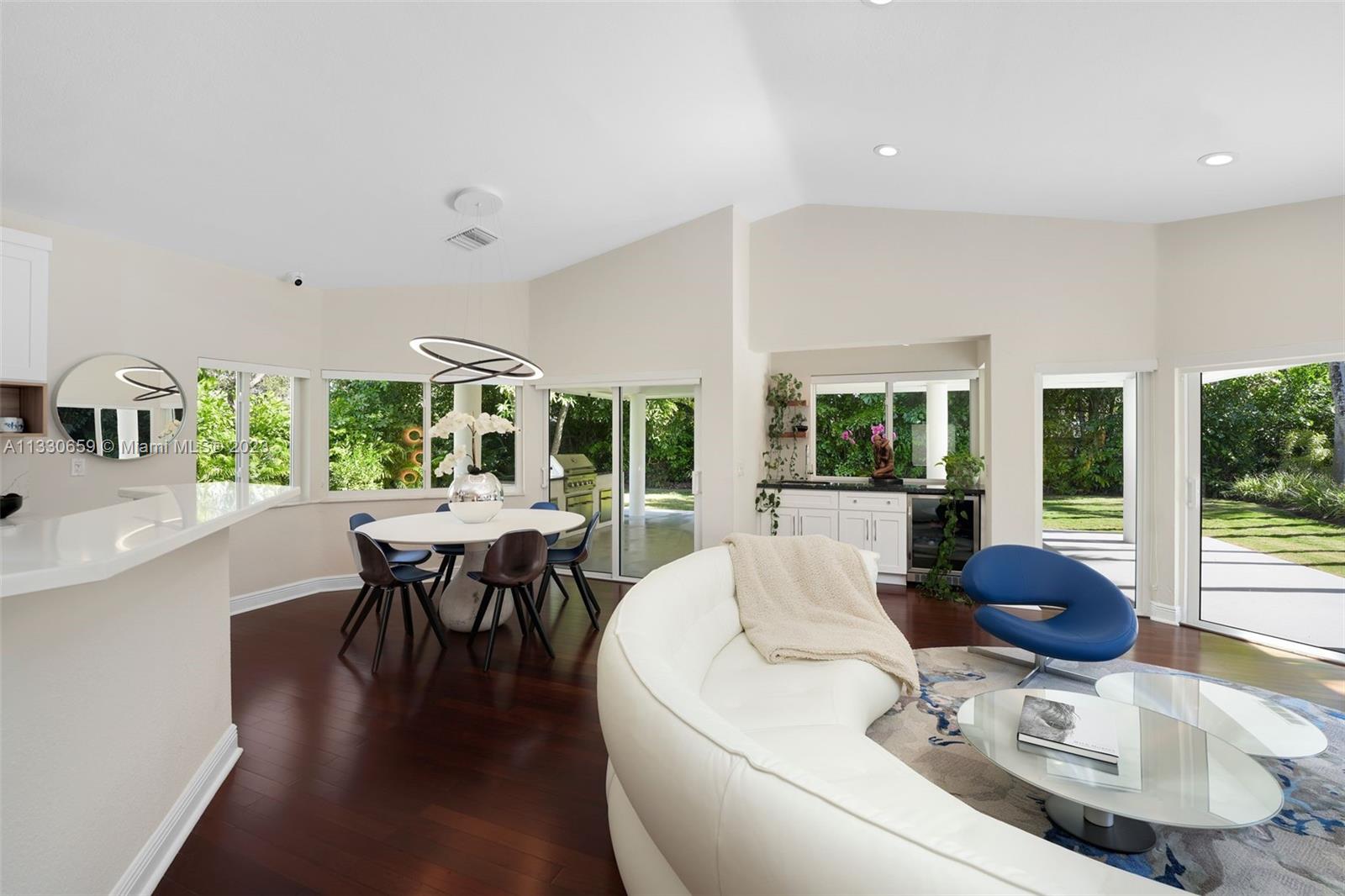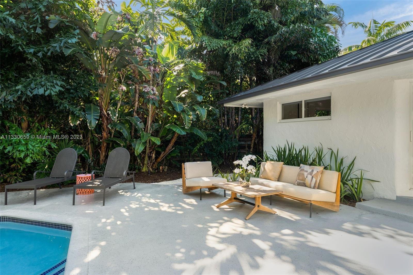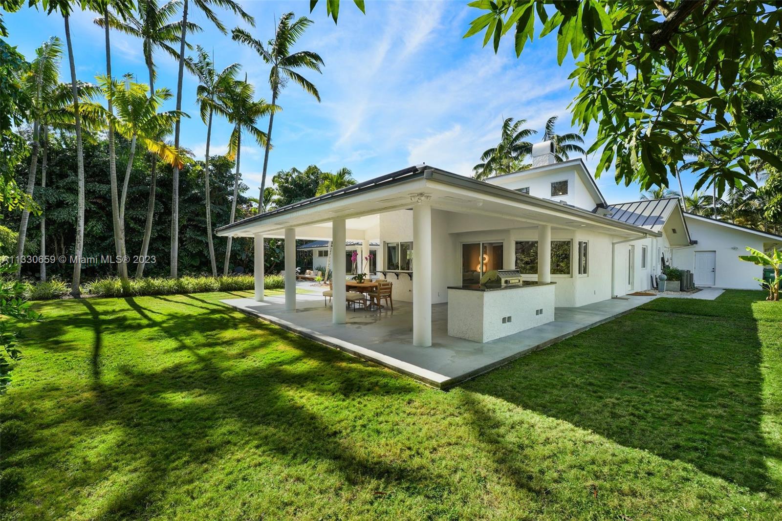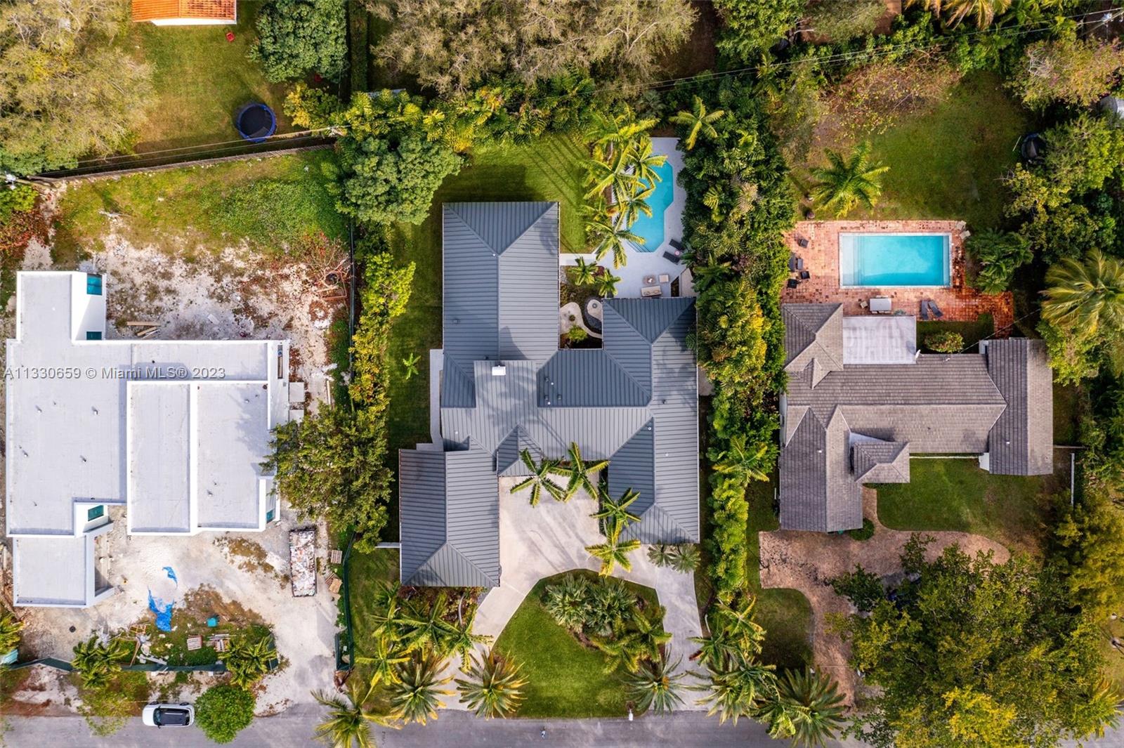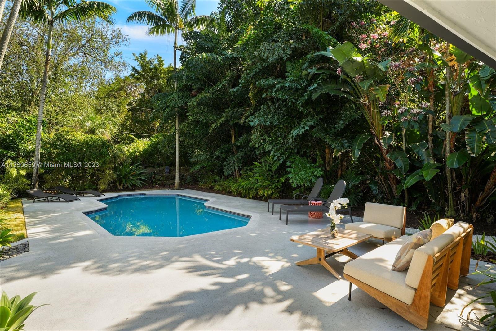 Stunning and sophisticated home located on a quiet street of Pinecrest. Extensive 2021 renovations, this home sits on a 20,000 SF lot offering privacy, tranquility, and luxury with a lush tropical patio & pool area, zen garden and fruit trees. Spacious 5 bed, 4.5 bath home with open floor plan, high ceilings and tons of natural light. Living & dining all open & overlooking the lovely pool & deck that was newly resurfaced, perfect for those that like to entertain. Additionally, home features a modern kitchen,new appliances,cabinets & quartz counters;wine cooler/bar, summer kitchen, wood floors; new impact windows/doors; all new wifi controlled AC units, new metal roof & a pristine 3-car garage. Excellent location close to several parks & top private schools.Perfect for raising a family!