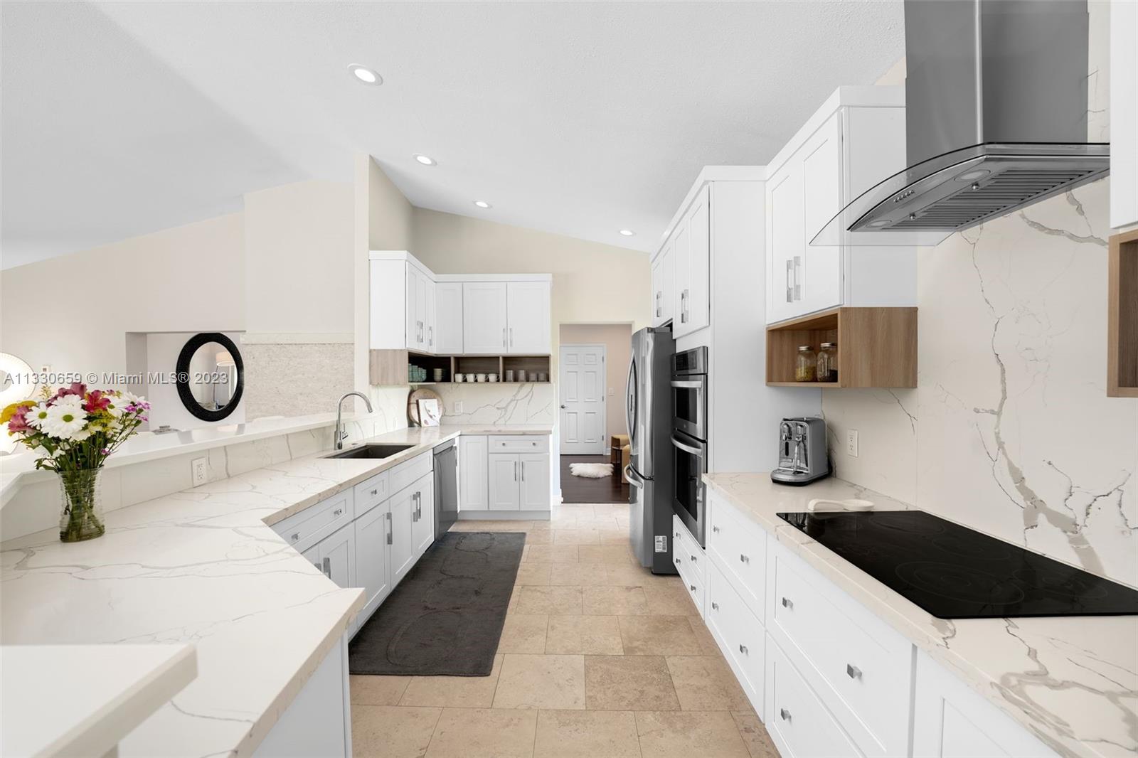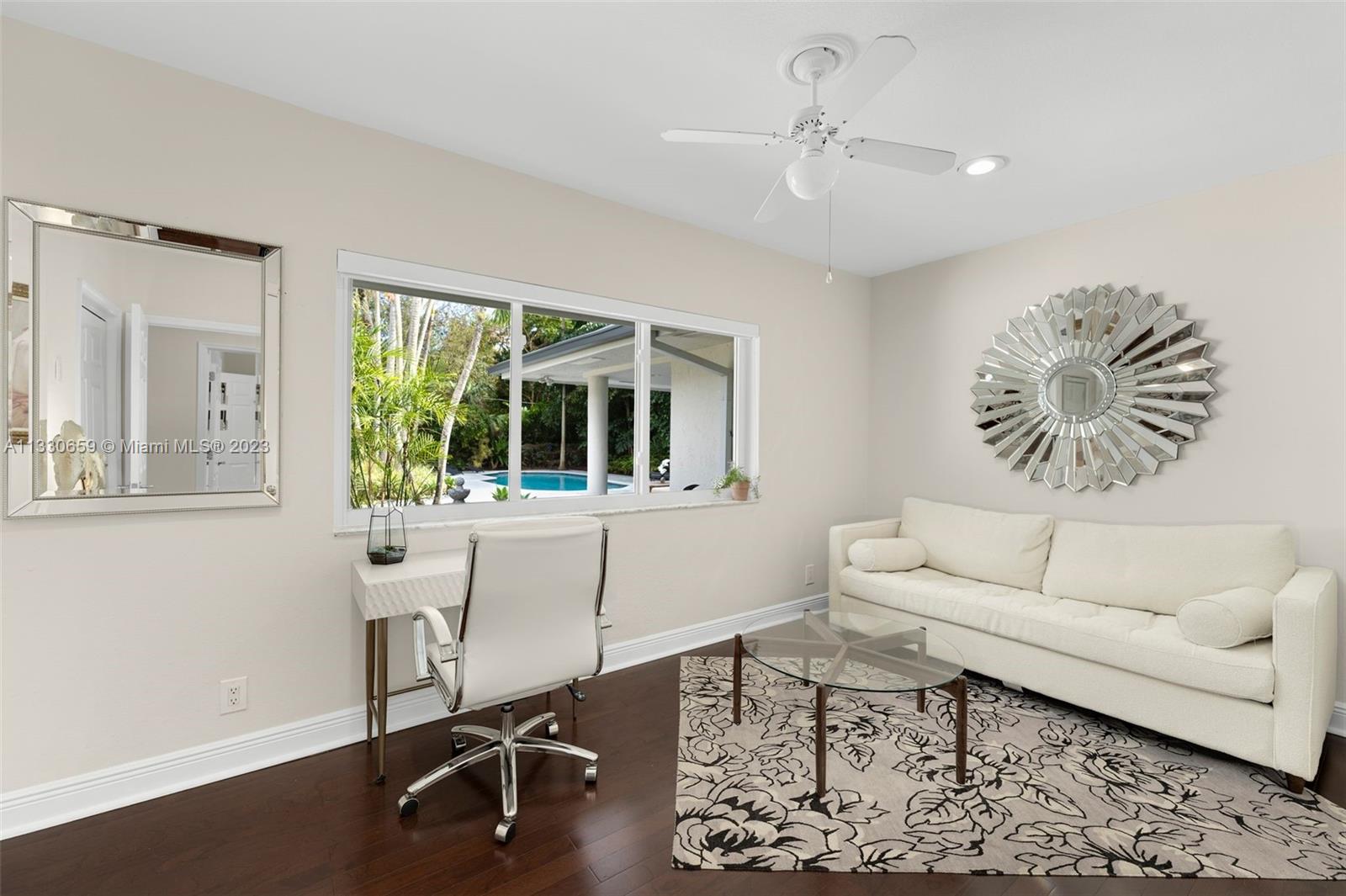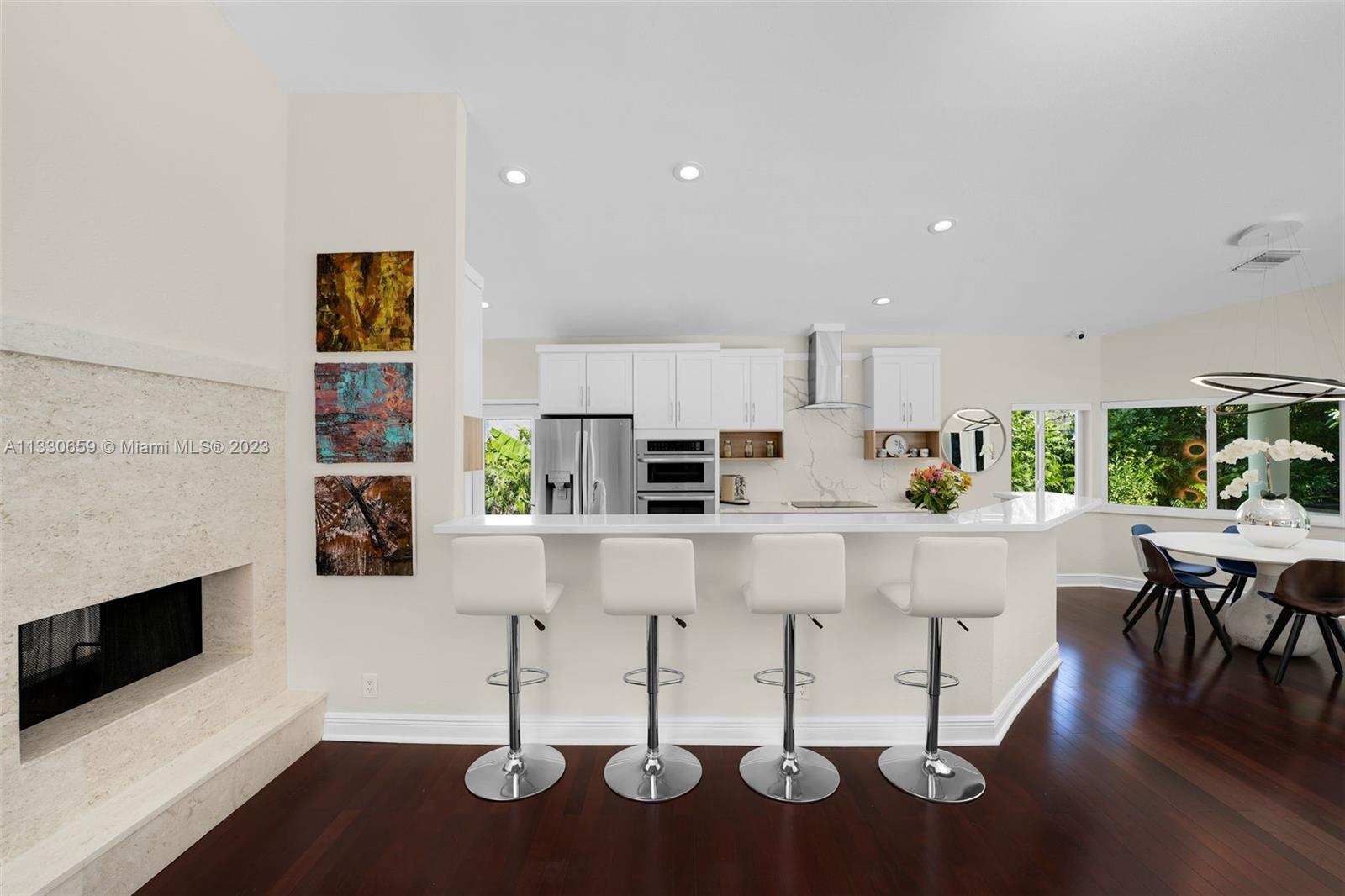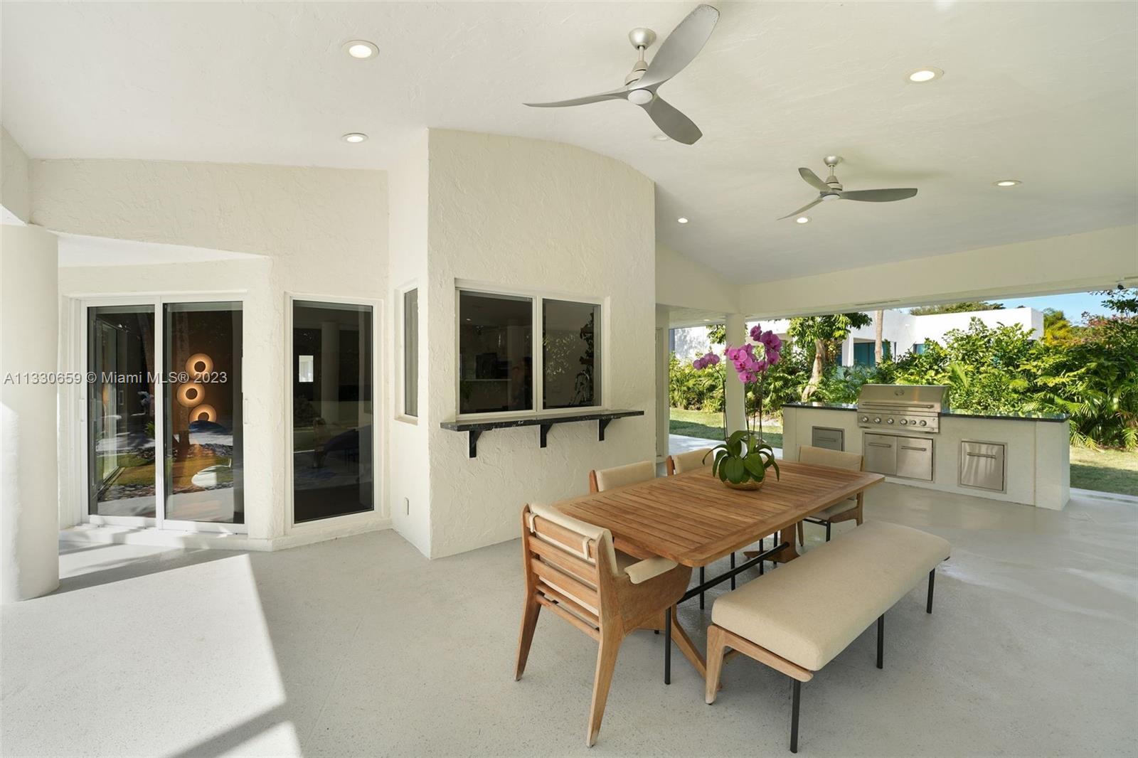 Stunning and sophisticated home located on a quiet street of Pinecrest. Extensive 2021 renovations, this home sits on a 20,000 SF lot offering privacy, tranquility, and luxury with a lush tropical patio & pool area, zen garden and fruit trees. Spacious 5 bed, 4.5 bath home with open floor plan, high ceilings and tons of natural light. Living & dining all open & overlooking the lovely pool & deck that was newly resurfaced, perfect for those that like to entertain. Additionally, home features a modern kitchen,new appliances,cabinets & quartz counters;wine cooler/bar, summer kitchen, wood floors; new impact windows/doors; all new wifi controlled AC units, new metal roof & a pristine 3-car garage. Excellent location close to several parks & top private schools.Perfect for raising a family!