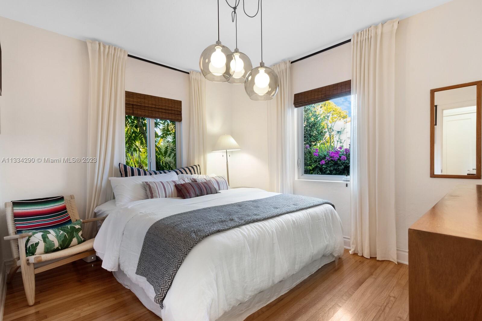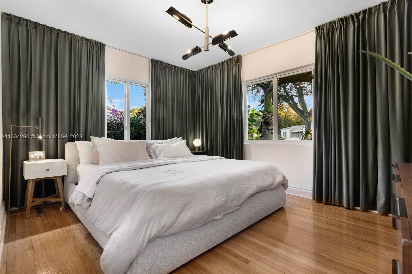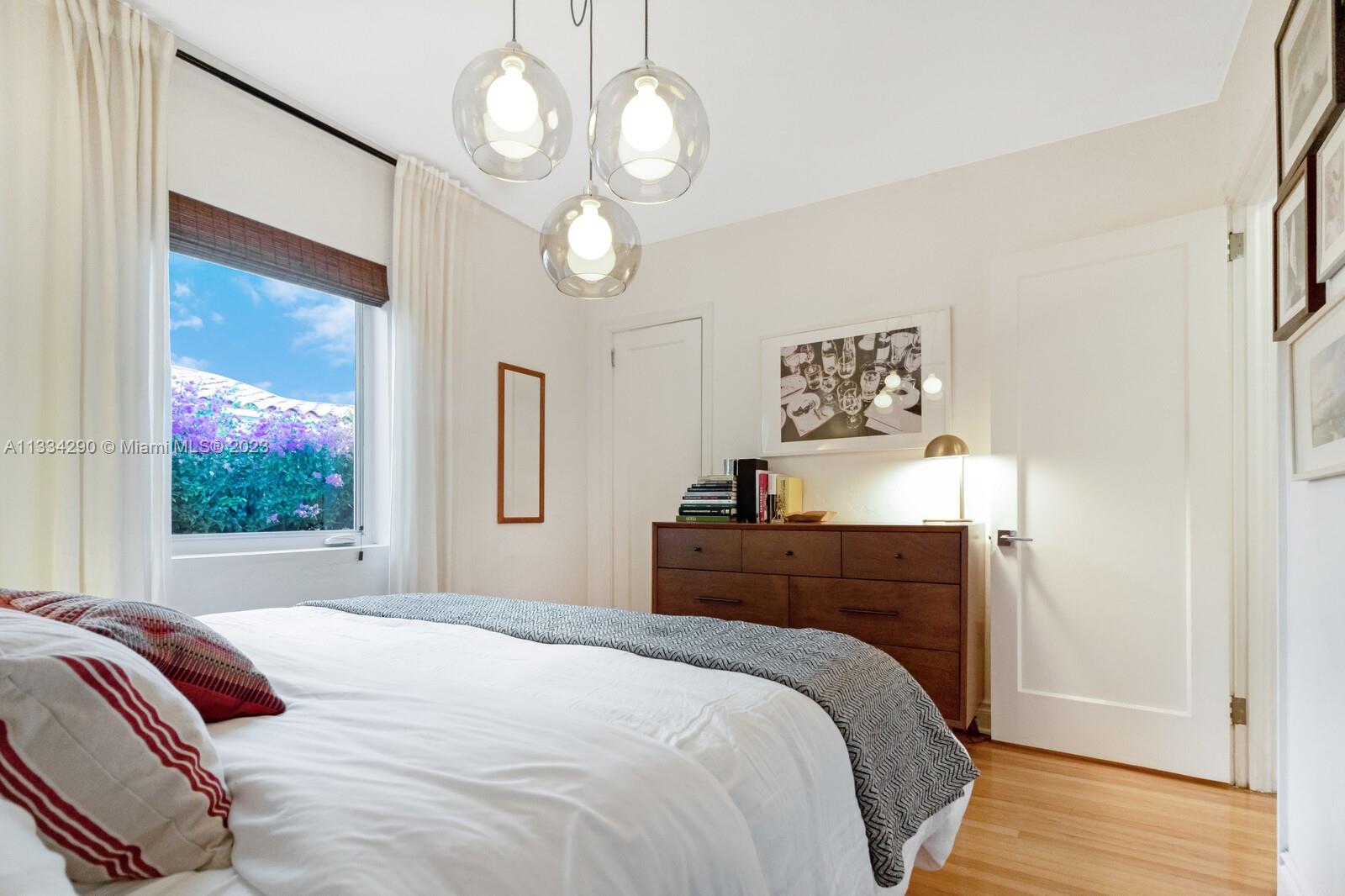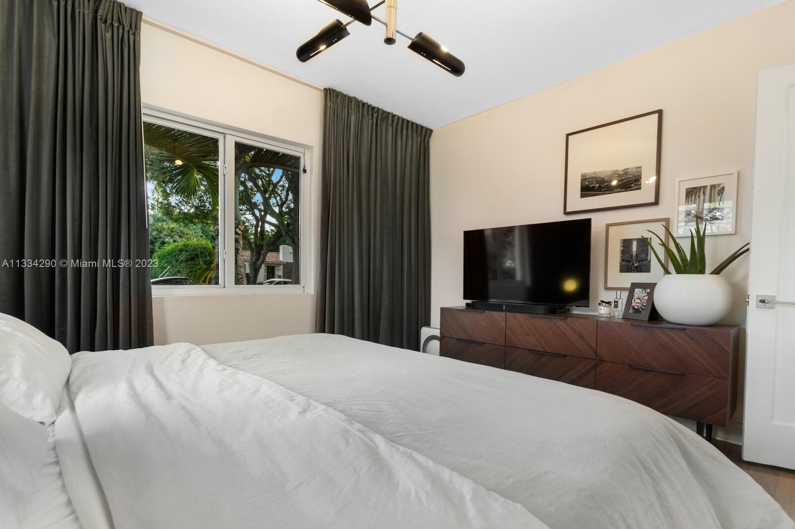 Artfully updated classic Miami Shores home with 2BR plus den & attached garage with laundry on spacious lot with room for a pool. Newly updated kitchen & butler pantry with custom cabinetry to maximize space, specialty cesarstone top, new appliances & 150 bottle wine refrigerator included in the sale. Spa like bathroom with carrera marble & custom teak vanity. Professionally placed lighting throughout with upgraded Lutron dimmers. Tranquil, private backyard with mature lush landscaping. Elevated deck with living area & dining over pavers with ample green space. Updated HVAC, electrical plumbing, new septic, Hurricane Windows & Doors. Move in ready with true 1 car garage plus circular driveway.