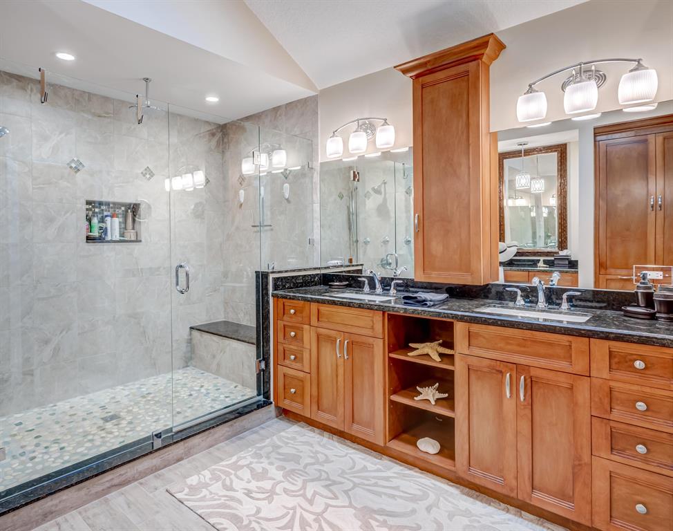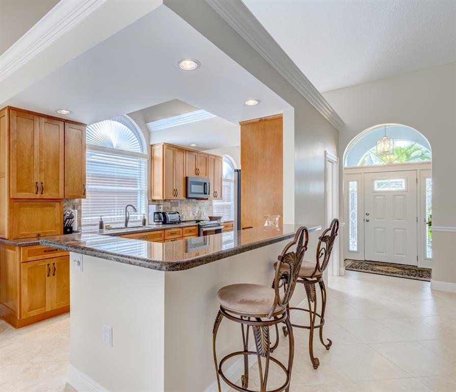 One of the most beautiful Bear Lakes views presented this season. Warm and inviting home built by Burg & DiVosta with coveted Lakes Course views at the Bear Lakes Country Club- 5th/6th holes with long million dollar fairway views.Open concept design with Chef's Kitchen and 42'' real wood, soft-close cabinets, custom back splash, stylish black granite counters, new appliances and custom built Home Office station adjoining space. The Primary Bedroom features a visually stunning ensuite bath, custom vanities, ''Glam Station'', skylight, granite counters, new fixtures and hardware, amazing oversized frameless shower with dual heads, custom built-out walk in closets, new tile, paint and more. Guest Bath features a frameless shower, vanity, custom cabinetry skylight and more...