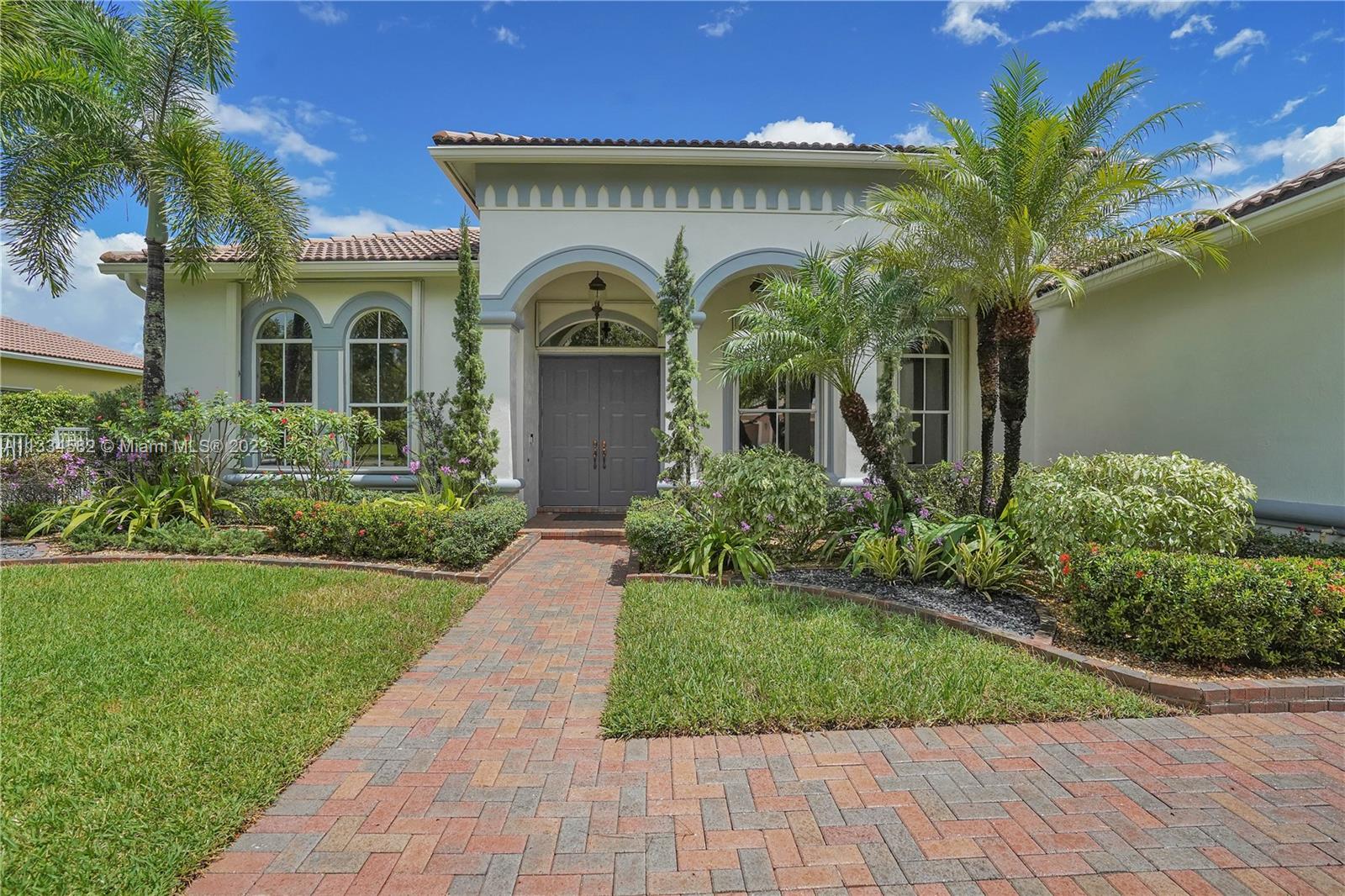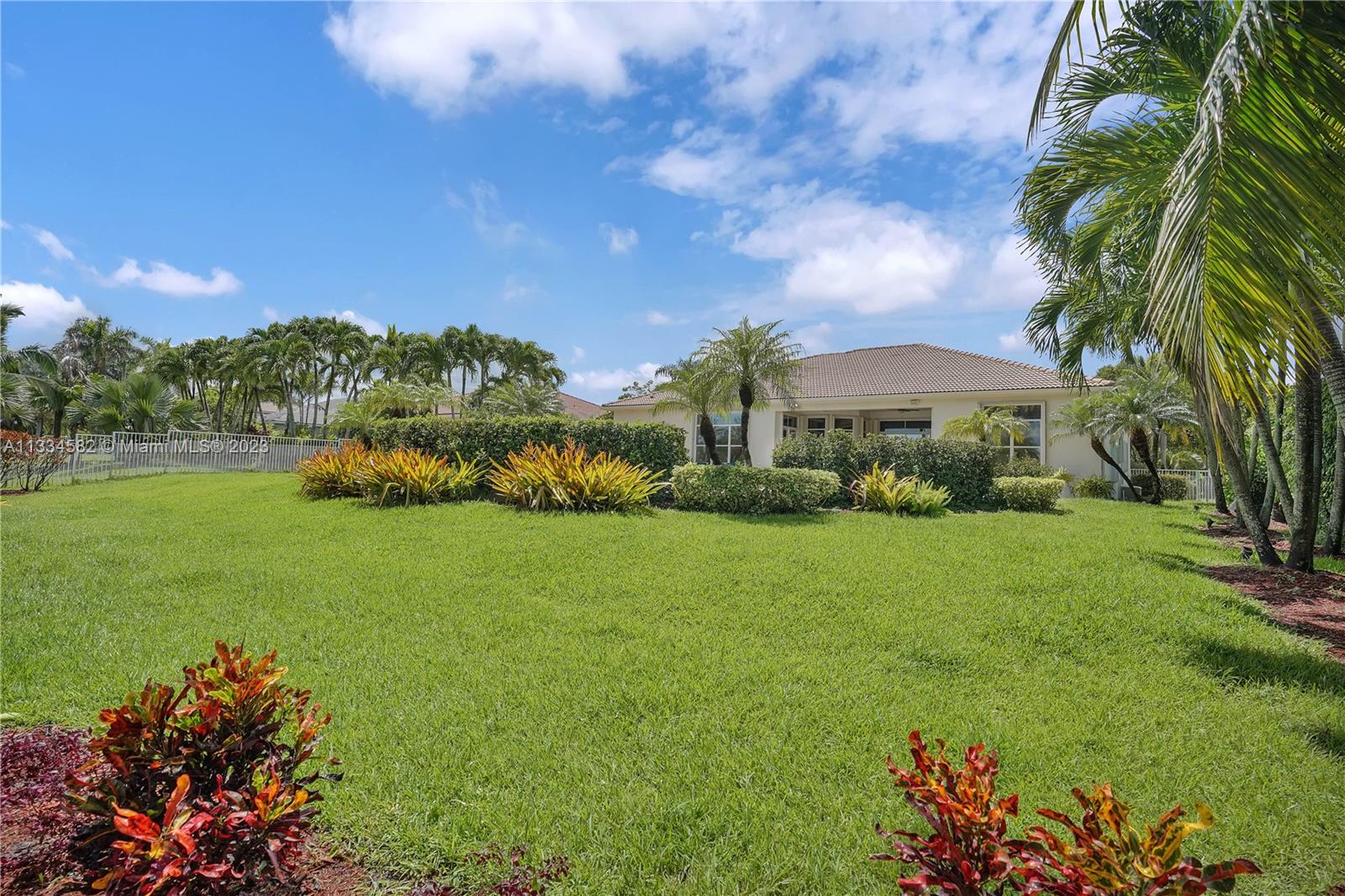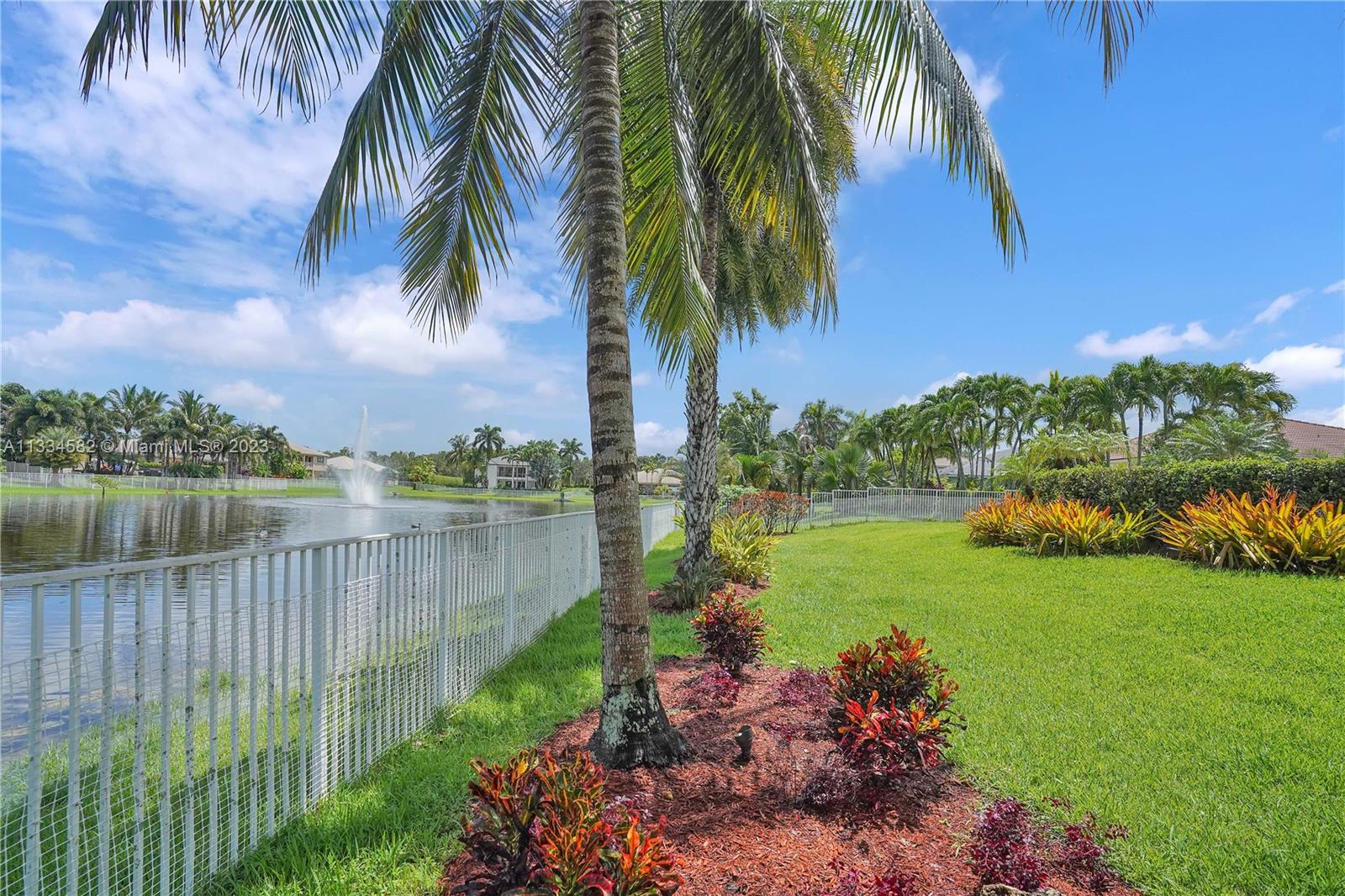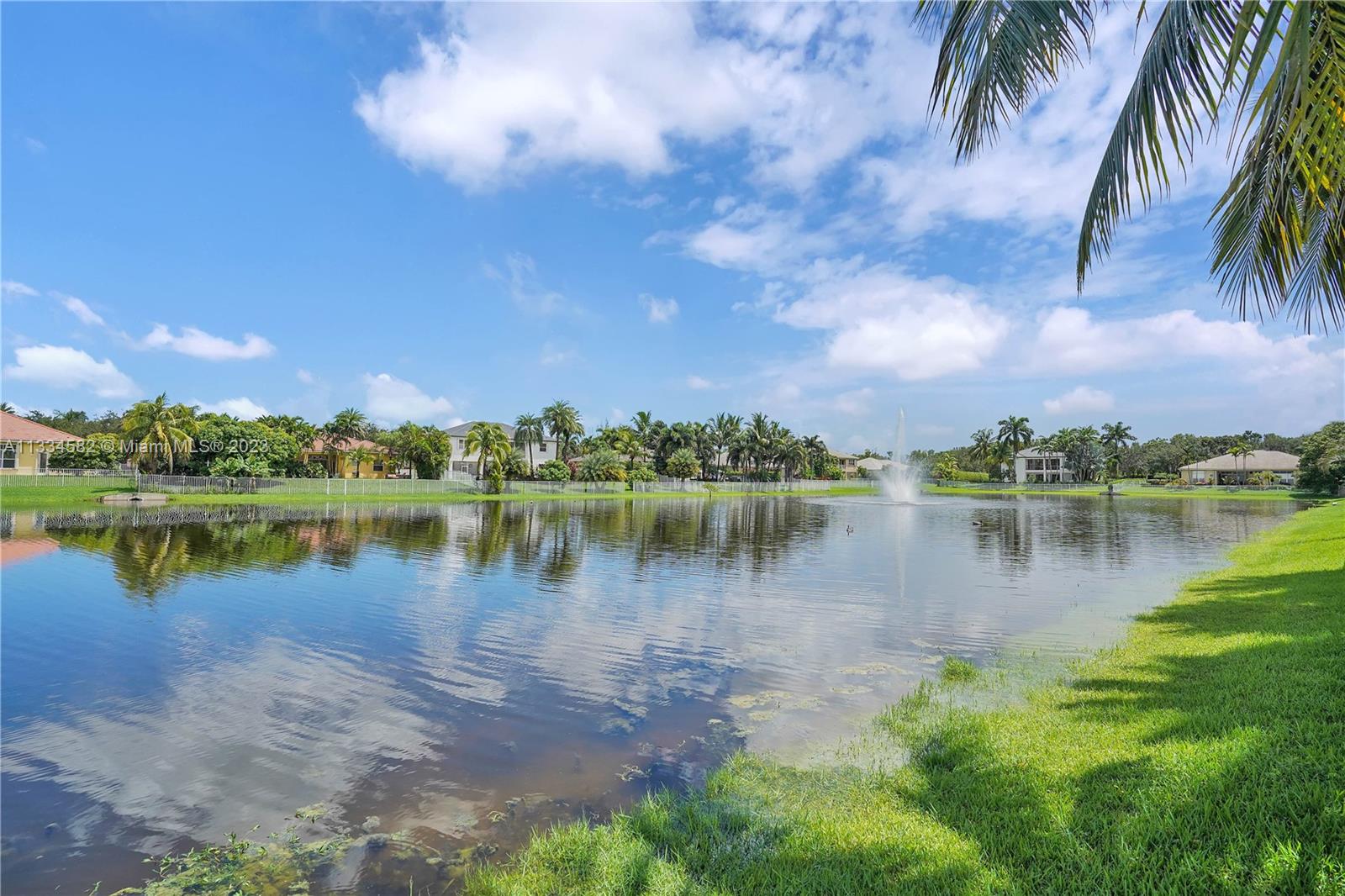 Gorgeous lakefront fountain-view home on oversized lot right in the center of the gated community of Hibbs Grove. Property is situated on 32,000 sq ft of land offering tropical landscape vibes, beautiful sunrise views, extended yard space, outdoor kitchen, covered patio and a fantastic heated saltwater pool. True 5 bed plus office and 3.5 bath this triple split floor plan is open and inviting. The remodeled kitchen overlooks the massive great room and eat in kitchen area with wide views of the beautiful pool, gardens and lake. Home has been freshly painted, new exterior light fixtures and the 3 car garage has upgraded flooring and cabinets for organization. *Per seller, Hibbs Grove community shares the same power grid as the hospital!*