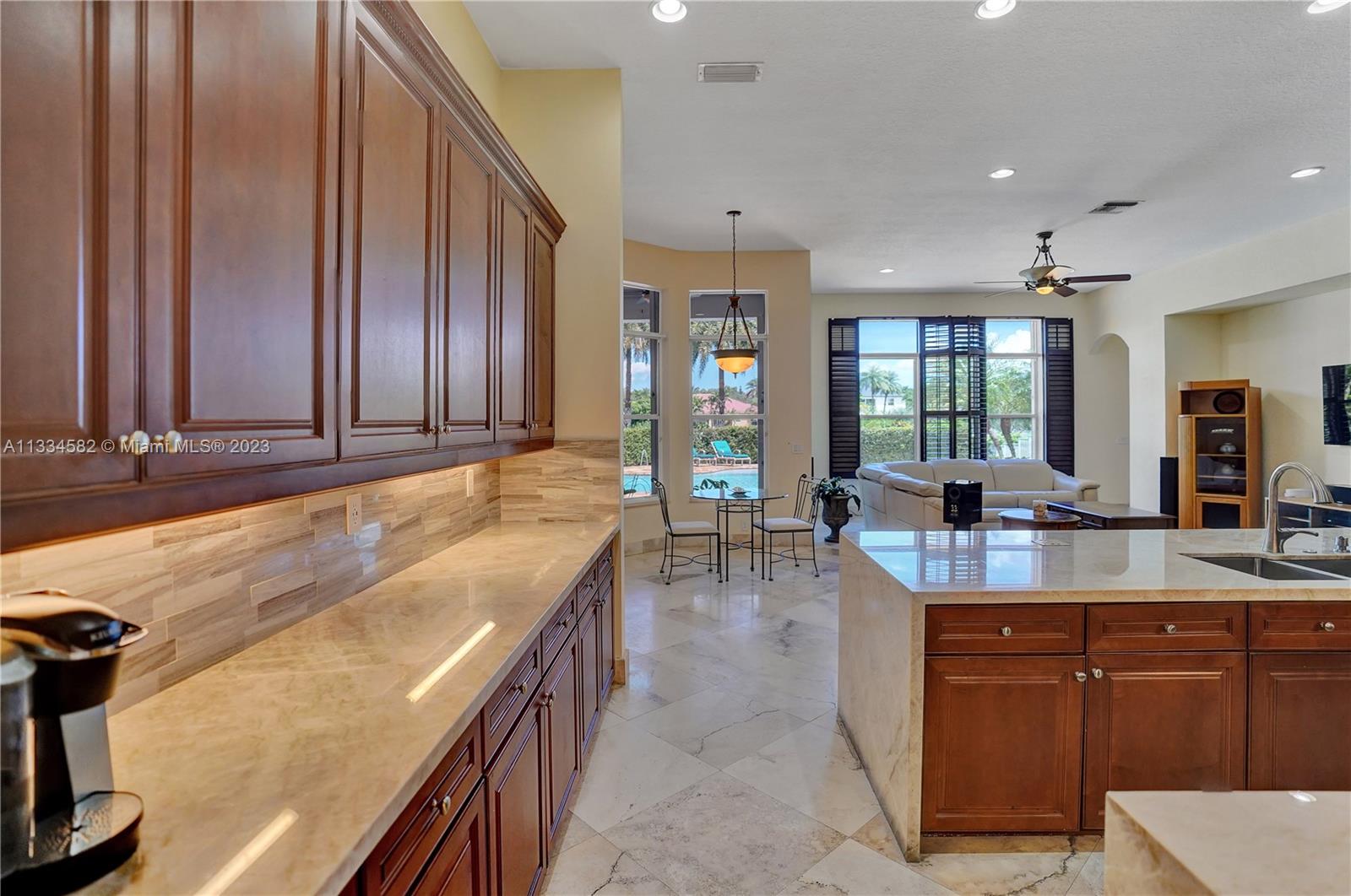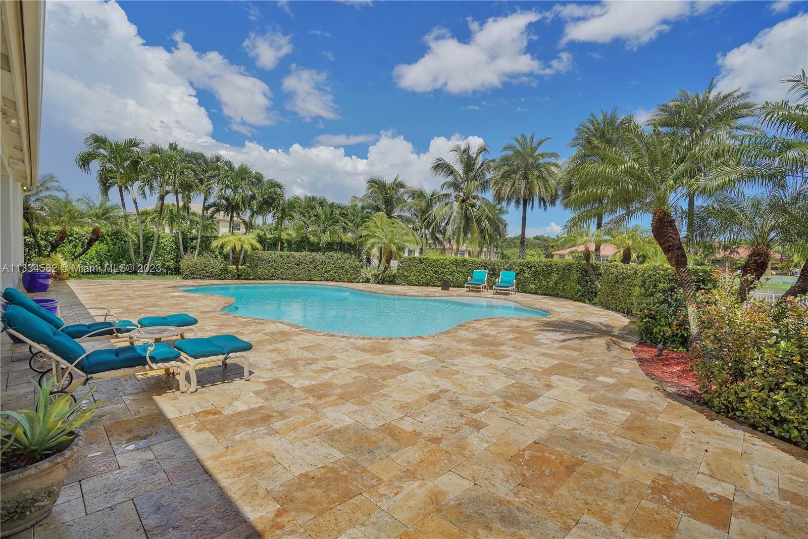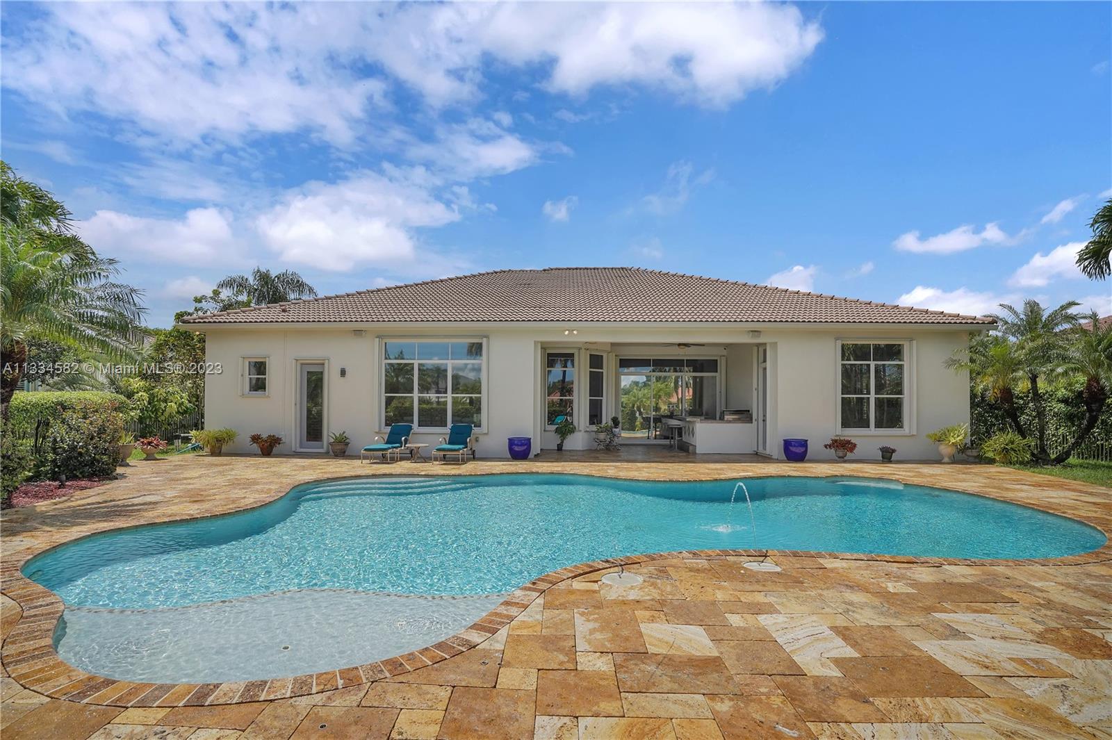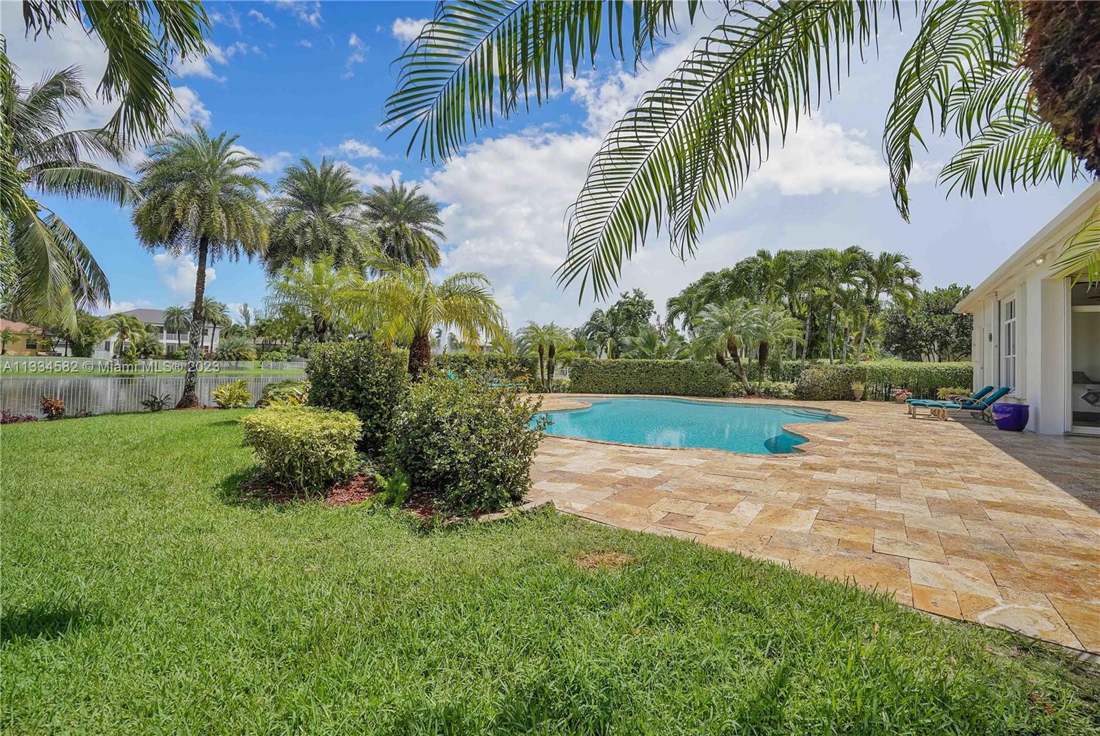 Gorgeous lakefront fountain-view home on oversized lot right in the center of the gated community of Hibbs Grove. Property is situated on 32,000 sq ft of land offering tropical landscape vibes, beautiful sunrise views, extended yard space, outdoor kitchen, covered patio and a fantastic heated saltwater pool. True 5 bed plus office and 3.5 bath this triple split floor plan is open and inviting. The remodeled kitchen overlooks the massive great room and eat in kitchen area with wide views of the beautiful pool, gardens and lake. Home has been freshly painted, new exterior light fixtures and the 3 car garage has upgraded flooring and cabinets for organization. *Per seller, Hibbs Grove community shares the same power grid as the hospital!*