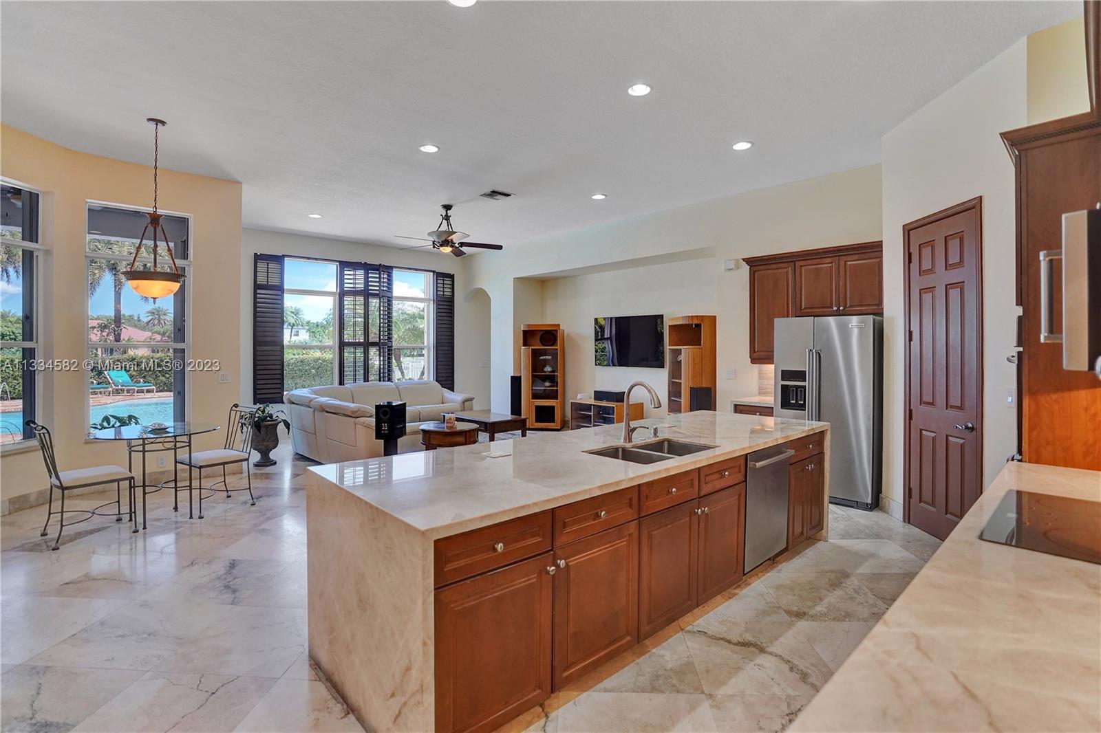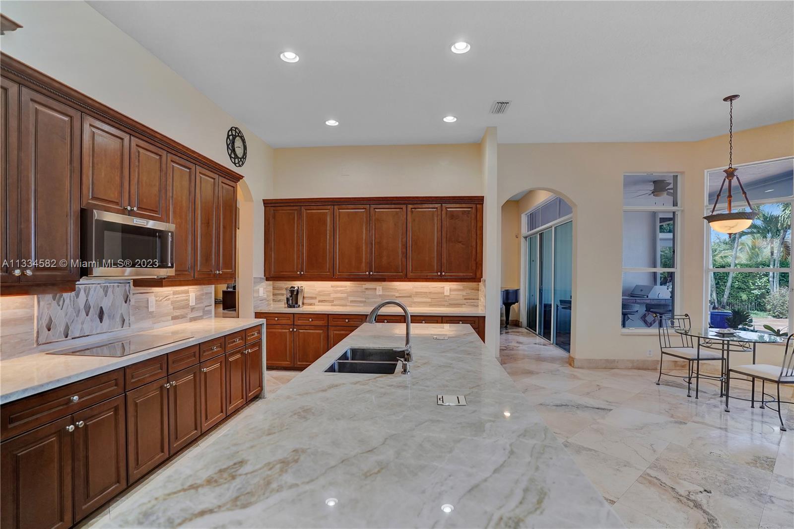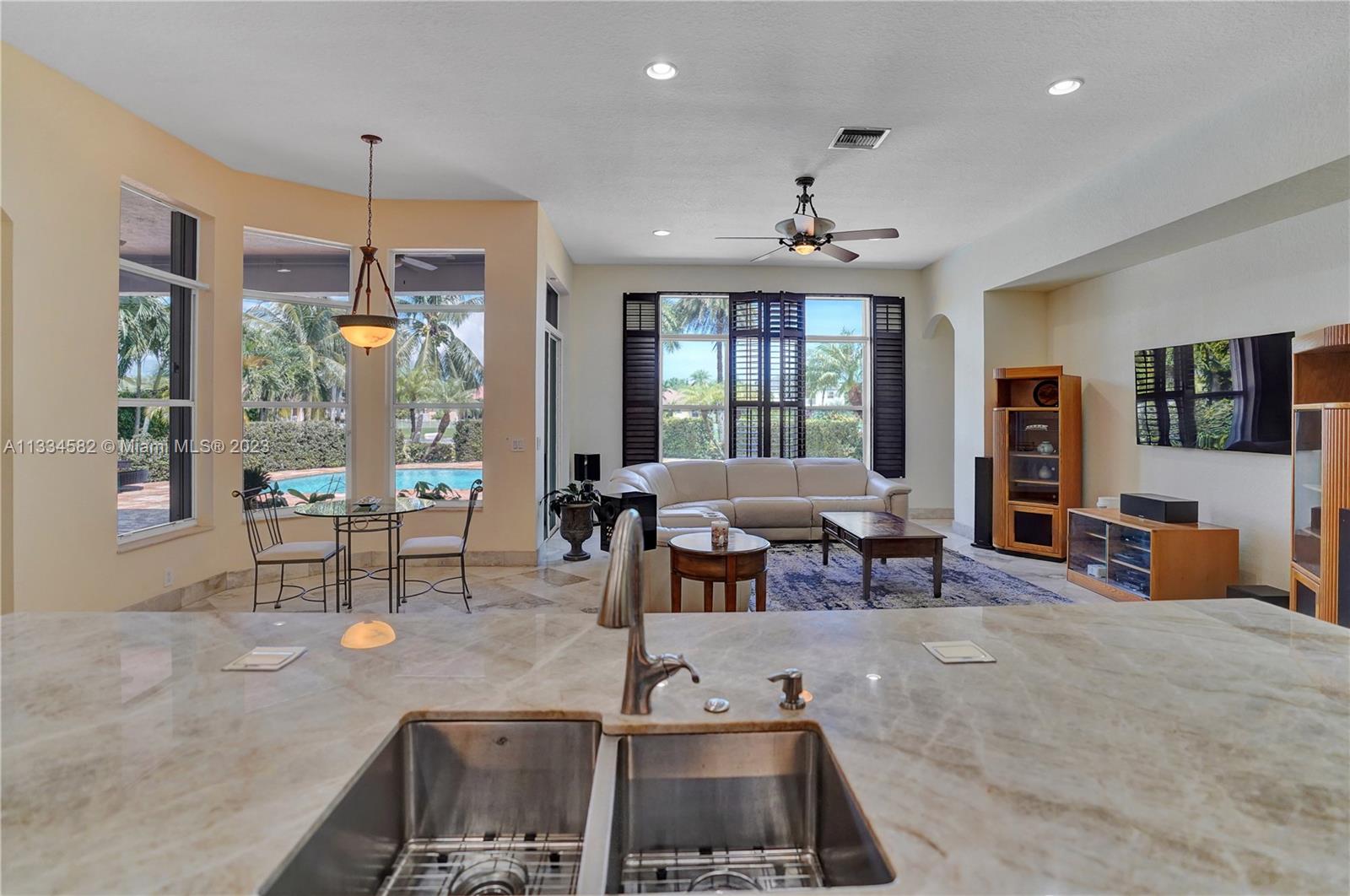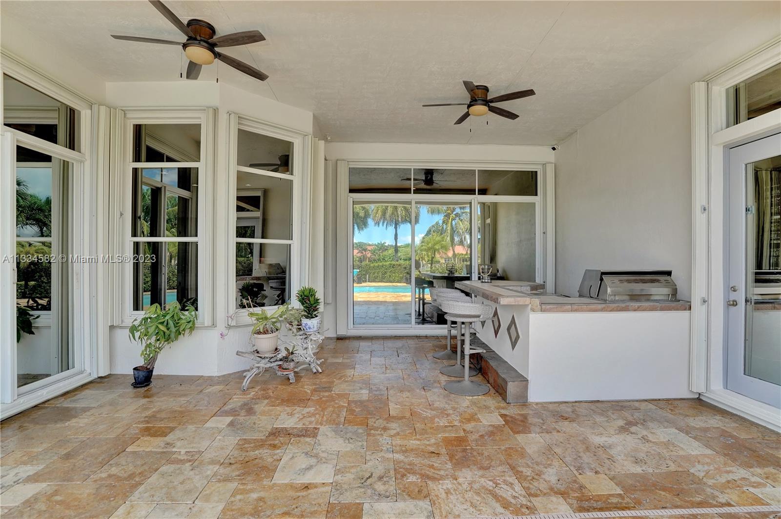 Gorgeous lakefront fountain-view home on oversized lot right in the center of the gated community of Hibbs Grove. Property is situated on 32,000 sq ft of land offering tropical landscape vibes, beautiful sunrise views, extended yard space, outdoor kitchen, covered patio and a fantastic heated saltwater pool. True 5 bed plus office and 3.5 bath this triple split floor plan is open and inviting. The remodeled kitchen overlooks the massive great room and eat in kitchen area with wide views of the beautiful pool, gardens and lake. Home has been freshly painted, new exterior light fixtures and the 3 car garage has upgraded flooring and cabinets for organization. *Per seller, Hibbs Grove community shares the same power grid as the hospital!*