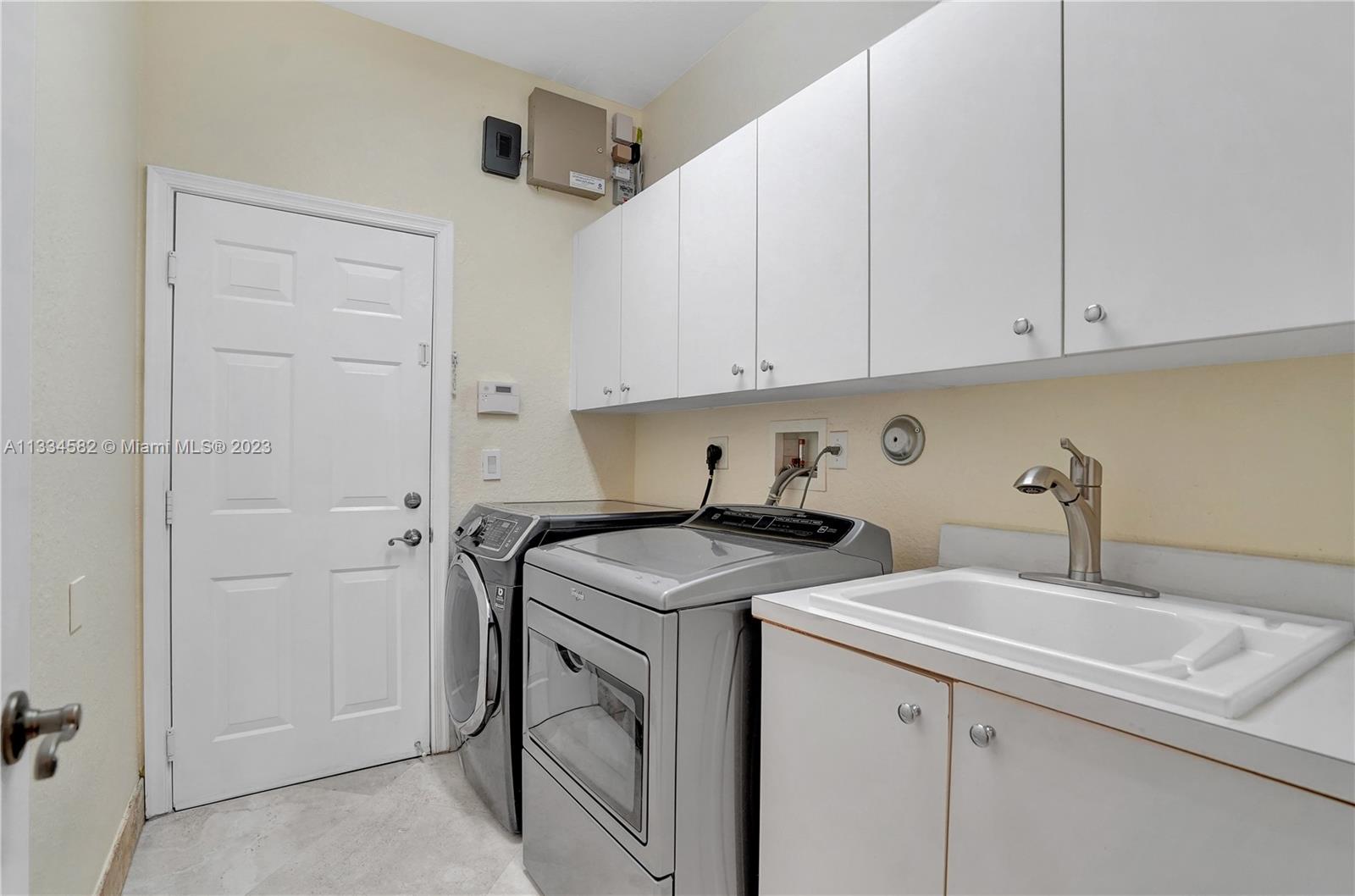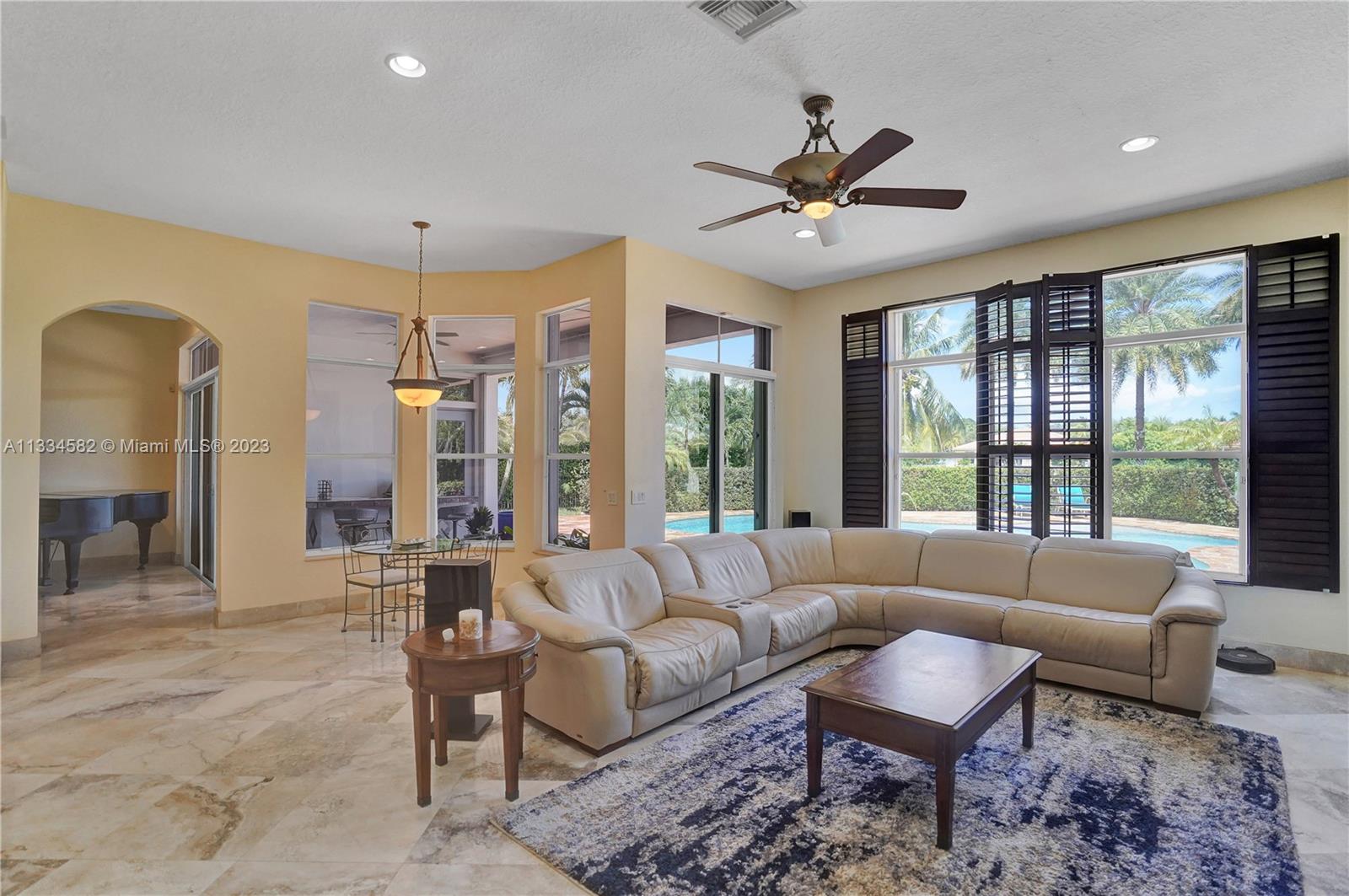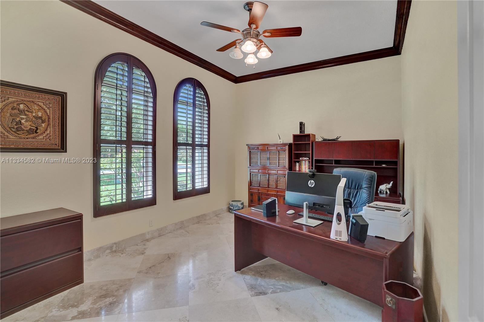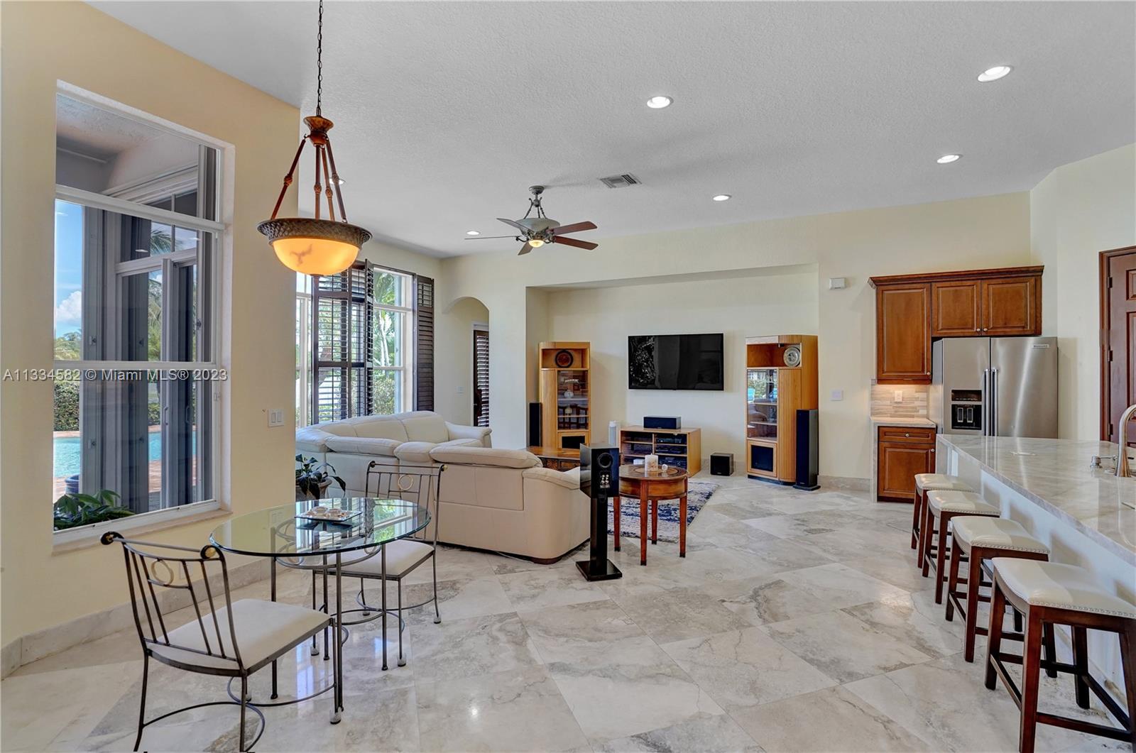 Gorgeous lakefront fountain-view home on oversized lot right in the center of the gated community of Hibbs Grove. Property is situated on 32,000 sq ft of land offering tropical landscape vibes, beautiful sunrise views, extended yard space, outdoor kitchen, covered patio and a fantastic heated saltwater pool. True 5 bed plus office and 3.5 bath this triple split floor plan is open and inviting. The remodeled kitchen overlooks the massive great room and eat in kitchen area with wide views of the beautiful pool, gardens and lake. Home has been freshly painted, new exterior light fixtures and the 3 car garage has upgraded flooring and cabinets for organization. *Per seller, Hibbs Grove community shares the same power grid as the hospital!*