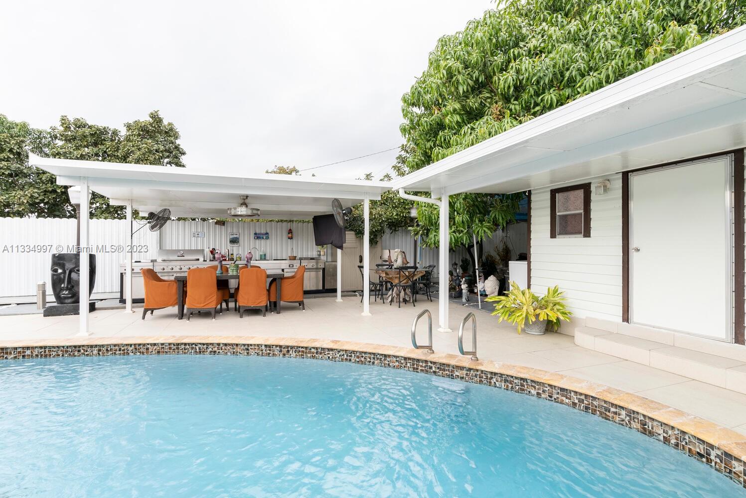 This is the one you have been waiting for! Impeccable 5 bedroom home in a great neighborhood! This property has it all! Featuring a spacious layout with all tile floors! Formal living and dining room, upgraded kitchen with a full array of stainless steel appliances and granite countertops! Glassed porch is complete with kitchen! Gorgeous pool views! A cozy in law suite with two bedrooms completes the compound! Fully fenced yard with plenty of parking. Huge lot! Hurry and make your appointment today! This home will not last!