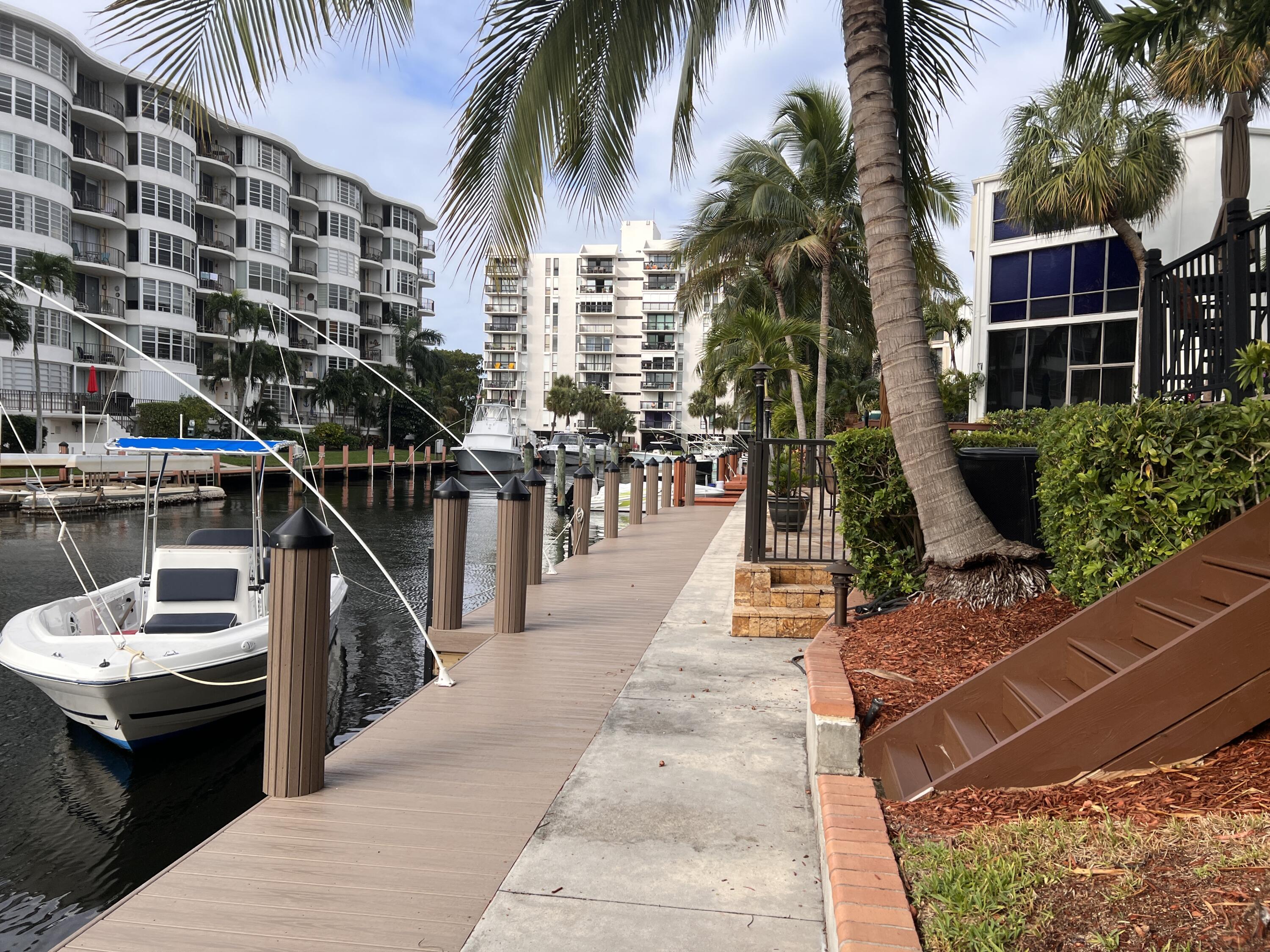 Move In and Boat Ready! Beautiful, multi-level, corner unit townhome. Enjoy your own private (aka personal) deck, a 32-foot assigned dock - NO Fixed Bridges - just steps below, and 2-car garage. This home is architecturally stunning with a modern, well-appointed, bright kitchen which looks out towards the pool and over the living room. Two spacious bedrooms located on the second floor, each featuring updated bathrooms with walk-in showers. The front bedroom has a balcony and room for a sitting area, the second bedroom overlooks the canal. The loft is on the third level and is able to accommodate a queen size bed, plus has an area for an office or another sitting area and a half bath. Kaluz and the Intracoastal Waterway are 0.1 mile away, the Lauderdale By the Sea beach is 0.7 miles away.