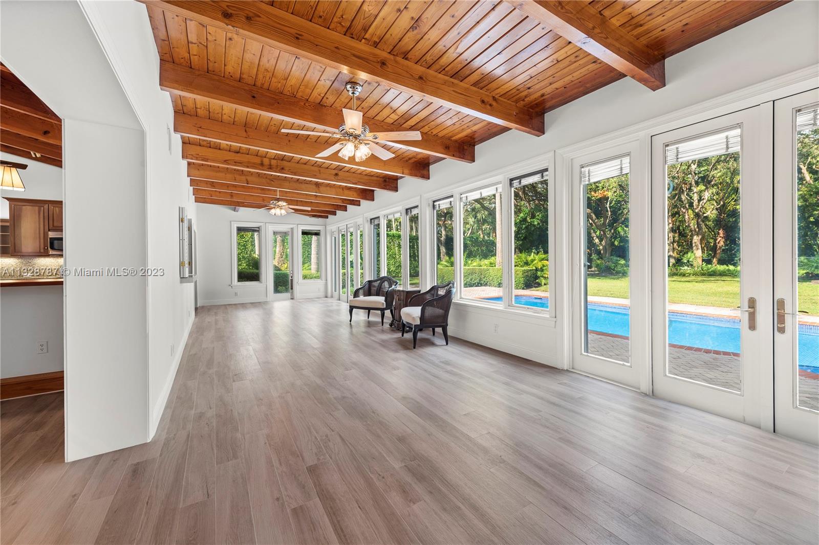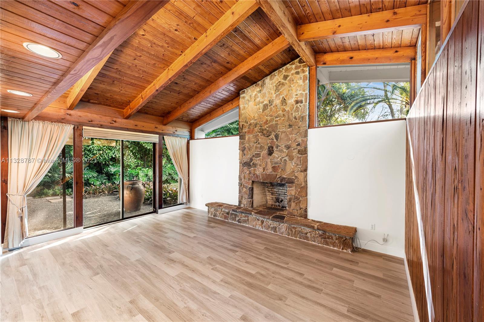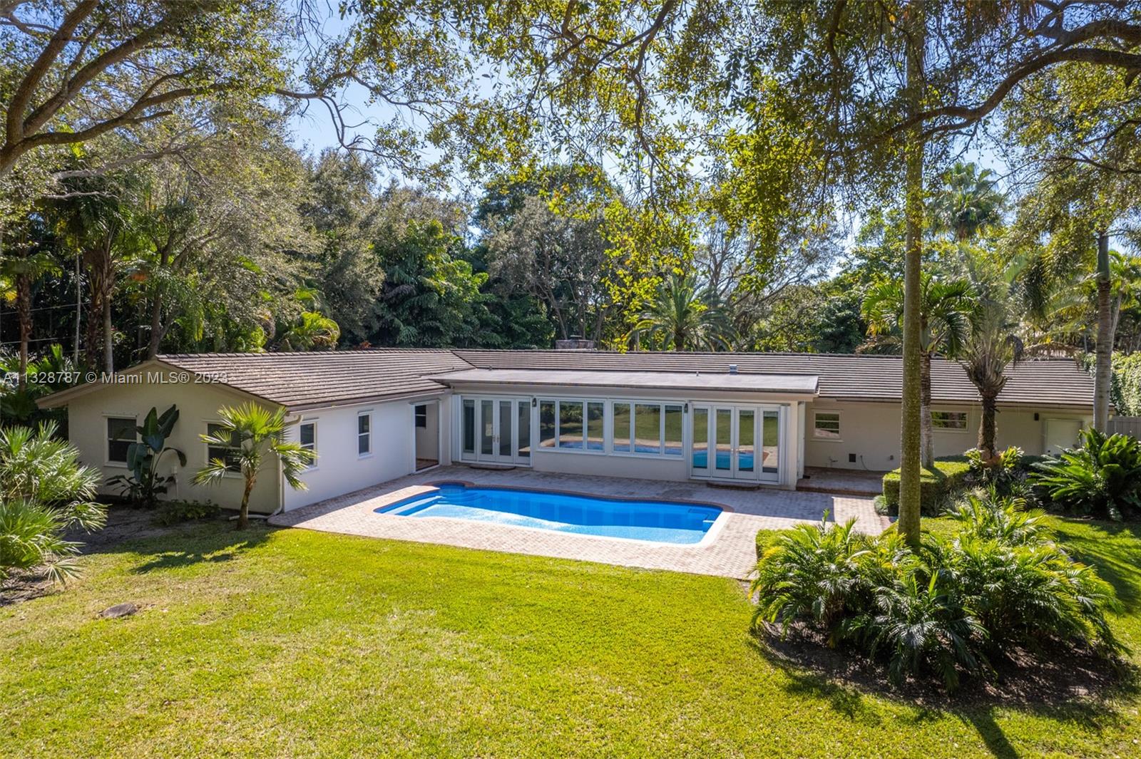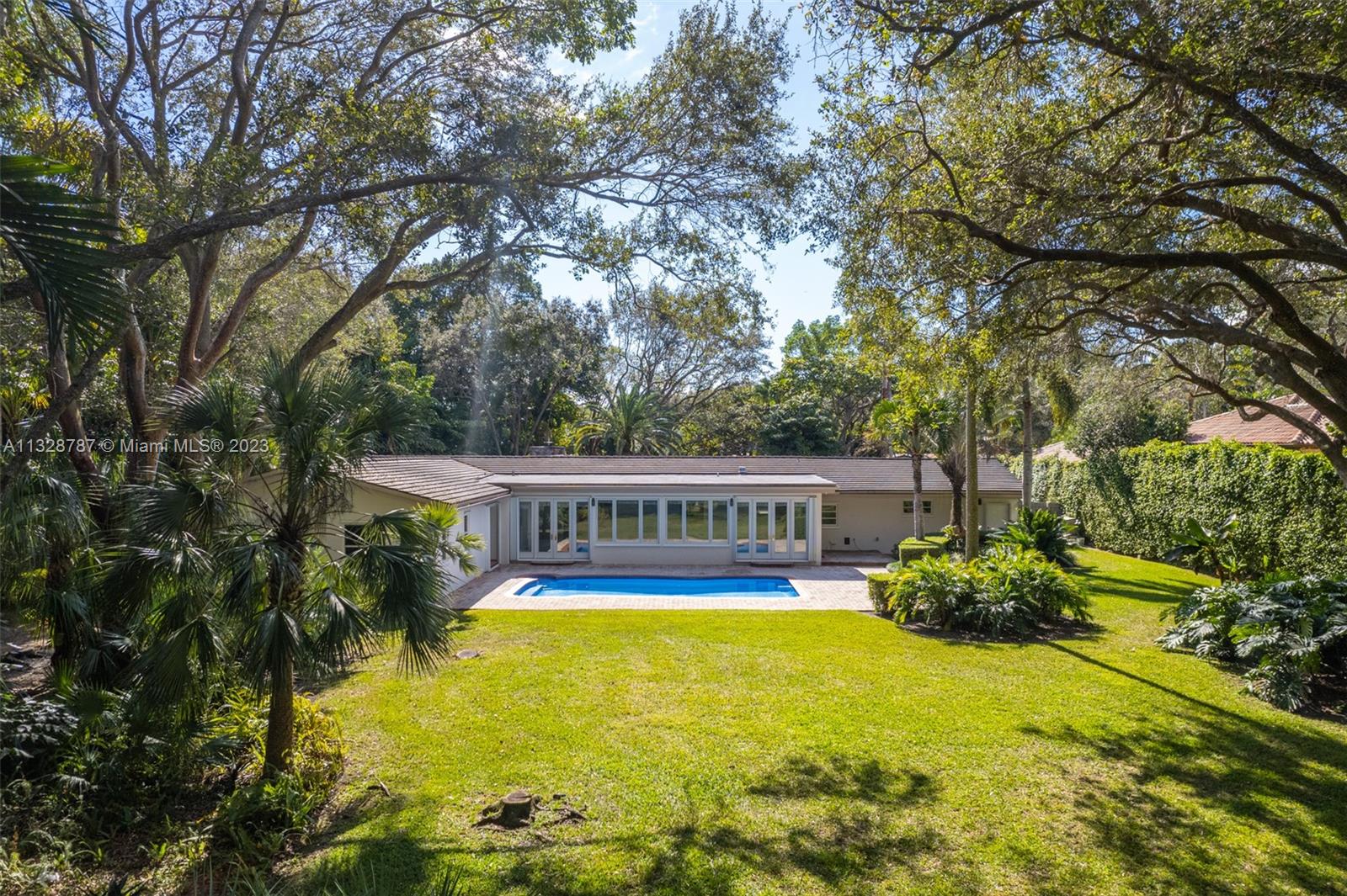 Enjoy living on one of the most coveted North Pinecrest neighborhoods on a quiet cul-de-sac street. Nestled on a lushly landscaped, gorgeous one acre lot, this warm and inviting home features a formal living room, cozy wood burning fireplace, formal dining room and a spacious eat in kitchen. The sun filled, large family room opens to a spectacular tiled pool with a huge back yard ideal for all type of outdoor entertainment/activities. The split plan layout features one wing with a comfortable primary suite, walk in closets, and an updated bathroom, 3 guest bedrooms, and an open office space. The other side of the home features a 5th bedroom/office, a separate laundry room and 2 car garage. Close proximity to top rated schools. Close proximity to top rated schools, shops and restaurants.