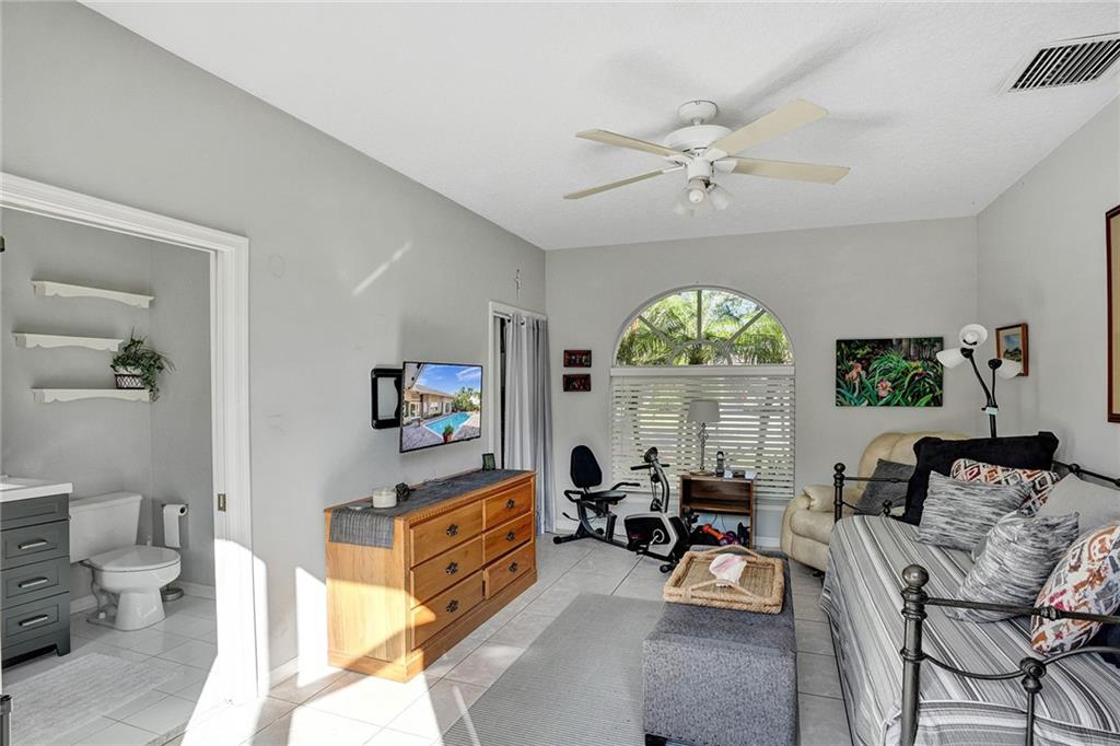 Enjoy the lifestyle that we all look for in South Florida. Stunning courtyard 15X30 pool home, 5 bedrooms, 3 1/2 bathrooms which includes the mother in law suite/guest house. 3 car garage, split bedrooms, jack & jill bathroom. Enjoy the open concept perfect for entertaining family and friends. 15ft" ceilings, tons of natural light, walk-in closets, covered back patio to enjoy your morning coffee. Quite cul-de-sac street, 24 hour gated community, which offers golf course/tennis courts, basketball, pickleball and playground in the highly sought after Eagle Trace community. "WELCOME HOME"