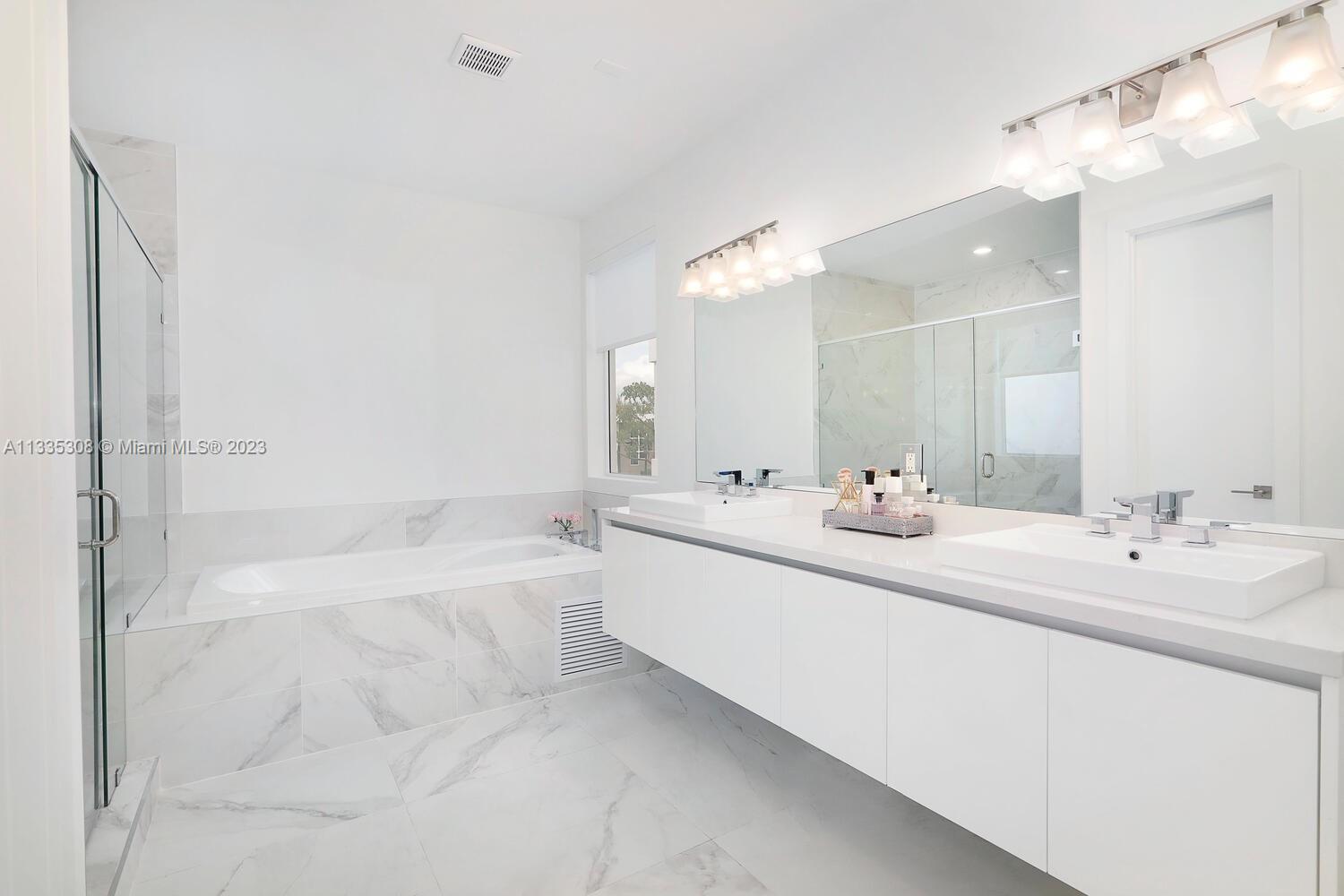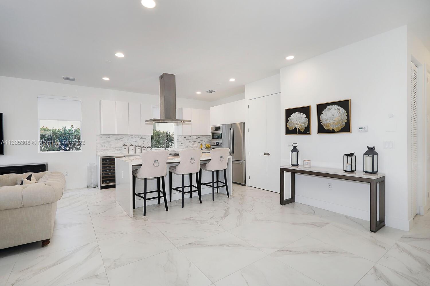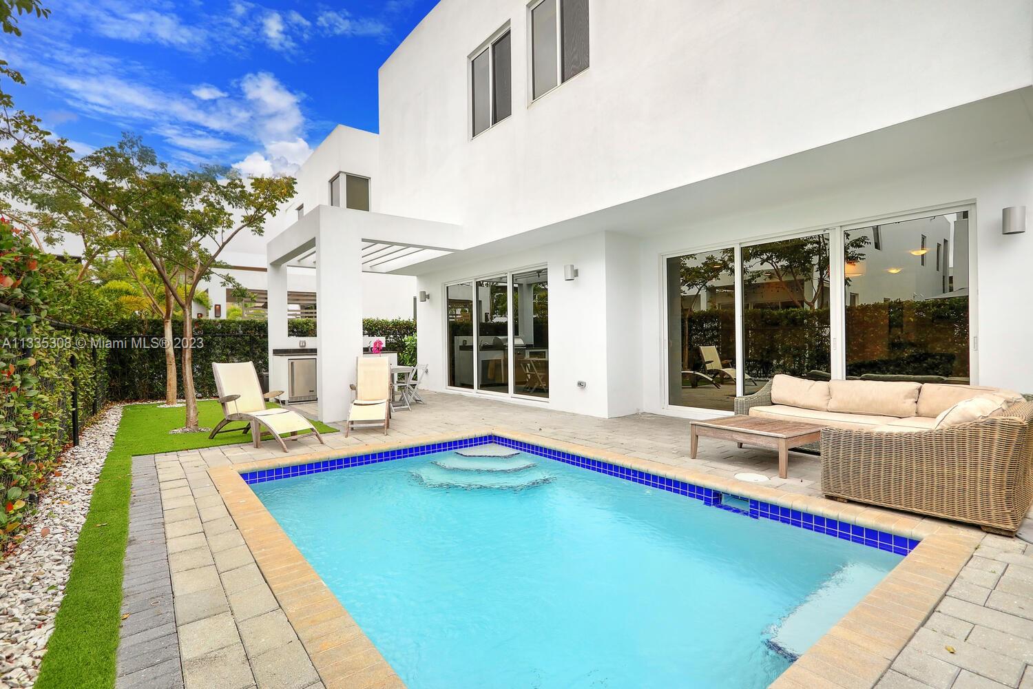 Beautiful & modern home located within the gated community of Modern Doral 45. This 2020 construction home has the highest upgrades the developer offered. This 4 bedroom & 4 bathroom model offers an extremely open floor plan. The gourmet kitchen is fully equipped with Bosch appliances & a gas range. Gorgeous flooring throughout consists of 30*30 matte porcelain floors & premium hard wood floors. Master bedroom has 2 walk-in closets, oversized shower & tub. Summer wouldn't be complete without a concrete pergola summer kitchen overlooking the pool! Other features include: hurricane impact windows, 2 car garage, upstairs nook ideal for an office & 2 air-conditioning units. Modern Doral offers a community club house equipped with a fitness center, pool, summer kitchen, party room & much more.