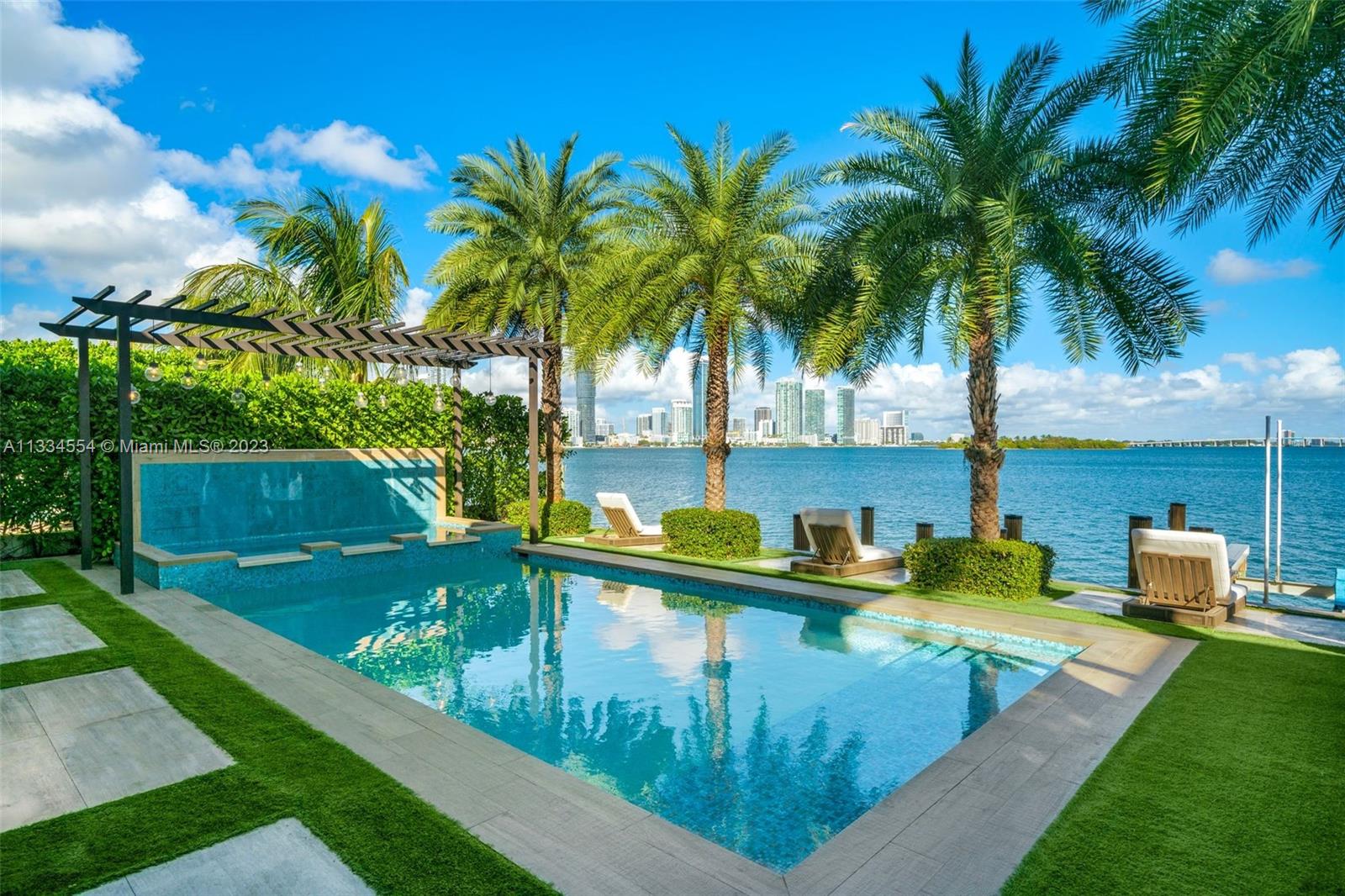 PRICE ADJUSTMENT. Reduced by $1.5M. Seller Will Entertain Reasonable Offers! This Gated Waterfront Home is a classic design located on a Venetian lsland dead-end street. Enjoy the ultimate Miami lifestyle with unobstructed north wide bay views and the Miami Skyline. With 65’ Open Water Frontage, the private dock can accommodate 2 boats. This 7 bedroom, 7.5 bathroom + Home Office is just under 6000 SF of indoor living space on a 9100 SF lot. There is a gracious living room / dining room and a large kitchen / family room. The primary bedroom suite is approx. 1000 SF with a large walk-in closet and a private balcony. Marble floors run throughout the house. The spacious outdoor living space includes a heated pool, jacuzzi, outdoor kitchen and dining room plus a separate entertaining area.