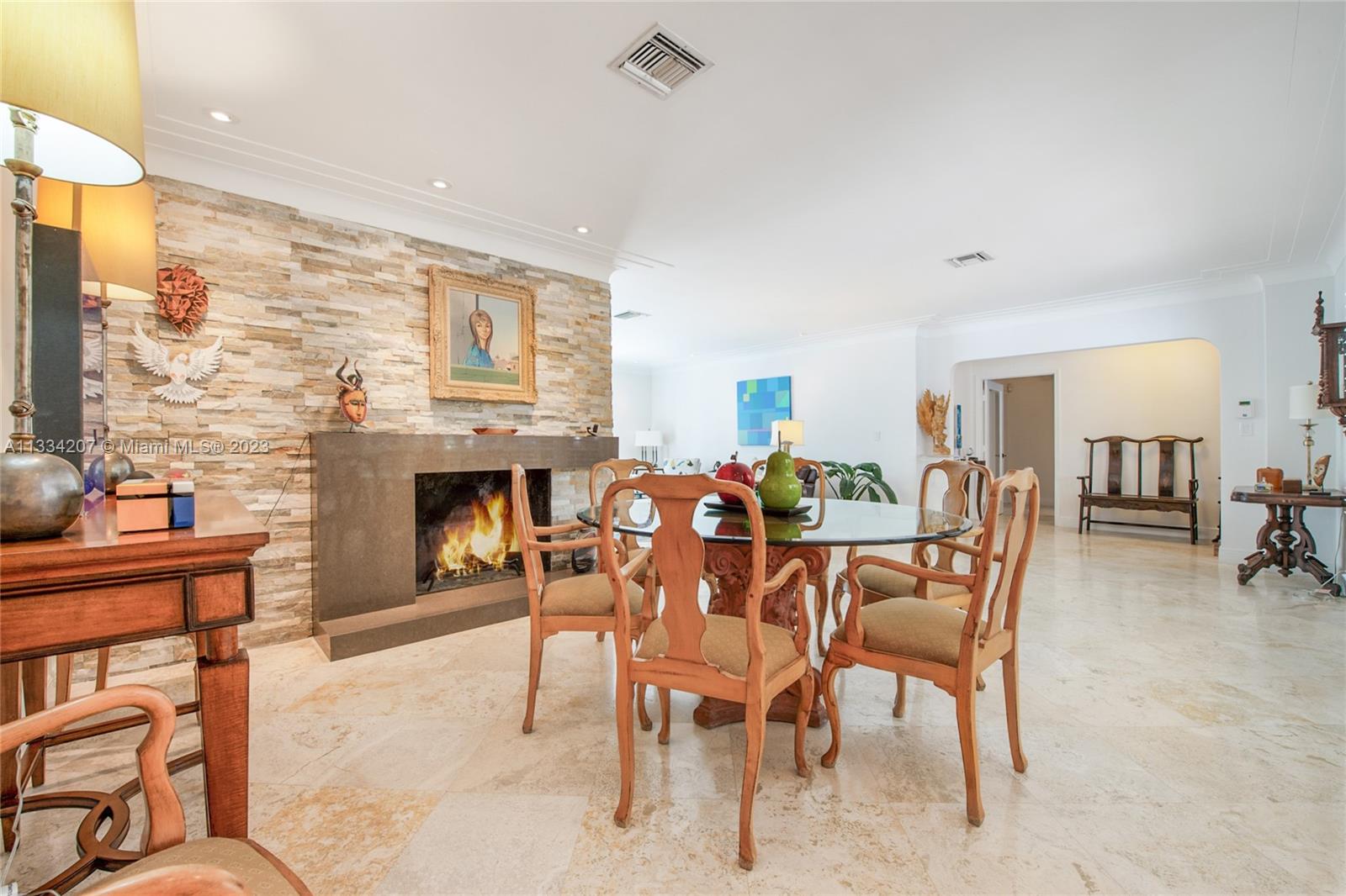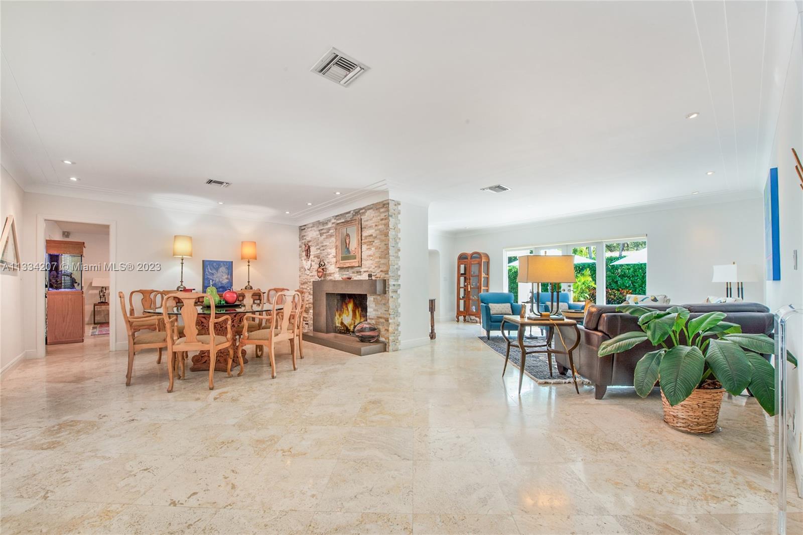Situated on one of South Gable’s loveliest tree-lined streets, this bright and cheery Florida classic aesthetic blends modern updates with Gables charm and versatility. Numerous living spaces for entertaining and beautiful updates, impact window & doors, roof 2 years old, recently painted in and out and custom pool with fountains and heater. Other features include a wood burning fireplace, plantation shutter window treatments, marble floors and large chef kitchen with gas stove and 2 sinks. This home also has a very large patio off the kitchen and a private and pristinely manicured oversized 12k sqft lot. Come see for yourself and fall in love with this wonderful 3bedroom 2.5 bath pool home 2 car garage on a great location for scenic walks over one of Coral Gables waterway bridges.