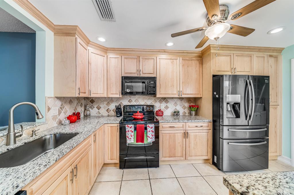 Wow! Meticulous MOVE-IN Ready 3 bedroom 2 Bath 1 Car Garage Home on a Huge 9,615 square foot Corner Lot with an enormous screened in/covered patio. Open floor plan with split bedrooms. Renovated kitchen features wood cabinets w/granite counters and tumbled marble backsplash. Huge living room/dining room. Home is tiled throughout except in one bedroom. Inside laundry room. Large screened in/covered patio is about 481 square feet & there is an open patio area as well. Yard has lush landscaping & has plenty of room for a pool. Hedged in private yard. Entire exterior of the home was freshly painted less than 2 years ago. Shutters for all doors and windows Plus a Miami Dade garage door for winds up to 180mph. Roof from 2005. New electrical panel.