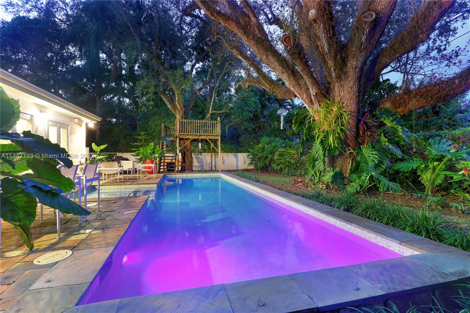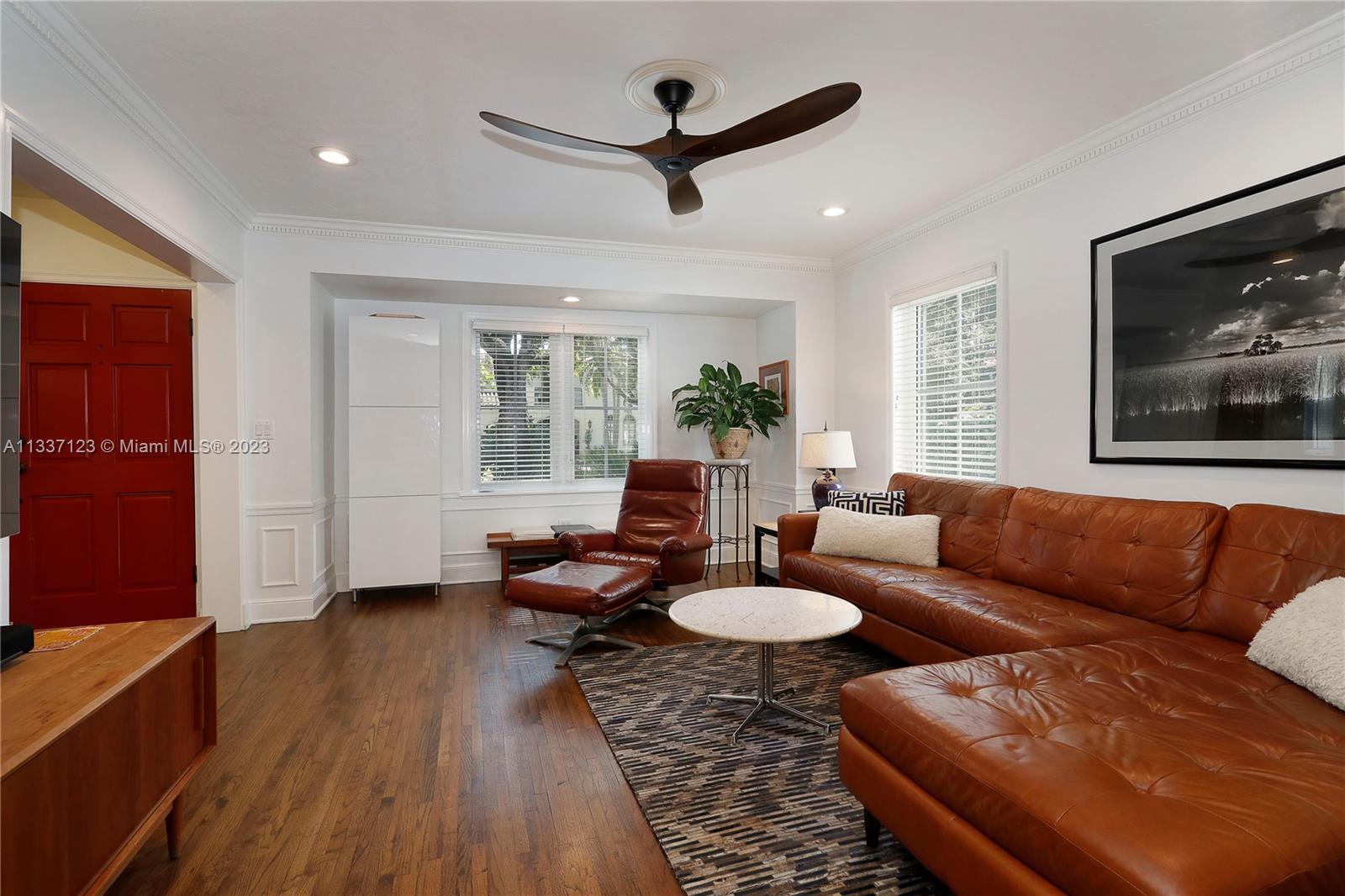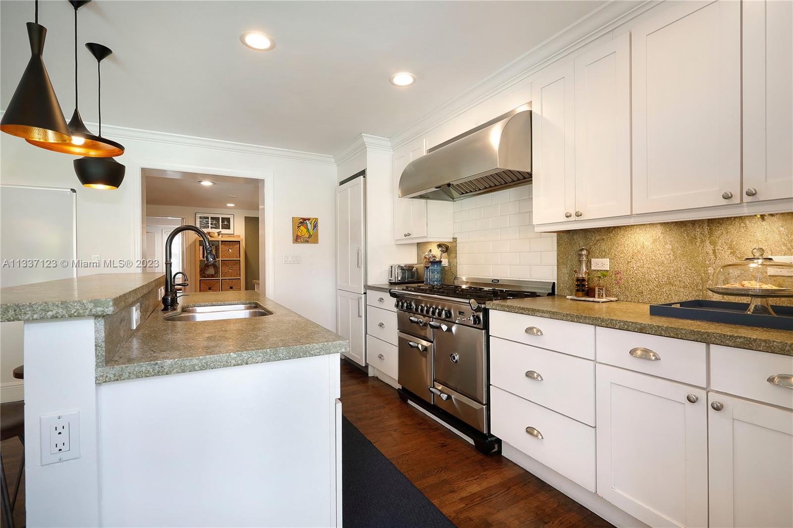 Perfectly located in the heart of the Golden Triangle, this elegant 3 bedroom, 3.2 bathroom Colonial home features a traditional floorplan with fabulous spaces for living &entertaining! The foyer entry leads to an ample living room with fireplace plus sunny Florida room to one side & formal dining room to the other. To the back of the home, overlooking the pool & patio area, the family room opens to the gorgeous white kitchen with high-end appliances including 48” Aga range, & ample butler’s pantry! Upstairs you will find the primary suite with private terrace & 2 additional bedrooms as well as 3 beautifully upgraded bathrooms. Spectacular features include heated saline pool, honed marble counters, wood floors, dental molding, wainscoting, & impact glass windows & doors throughout.