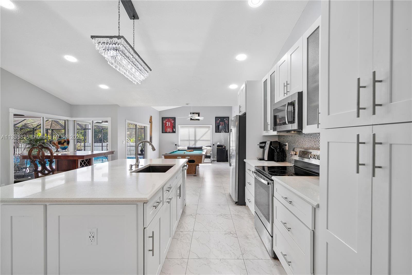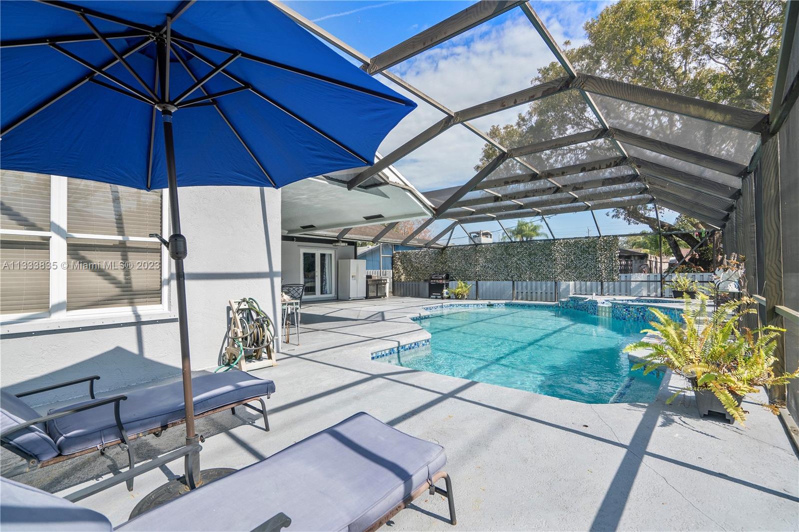 Beautiful Upgraded 3 Bed 2 Bath Smart Home Located In Prestigious Plantation Acres. This Home Features A Large Open Split Bedroom Floor Plan With Vaulted Ceilings And Recessed Lighting, Custom 24X24 Tile Floors In Common Areas And Laminate Wood In The Bedrooms, Freshly Painted. Newly Updated Kitchen With Island, White Wood Cabinets, Quartz Countertops, Farmhouse Sink, New SS Appliances, Pantry With Pull Out Drawers. Spacious Primary Suite W/ Dual Walk-in Closets & En-Suite Bath Has Separate Jacuzzi Tub And Shower, Dual Sinks, Wood Vanity With Granite Top, LED Mirrors, And Chandelier. 2 Other Bedrooms Share Updated Hall Bath. Large Fenced Yard W/ Screened Pool/ Spa/ Shed With Spacious Deck. Electric Car Charger & Interior Laundry Room. Room For Boat Or RV. Close To Shopping And Highways.